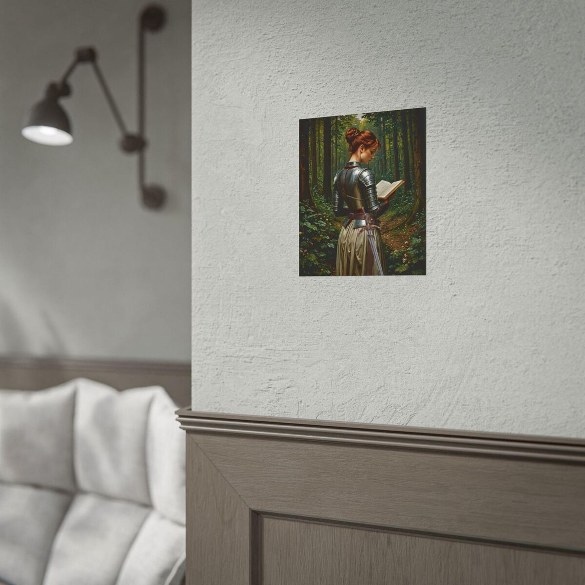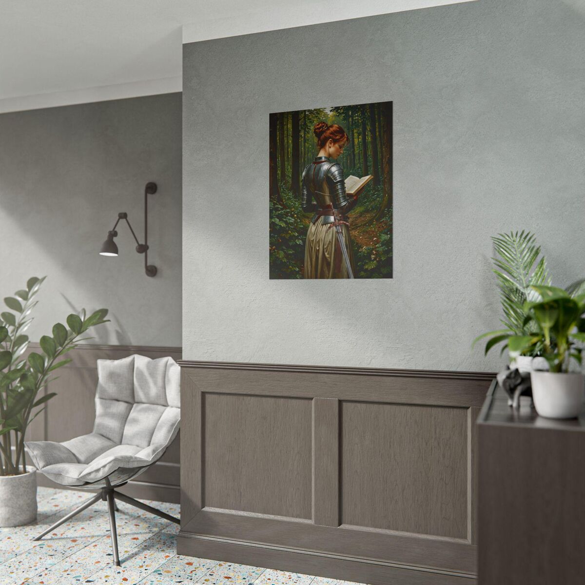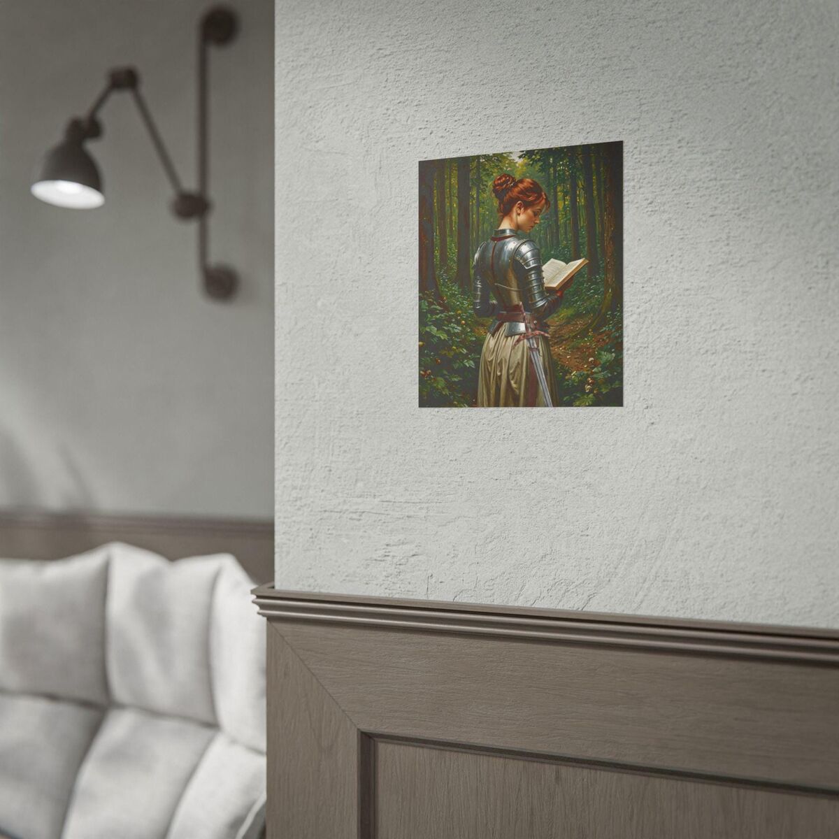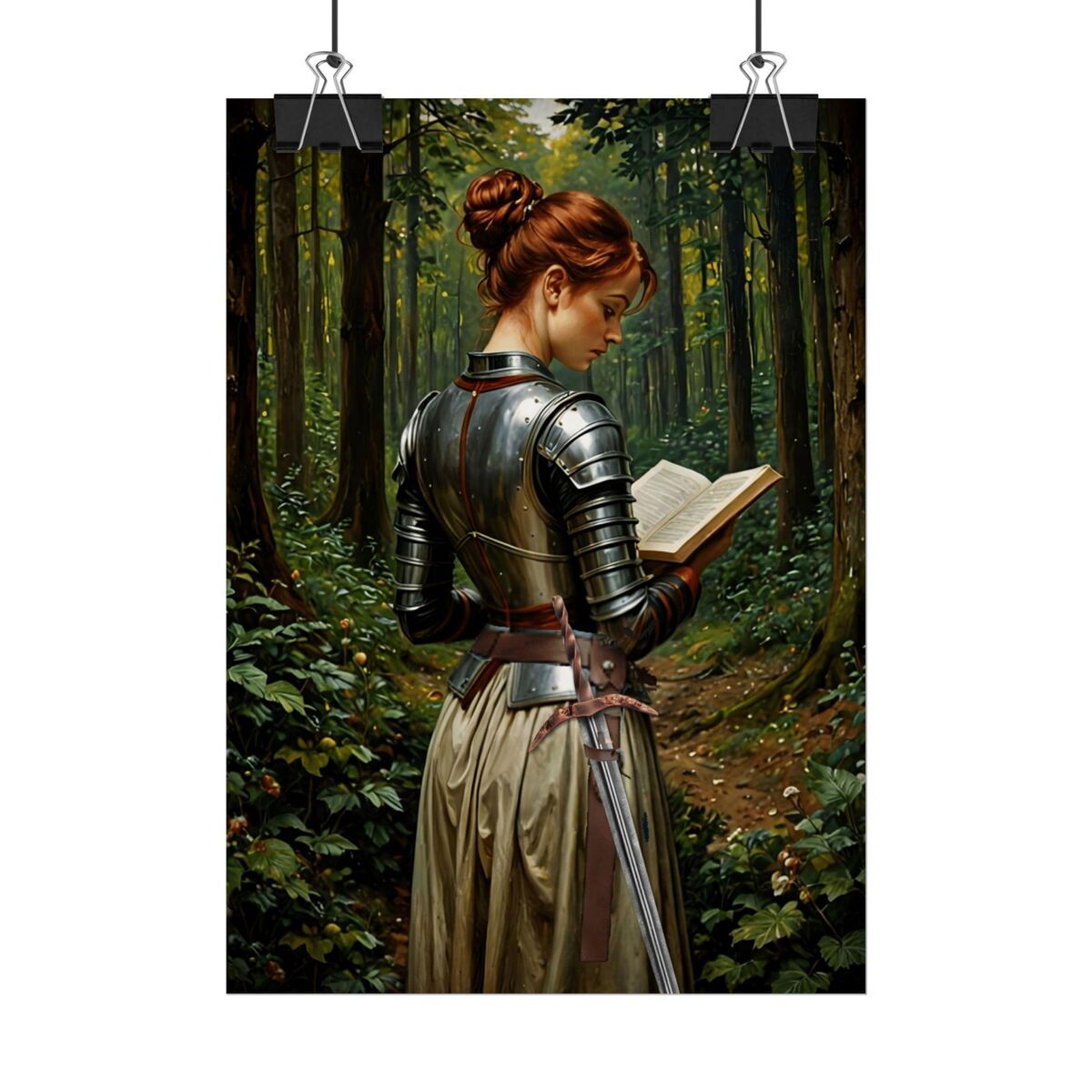 Medieval Painting Print Lady Knight Reading In Forest Dark Academia Wall Art Print Oil Painting Print Dark Moody Wall Art