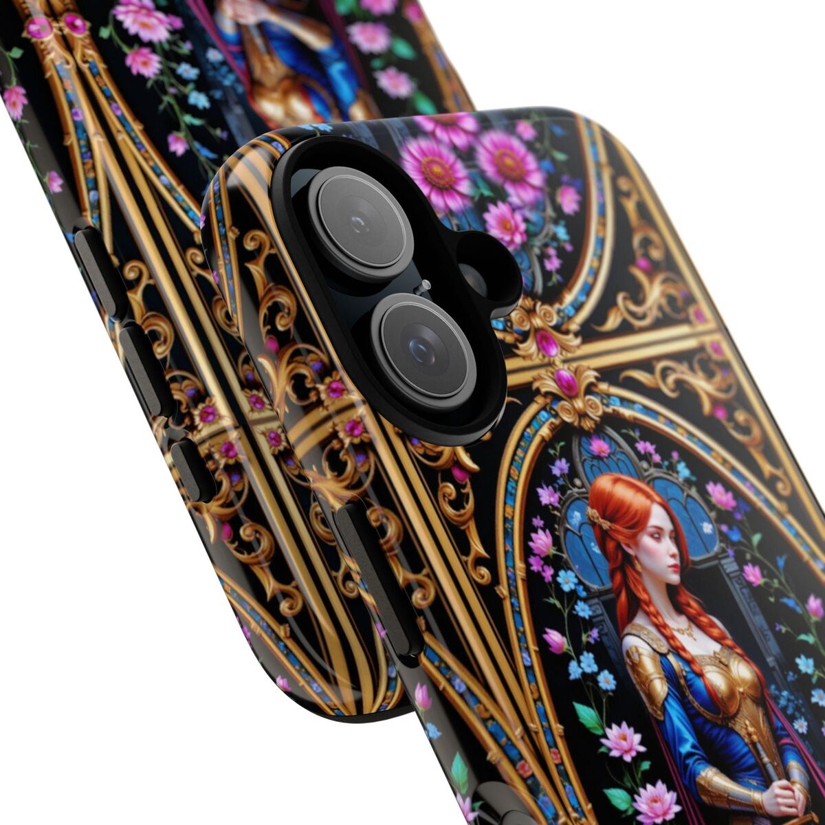 Medieval Phone Case Unique Faux Stained Glass Lady Knight Forest Fits iphone 16 15 14 13 Galaxy S25 S24 S23 Pixel And More