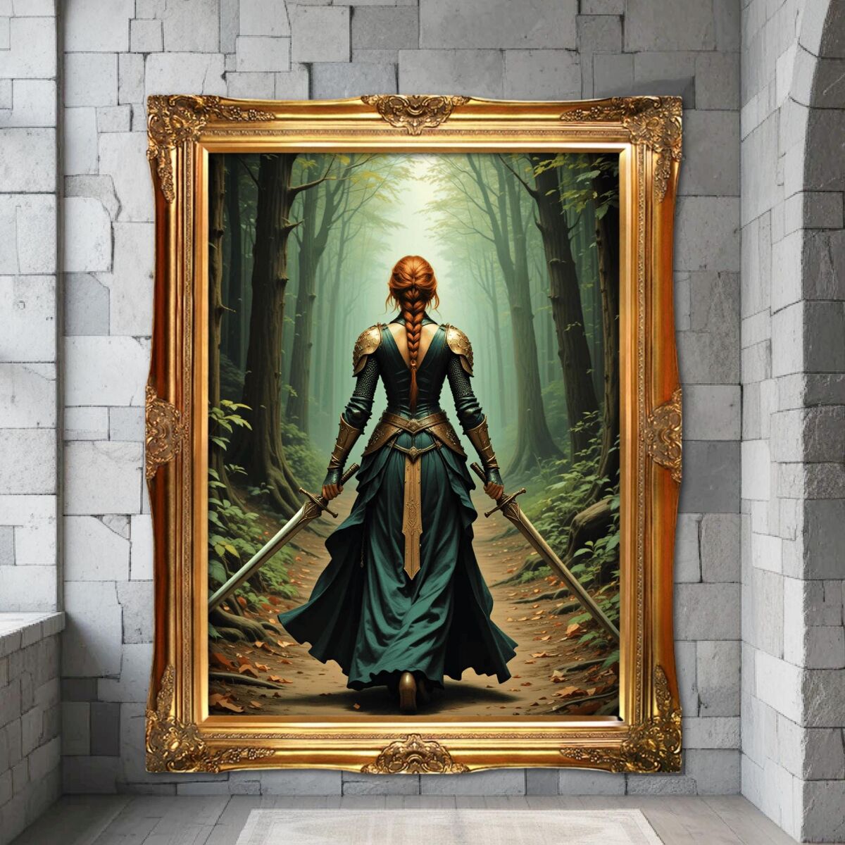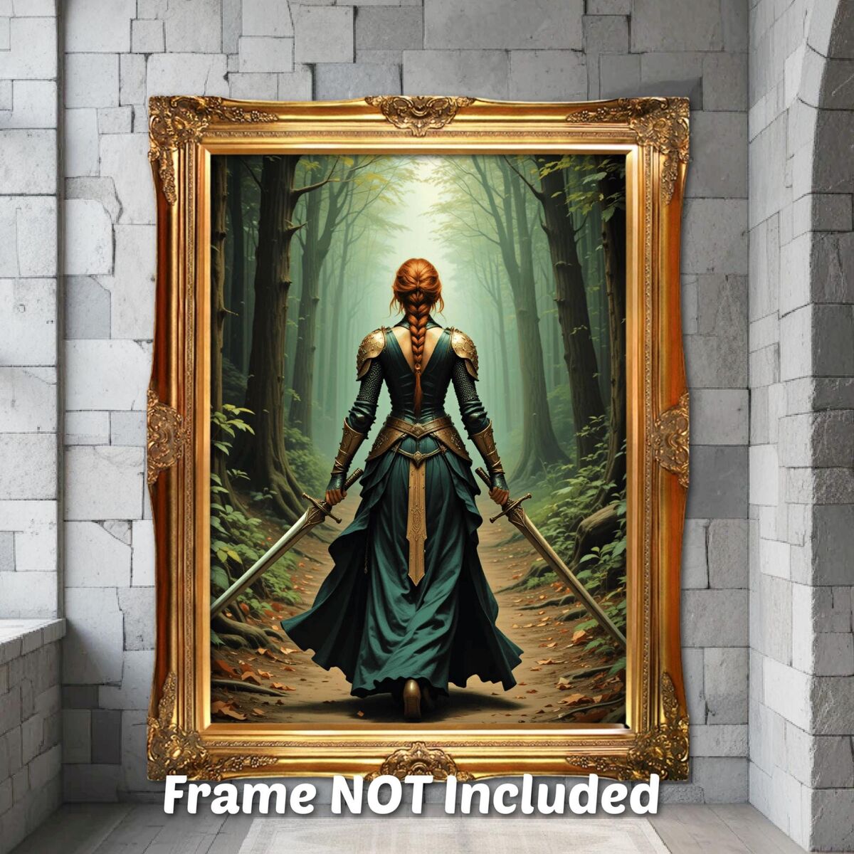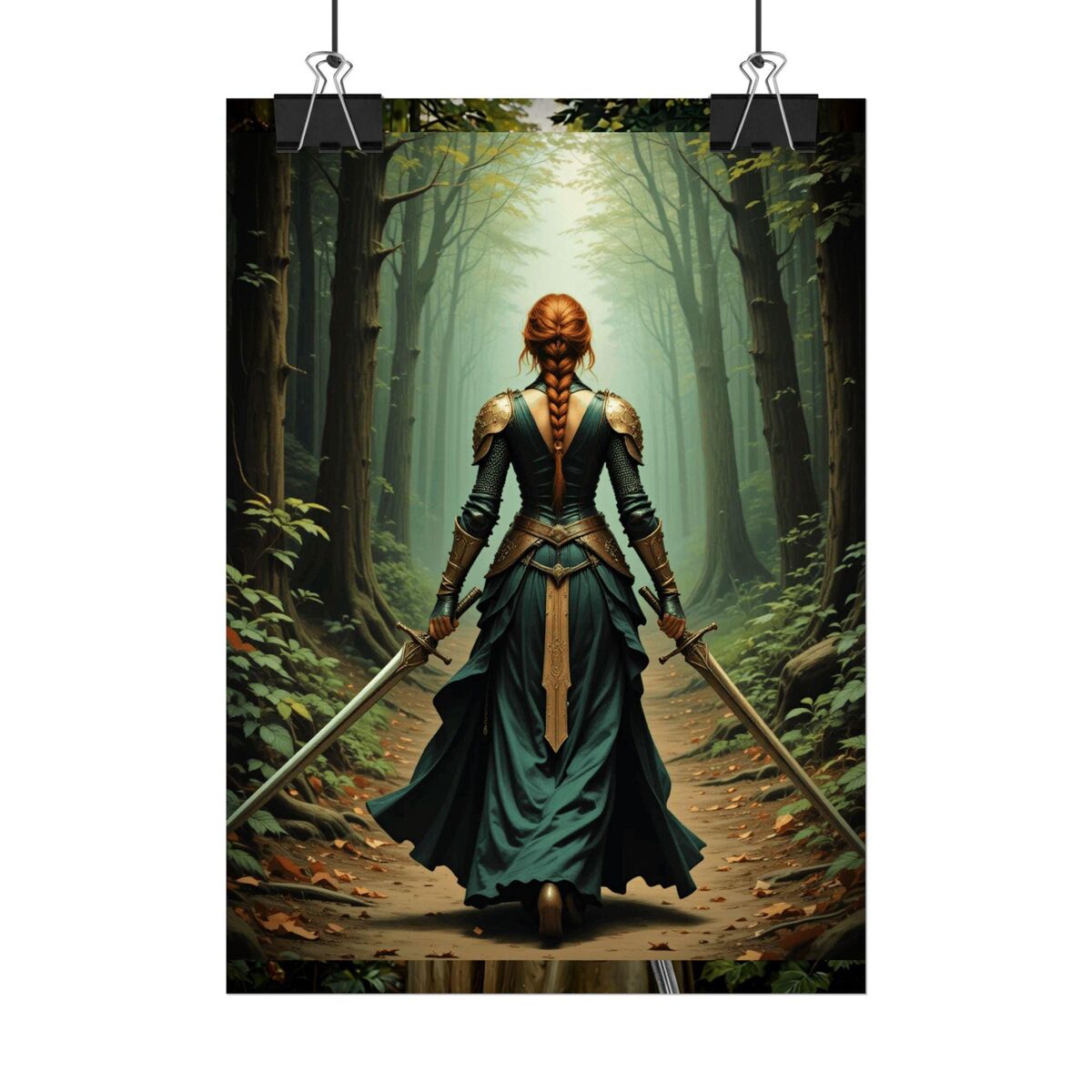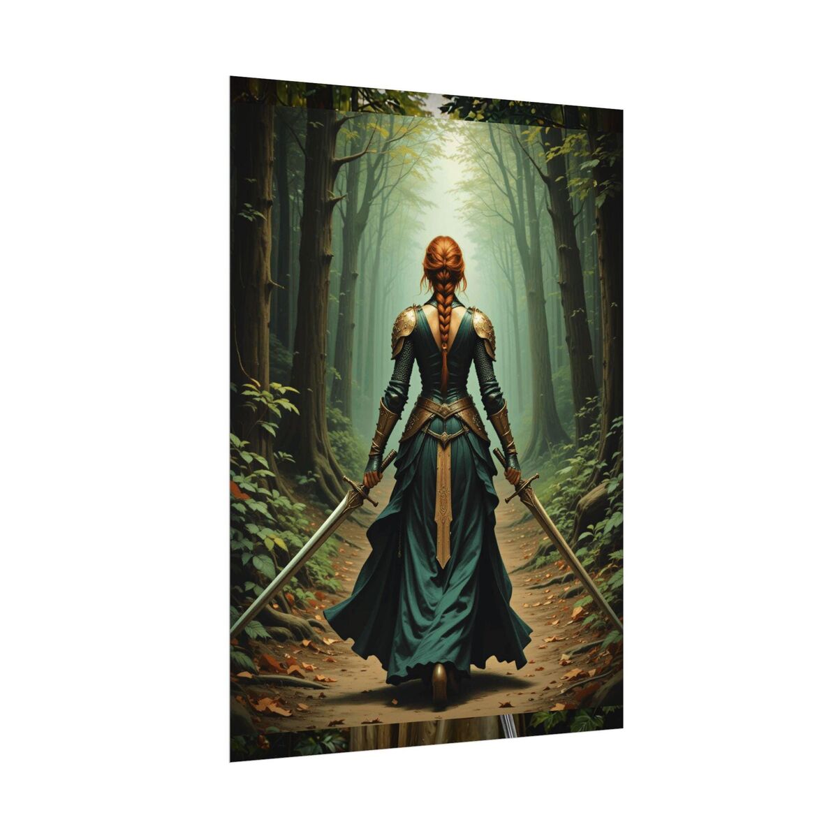 Medieval Print Lady Knight Celtic Warrior In Forest Painting Print Dark Academia Wall Art Print Oil Painting Print Dark Moody Wall Art