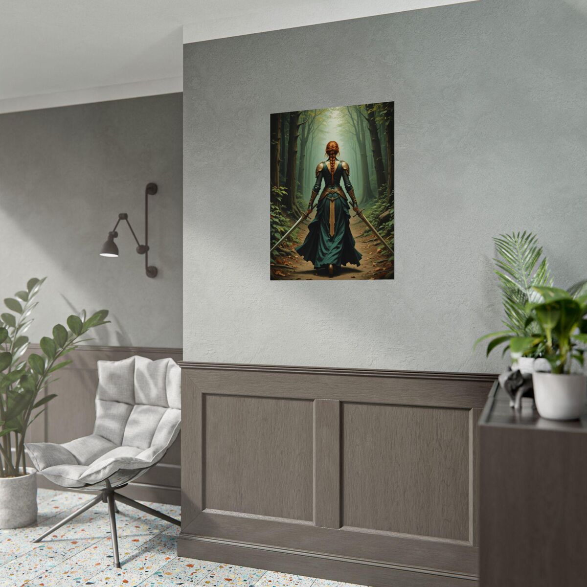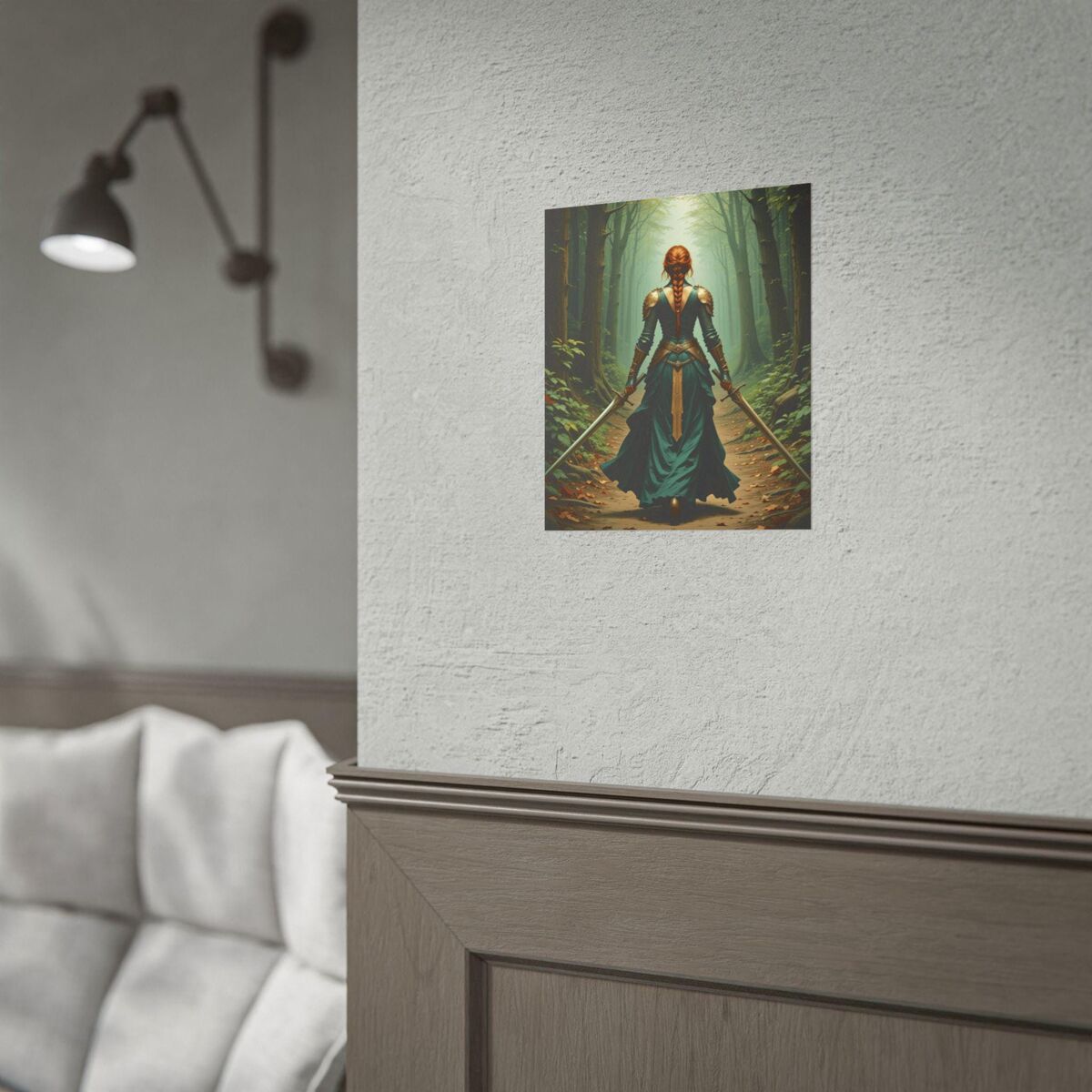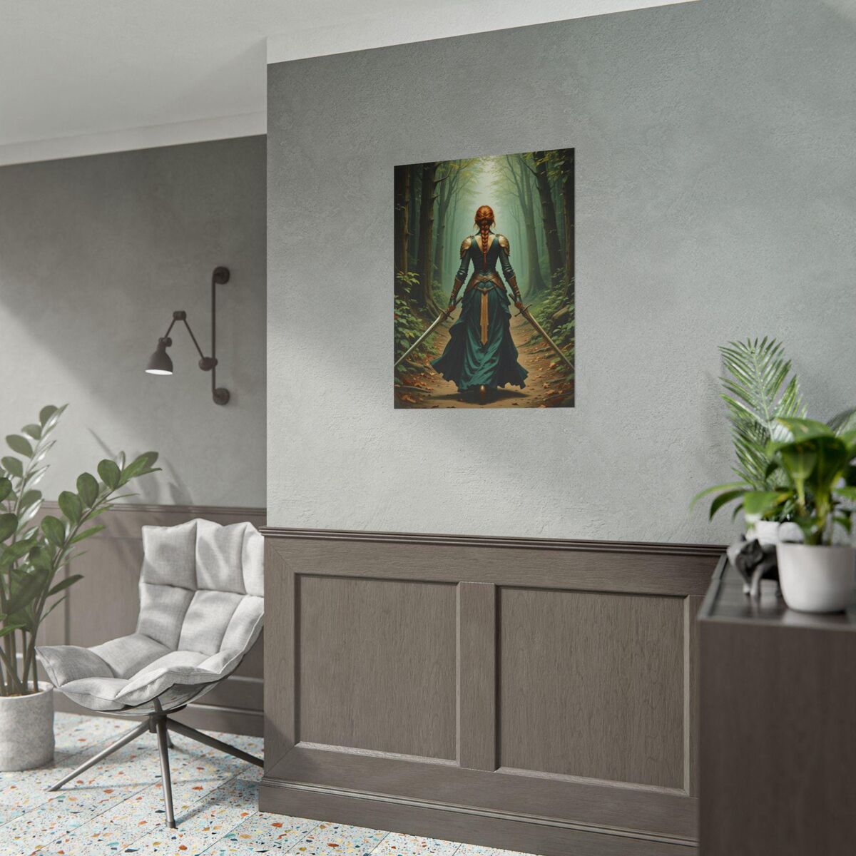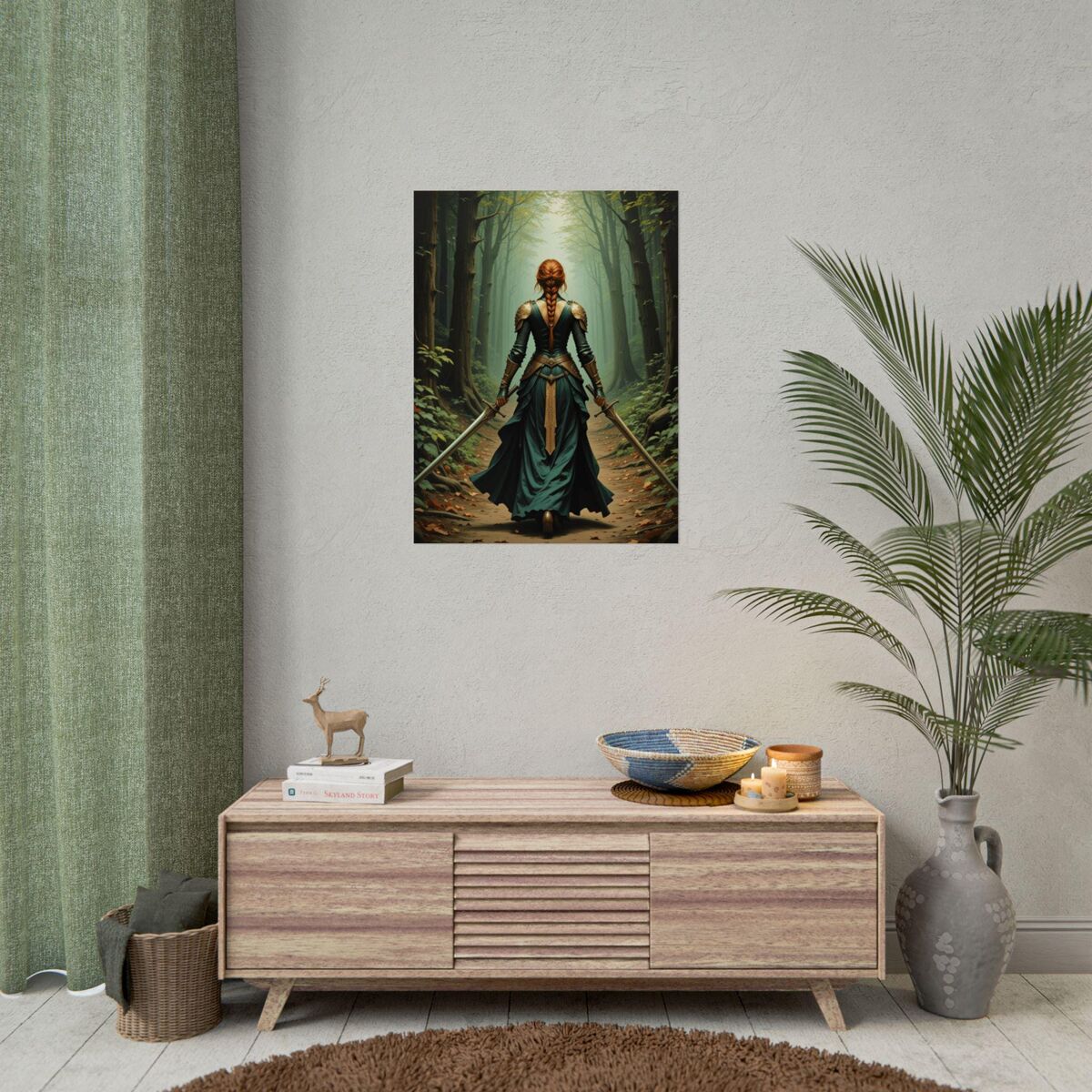 Medieval Print Lady Knight Celtic Warrior In Forest Painting Print Dark Academia Wall Art Print Oil Painting Print Dark Moody Wall Art