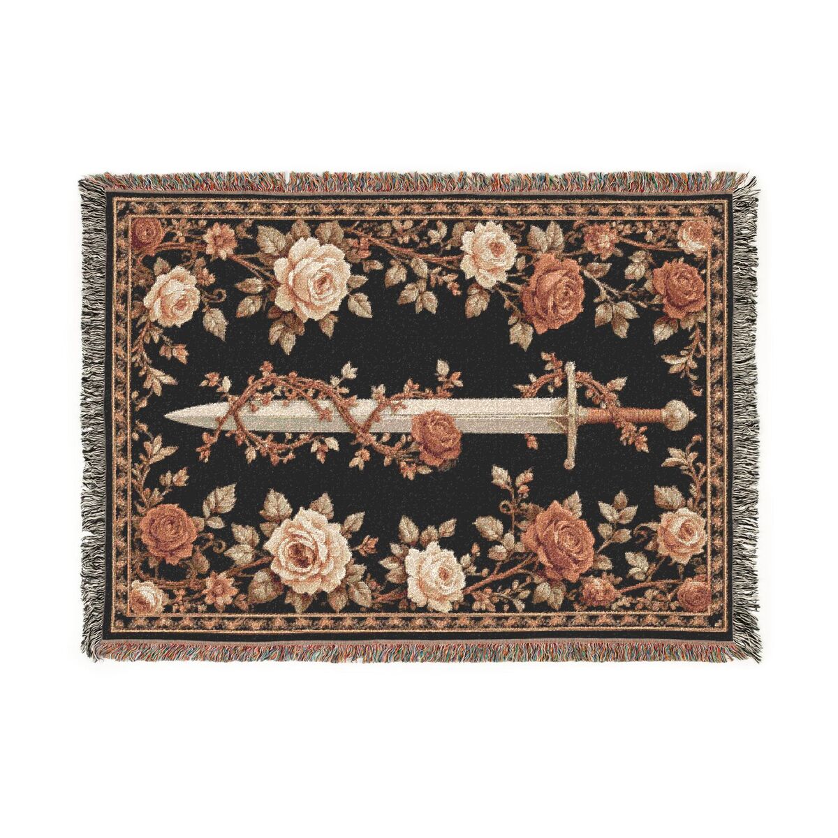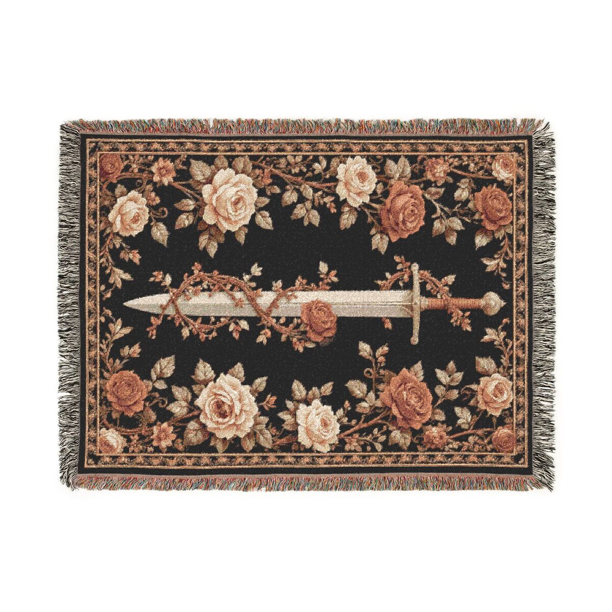Medieval Tapestry Sword Rose Woven Blanket Wall Hanging Dark Throw Art Decor