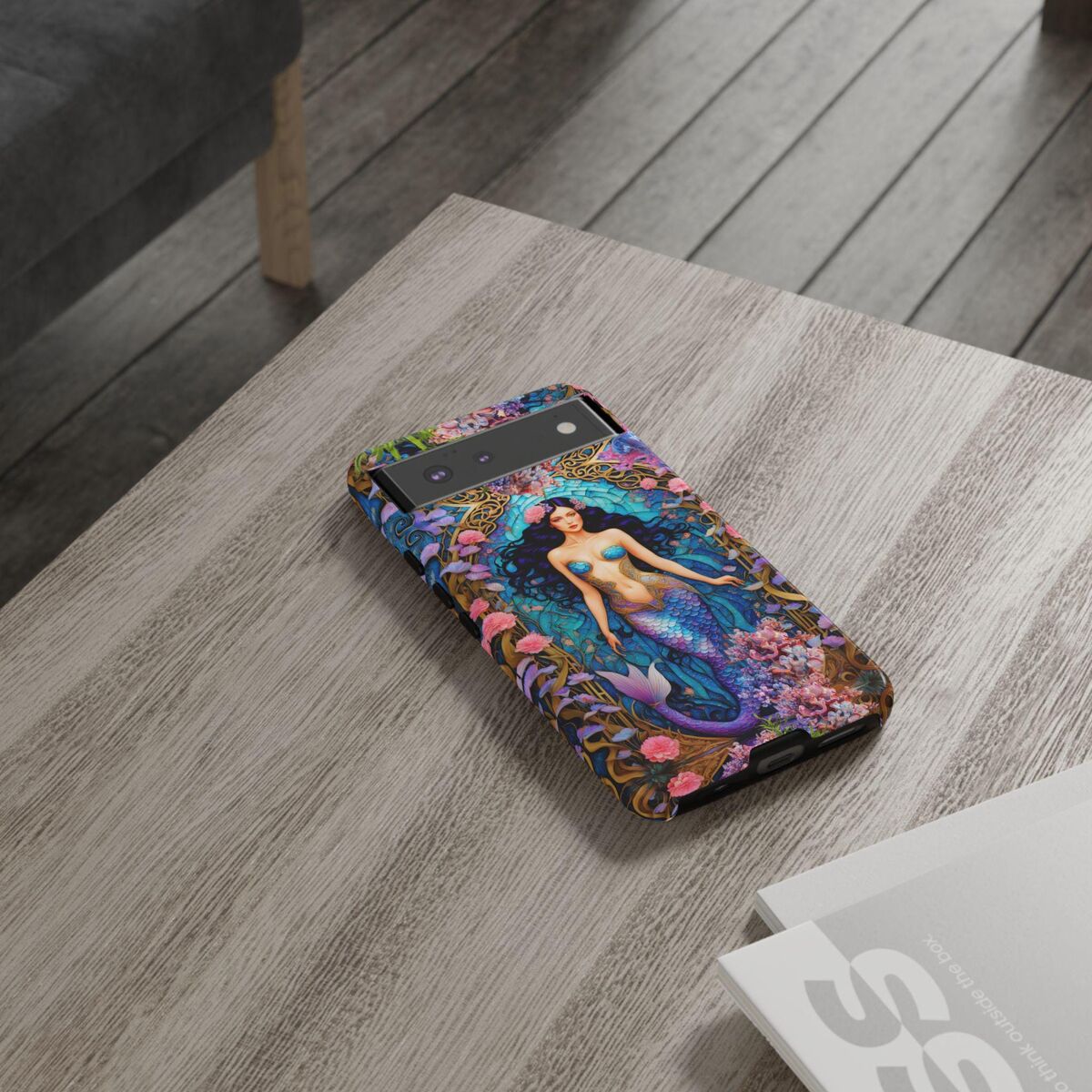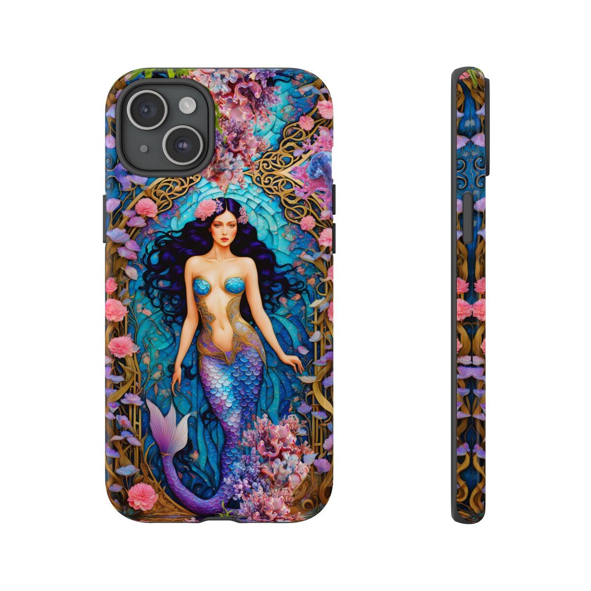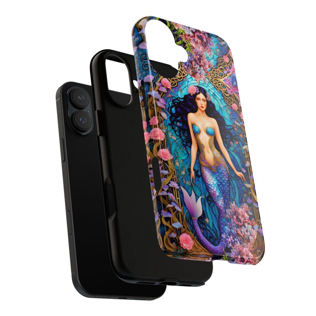 Protect your device with the exquisite mermaid Phone Tough Case, designed to fit a variety of models including iPhone 16, 15, 14, 13, Pixel 8, and Galaxy S24, S23, S22. This case features a stunning faux stained glass design that beautifully captures the essence of Celtic mythology, making it not only a protective accessory but also a striking piece of art.