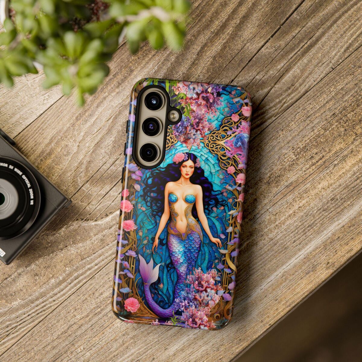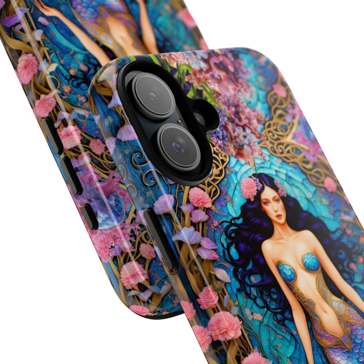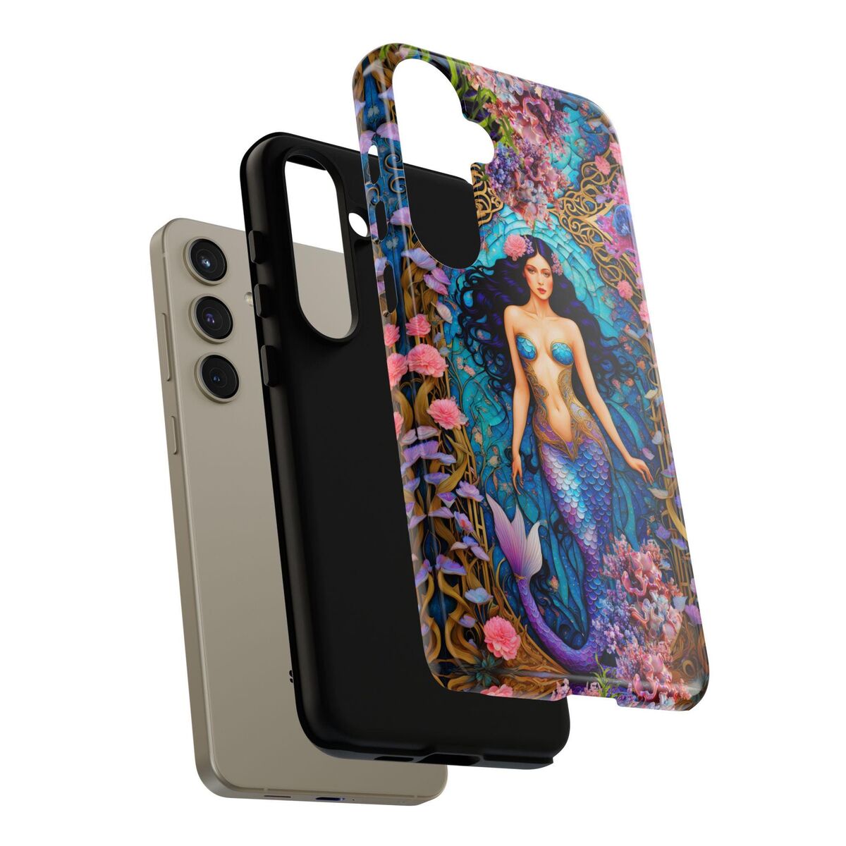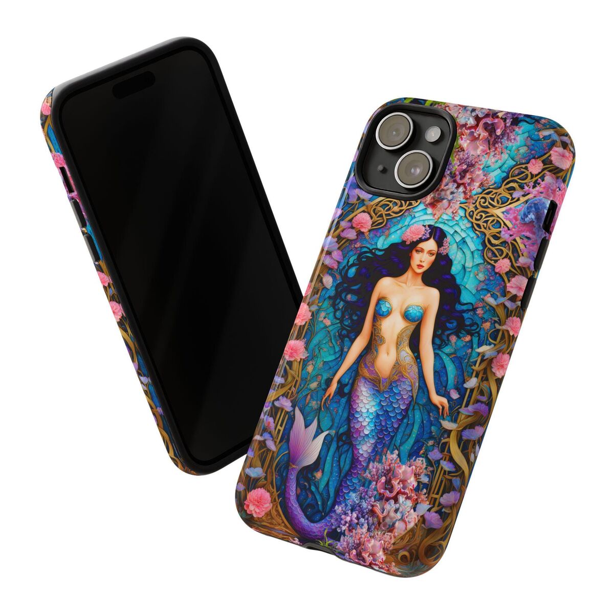 Protect your device with the exquisite mermaid Phone Tough Case, designed to fit a variety of models including iPhone 16, 15, 14, 13, Pixel 8, and Galaxy S24, S23, S22. This case features a stunning faux stained glass design that beautifully captures the essence of Celtic mythology, making it not only a protective accessory but also a striking piece of art.