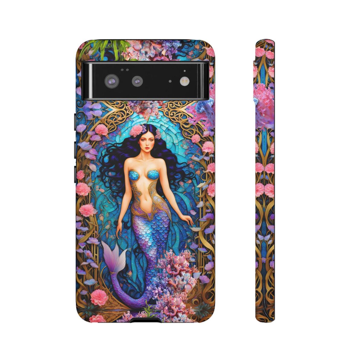 Mermaid Phone Tough Case Faux Stained Glass Ocean Theme Fits iphone 16 15 14 13 Pixel 8 Galaxy S24 S23 S 22 And More