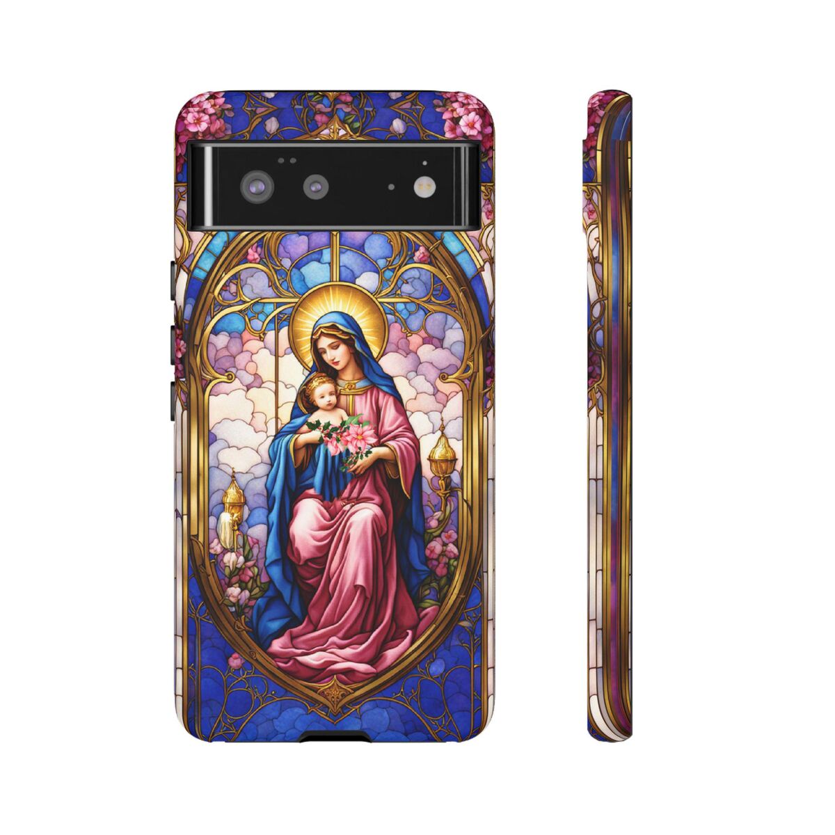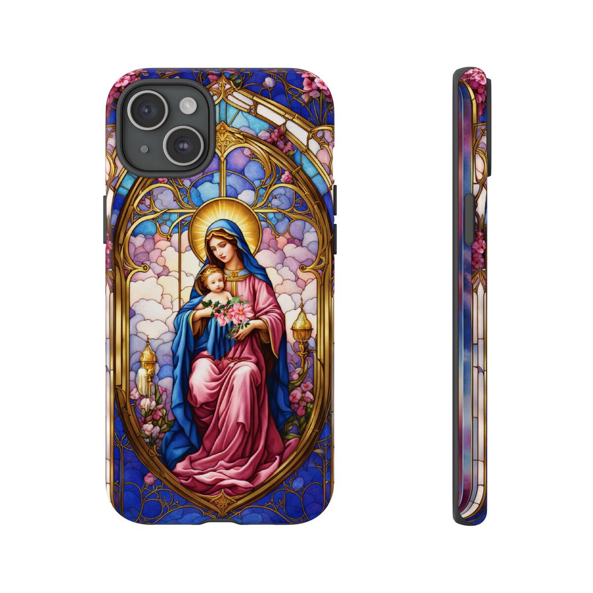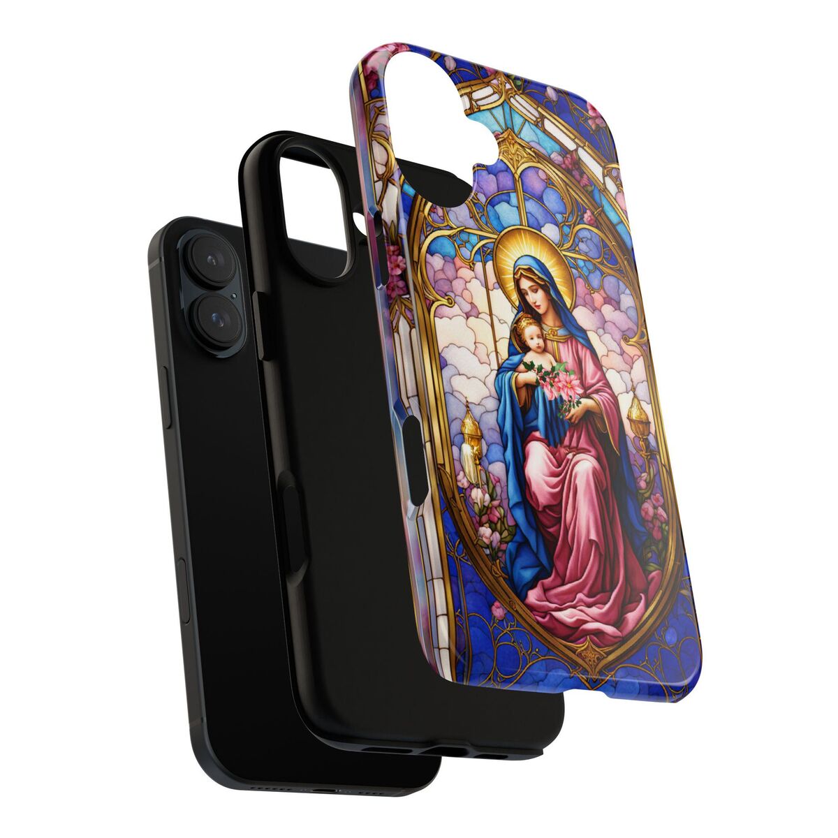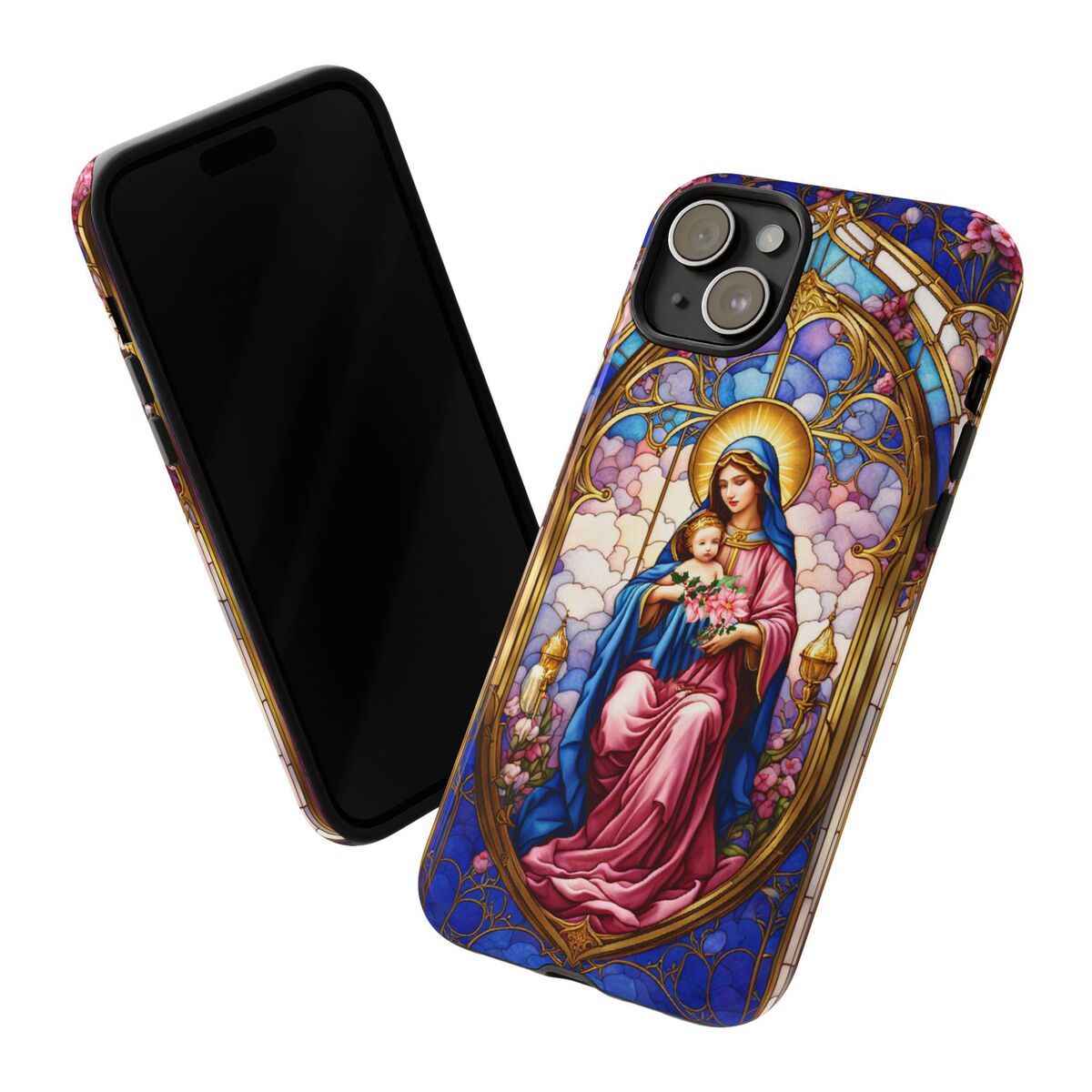 Modonna Phone Tough Case Faux Stained Glass Christian Christmas Mother Jesus Fits iphone 16 15 14 13 Pixel 8 Galaxy S24 S23 S 22 And More