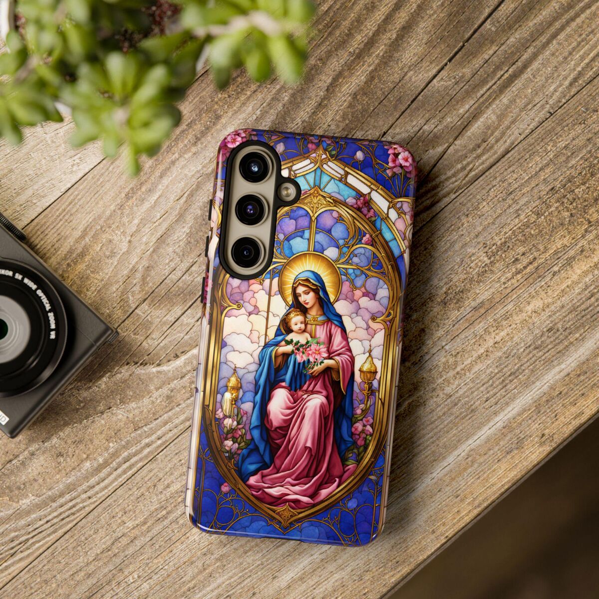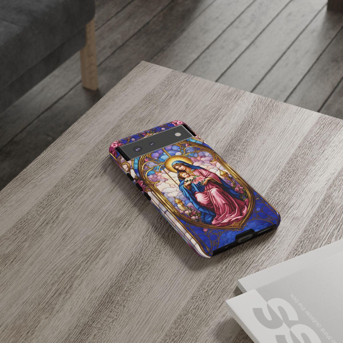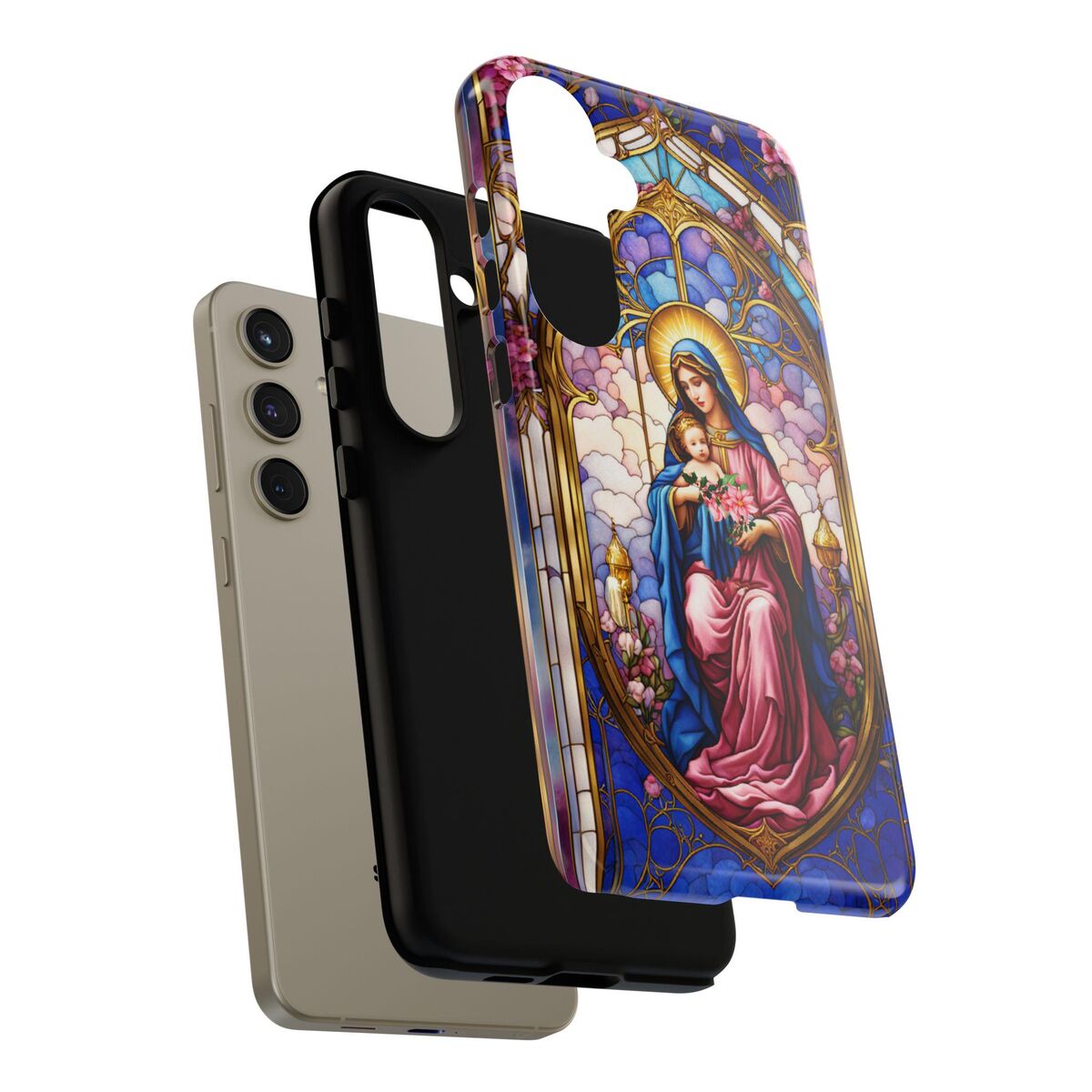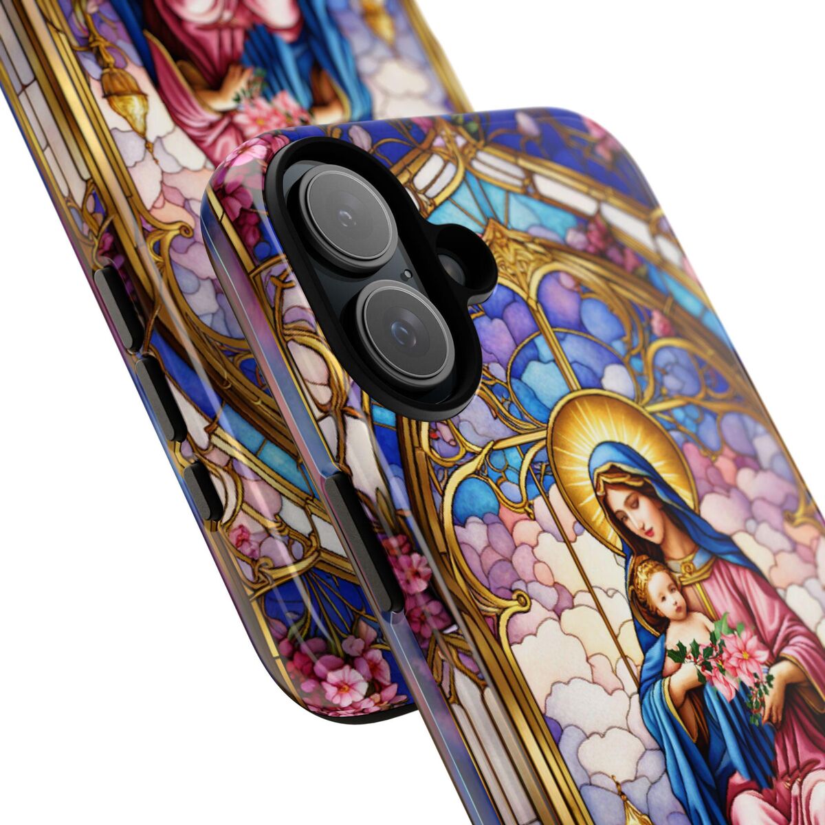 Modonna Phone Tough Case Faux Stained Glass Christian Christmas Mother Jesus Fits iphone 16 15 14 13 Pixel 8 Galaxy S24 S23 S 22 And More
