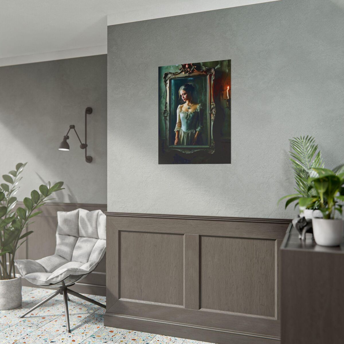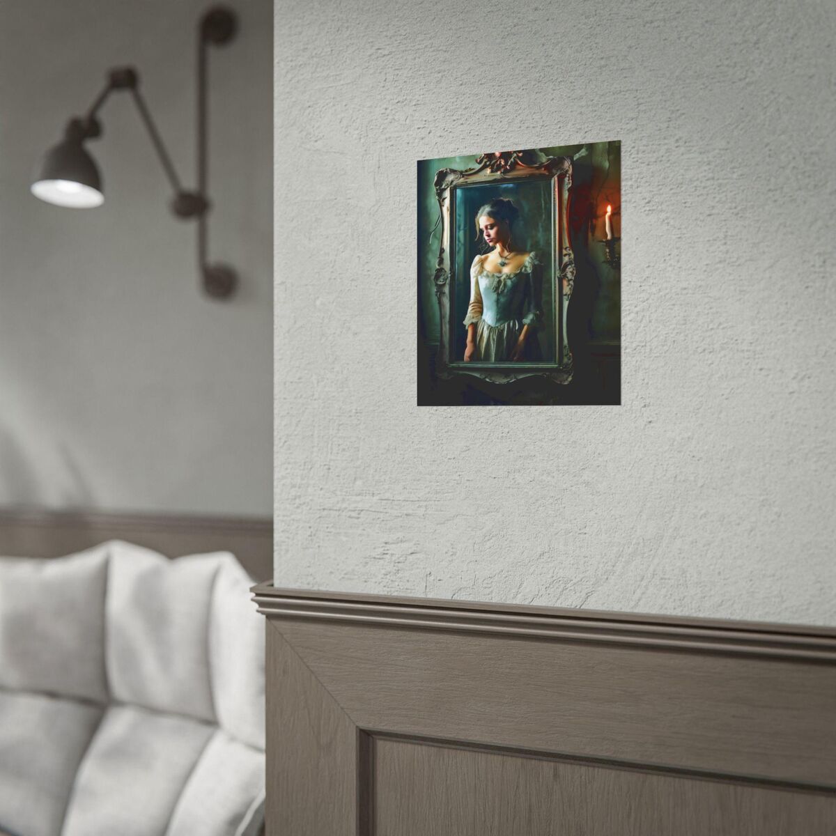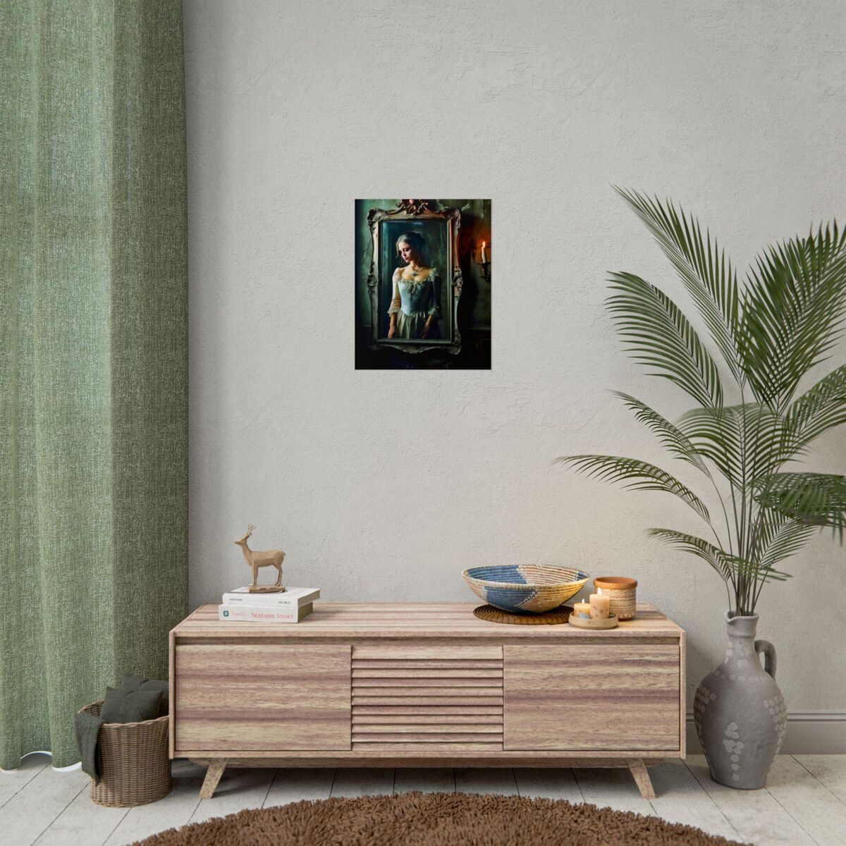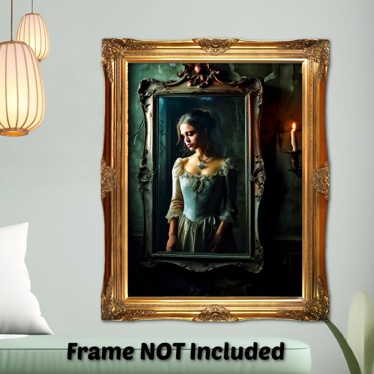 Enhance the ambiance of your living space with this captivating painting Print. This exquisite dark academia print features a mesmerizing girl trapped in the mirror, exuding an enchanting aura that will add a touch of mystique to any room. This is a print of the original painting, and is exclusive to Dreamland