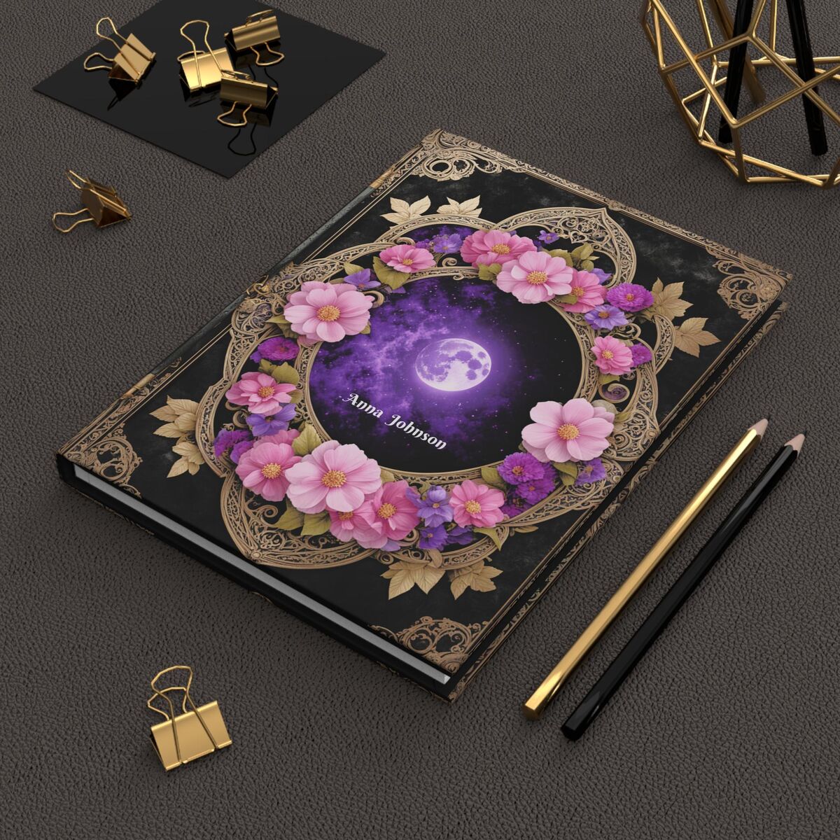 Moon Custom Journal Hardcover Personalized Gothic Witchy Pink Purple Notebook Dream Journal Shadow Manifestation BooK
