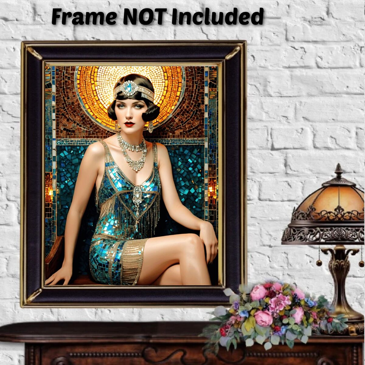 Mosaic Print Flapper Art Deco Wall Art Painting Print Gatsby Old Hollywood Girl Glamour Gatsby Retro Poster 1920s Wall Art