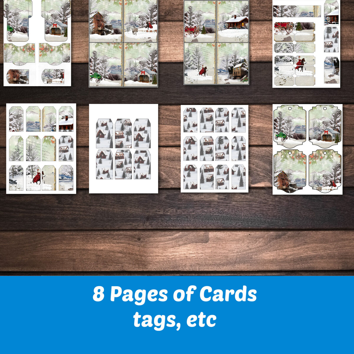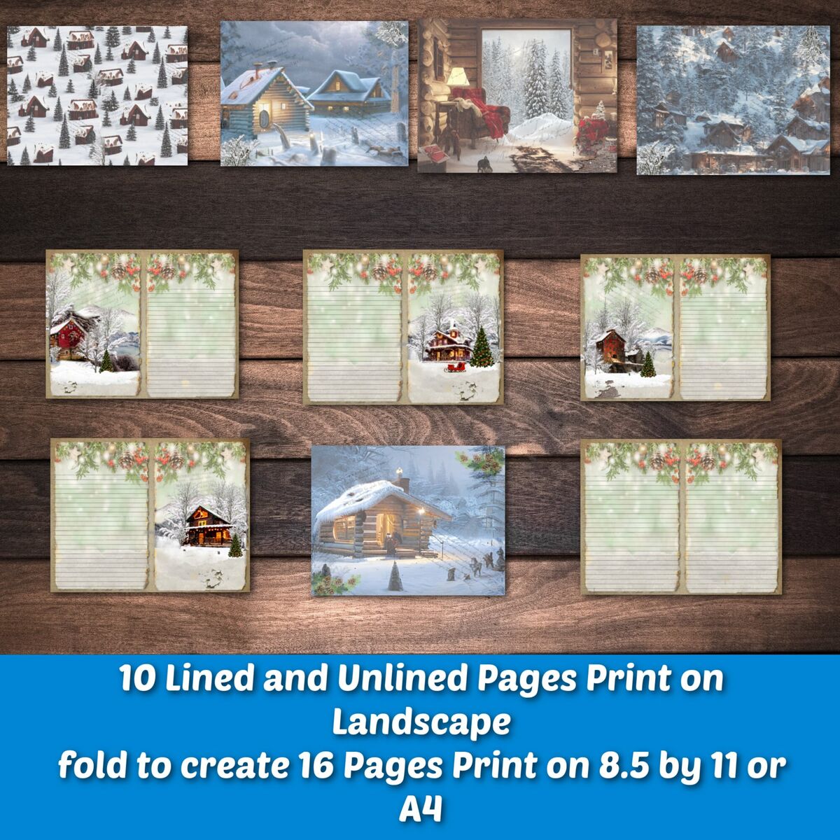 Mountain Christmas Junk Journal Kit Shabby Rustic Pages Vintage Printable Blank Lined Paper Kit Supplies Ephemera Collage Digital Download
