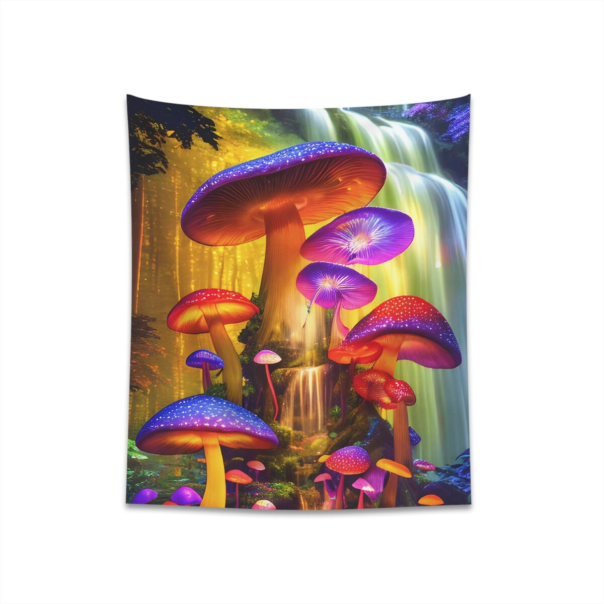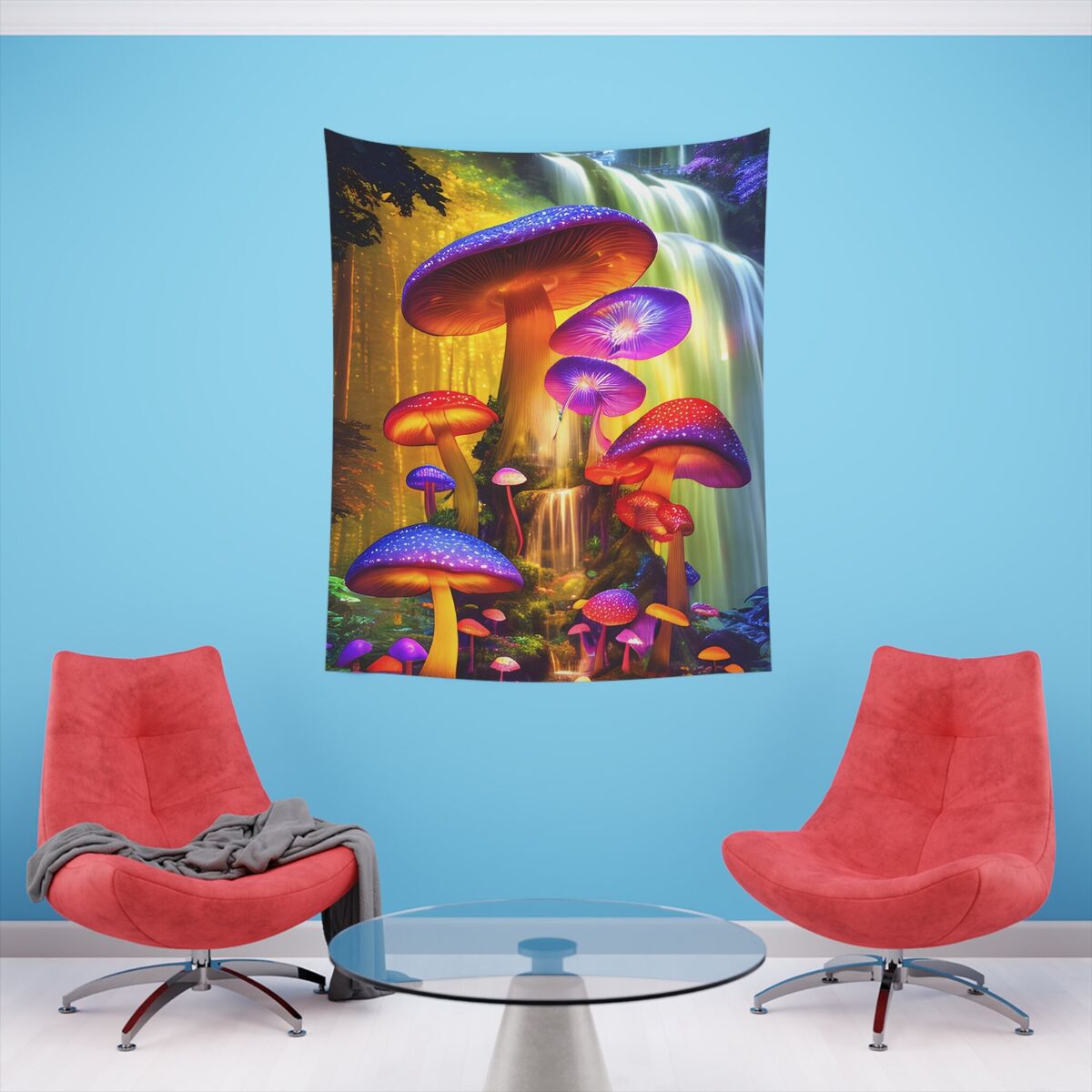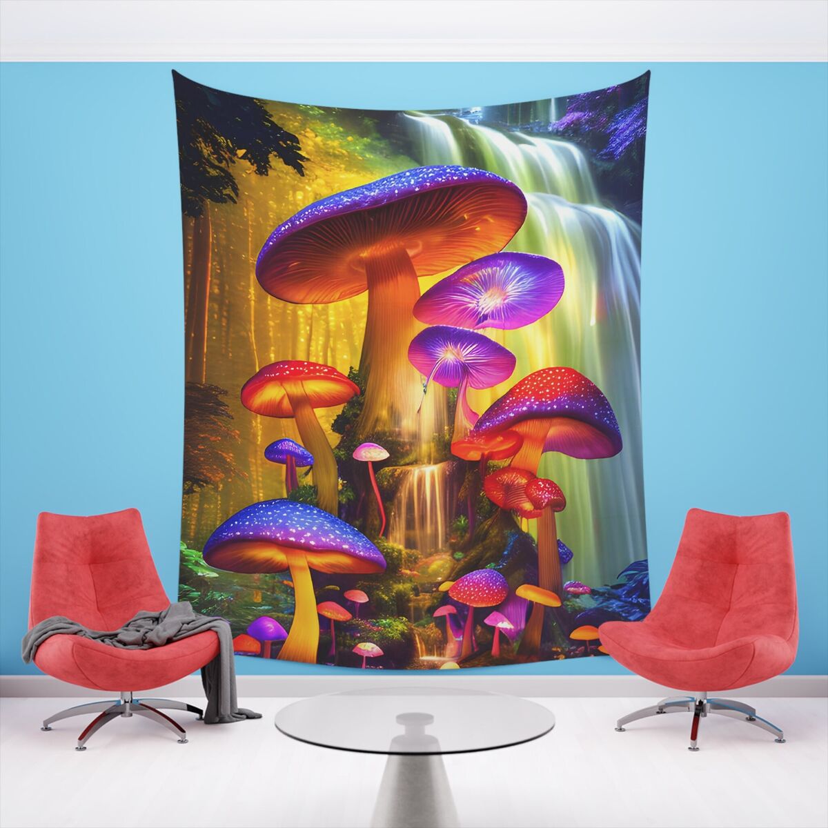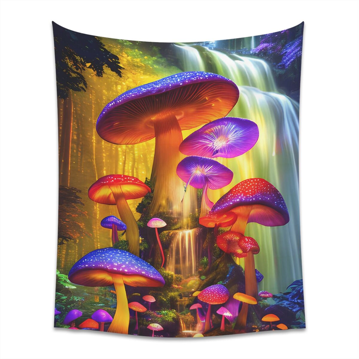 Mushroom Wall Tapestry Magical Fantasy Forest Wall Art Hanging Waterfall Magic Mushroom Decor Large Aesthetic