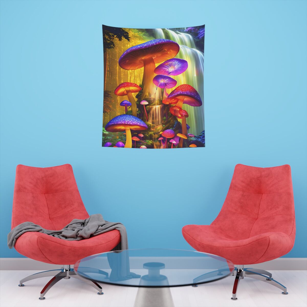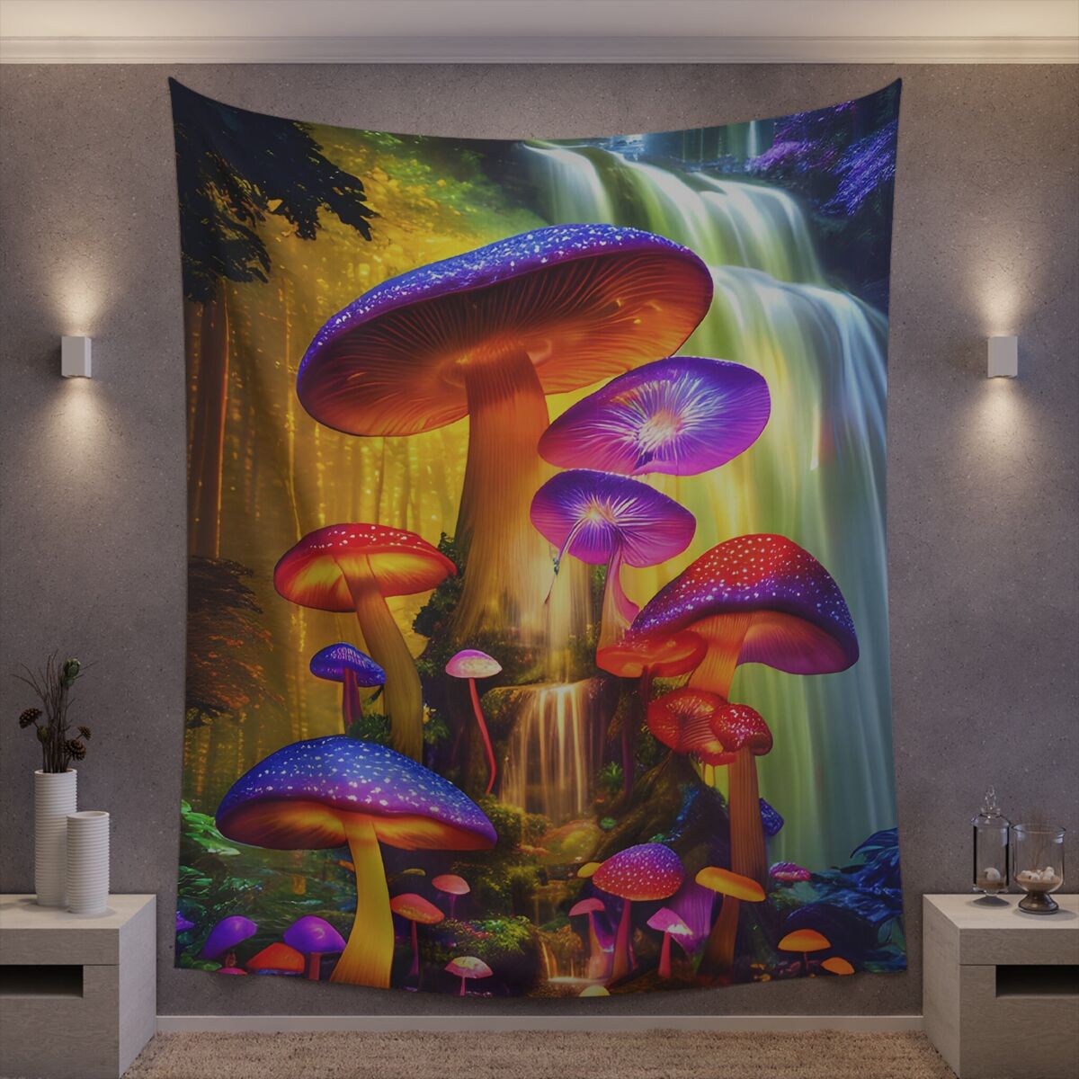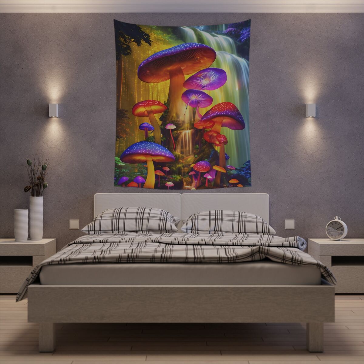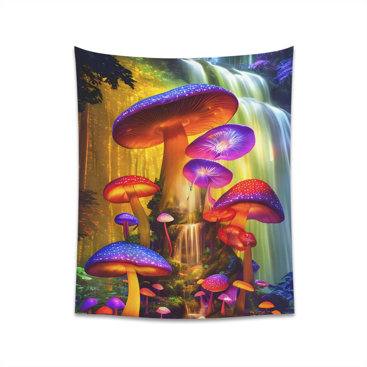 Mushroom Wall Tapestry Magical Fantasy Forest Wall Art Hanging Waterfall Magic Mushroom Decor Large Aesthetic