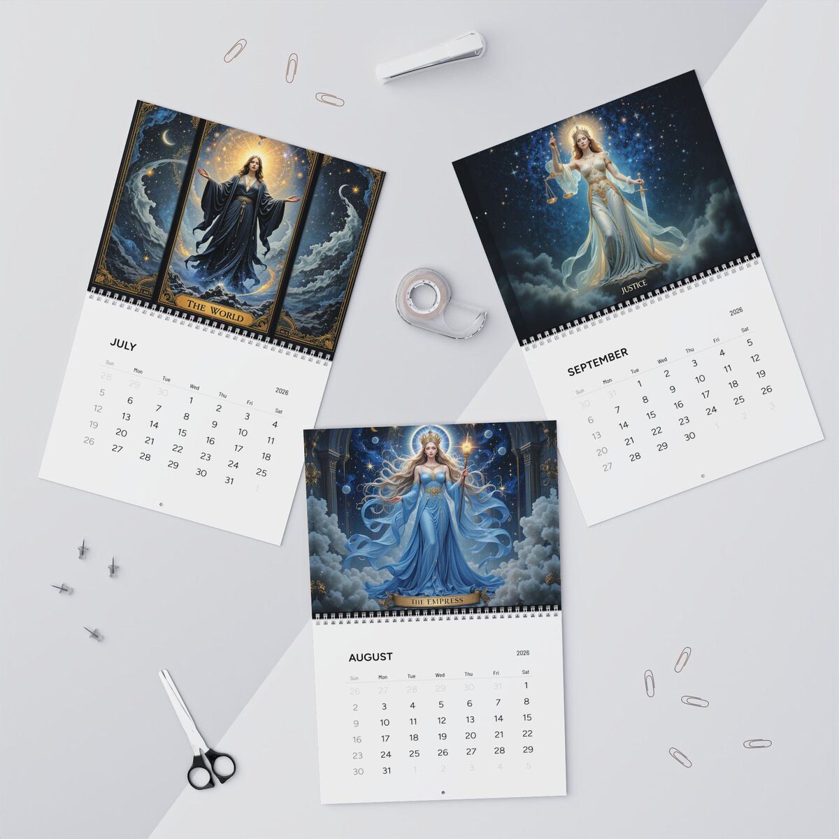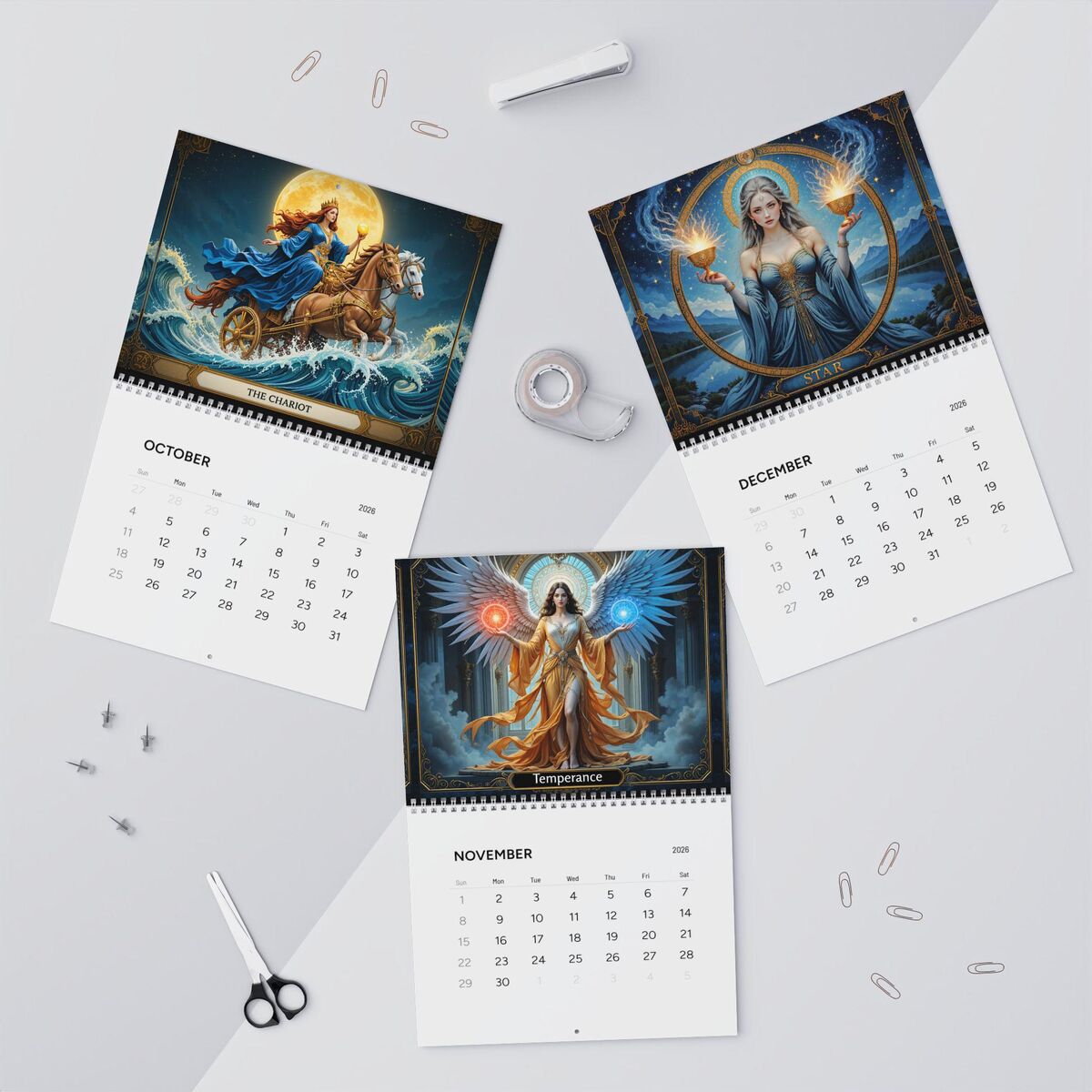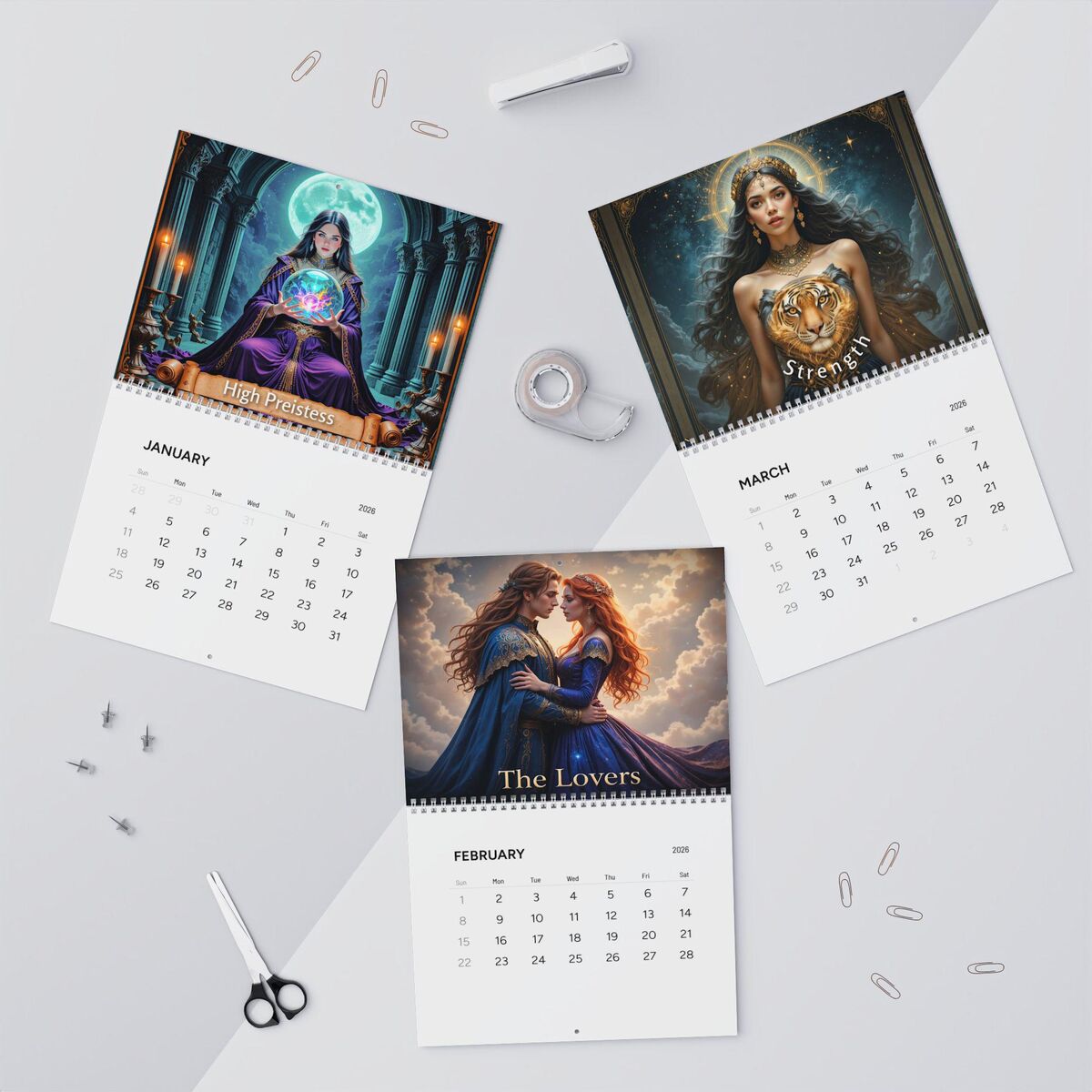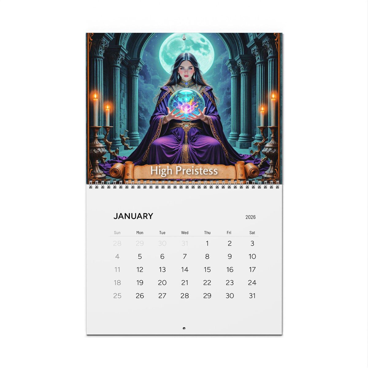 The 2026 Wall Calendar features stunning imagery of original tarot cards, each with the witchy magic and mystical perfect for those who appreciate witchy aesthetics. Each month showcases a captivating card from the major arcana, immersing you in a hauntingly beautiful atmosphere that enhances any home or office decor.