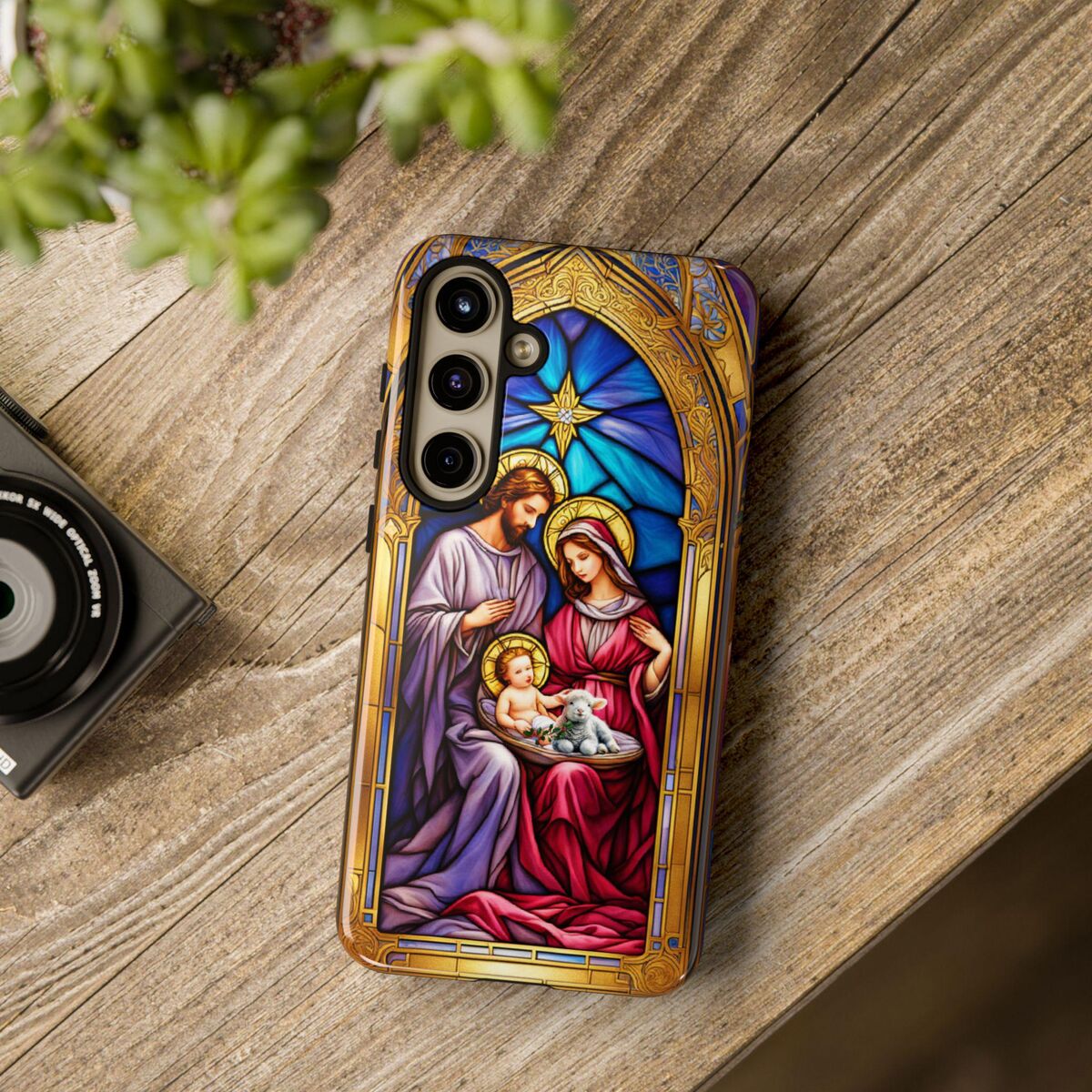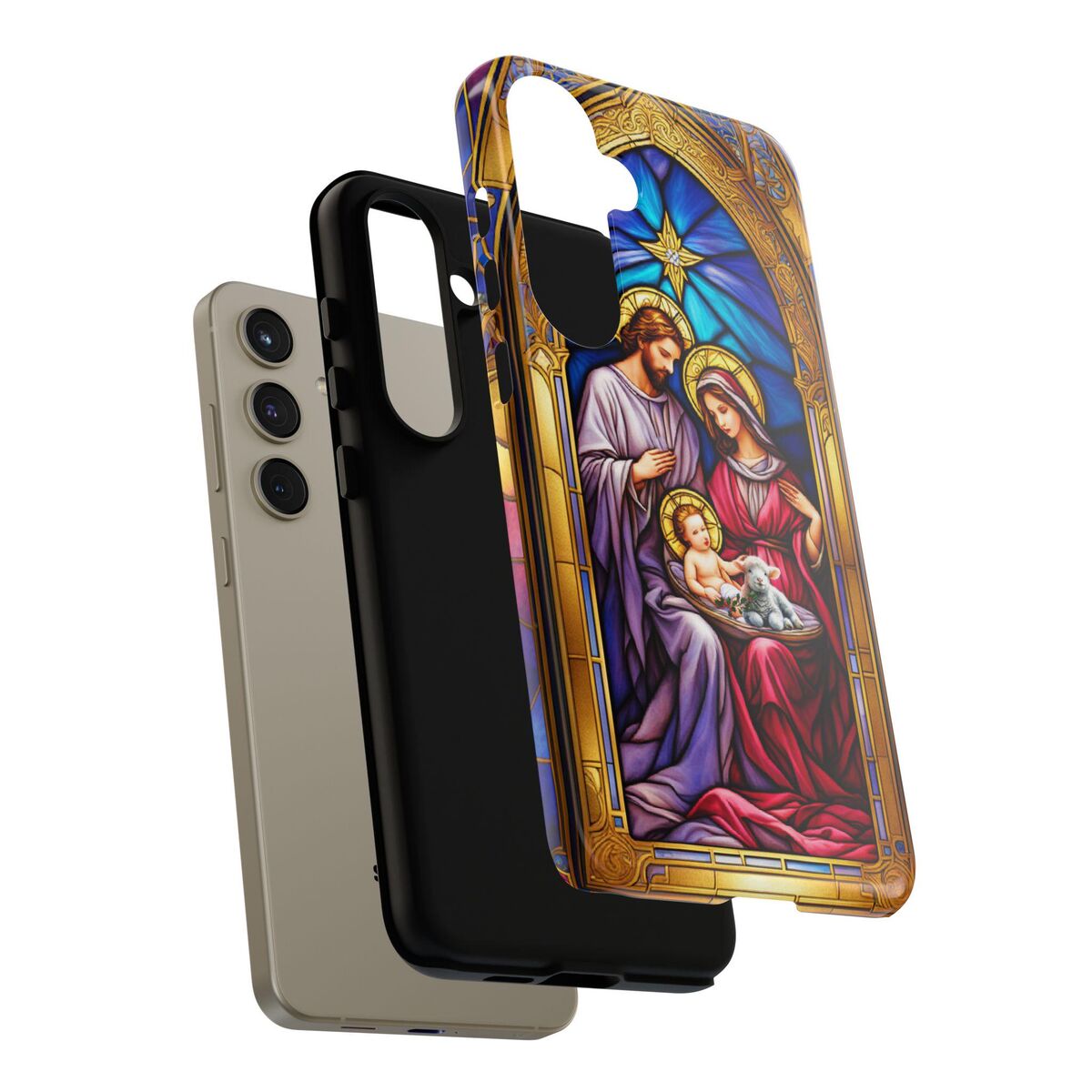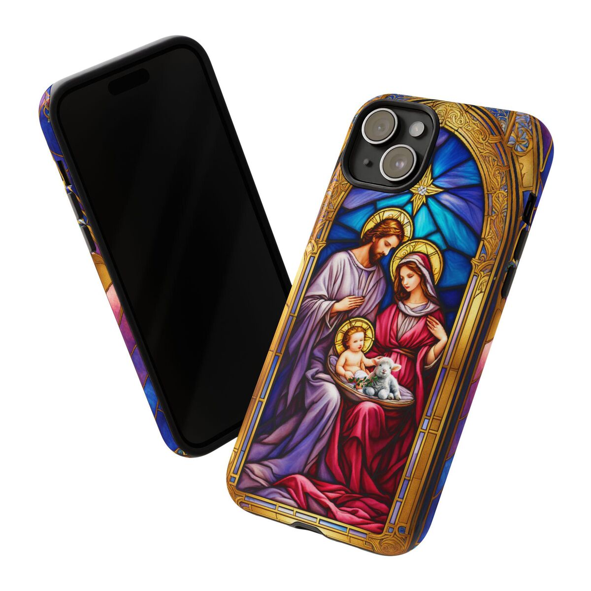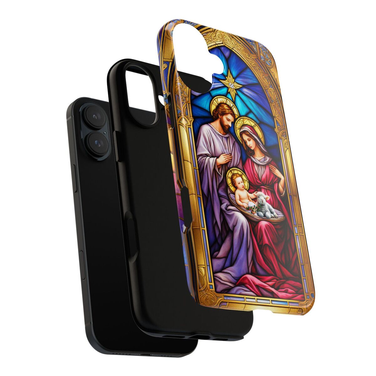 Nativity Phone Tough Case Faux Stained Glass Christmas Christian Fits iphone 16 15 14 13 Pixel 8 Galaxy S24 S23 S 22 And More