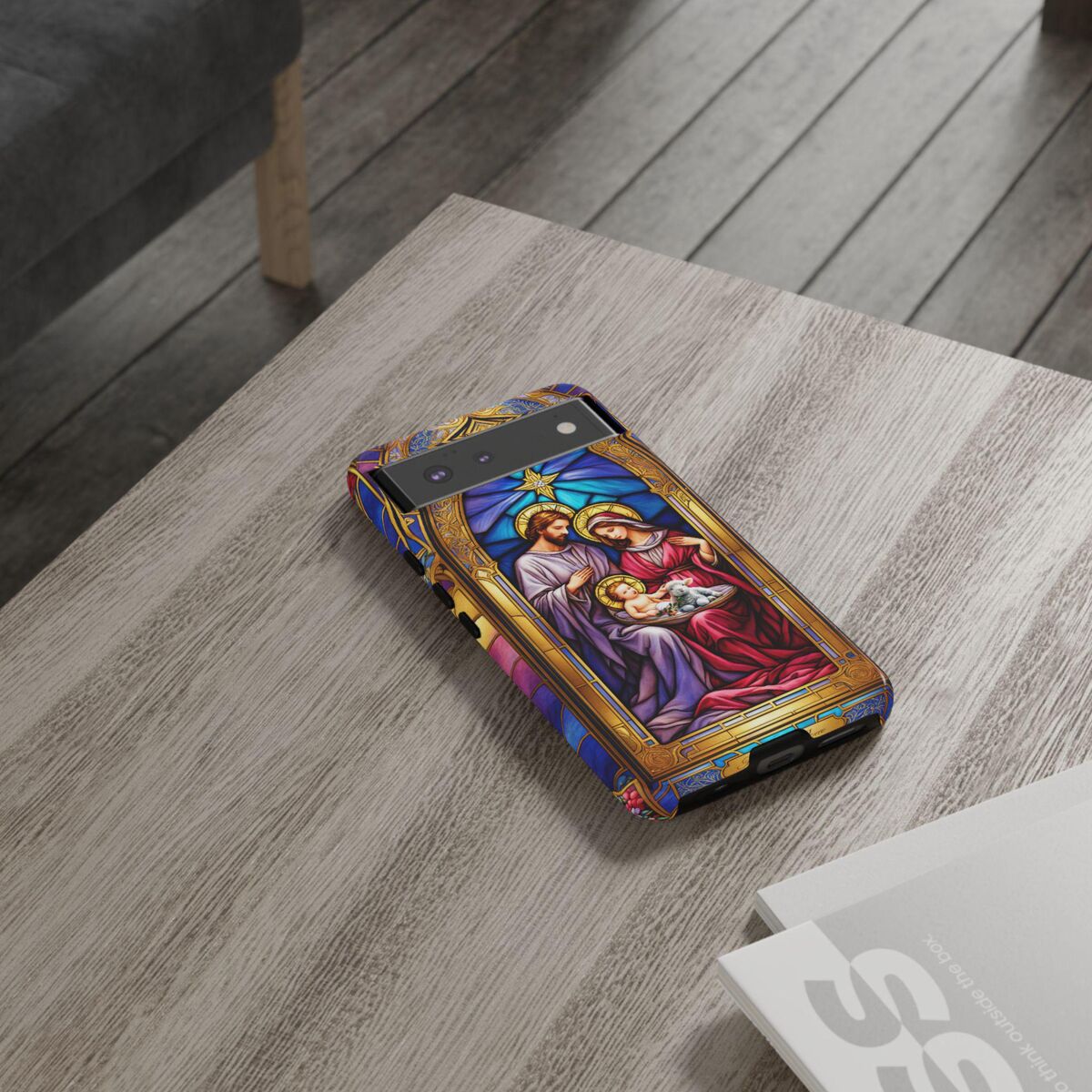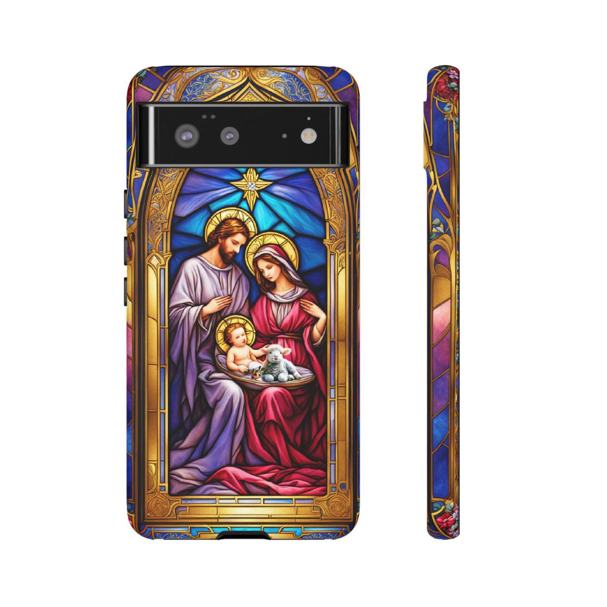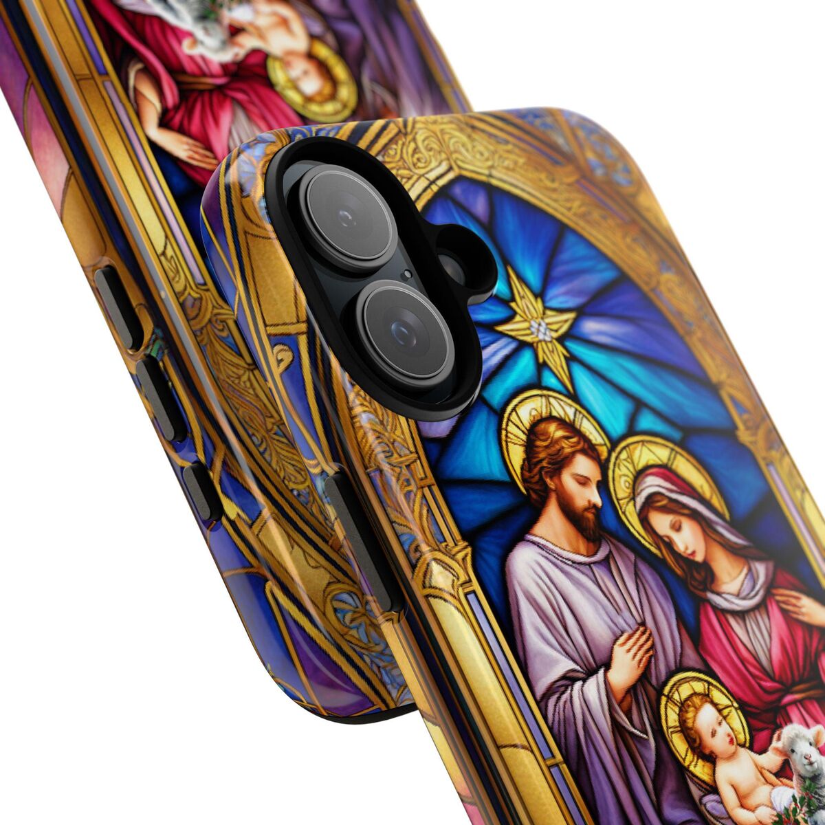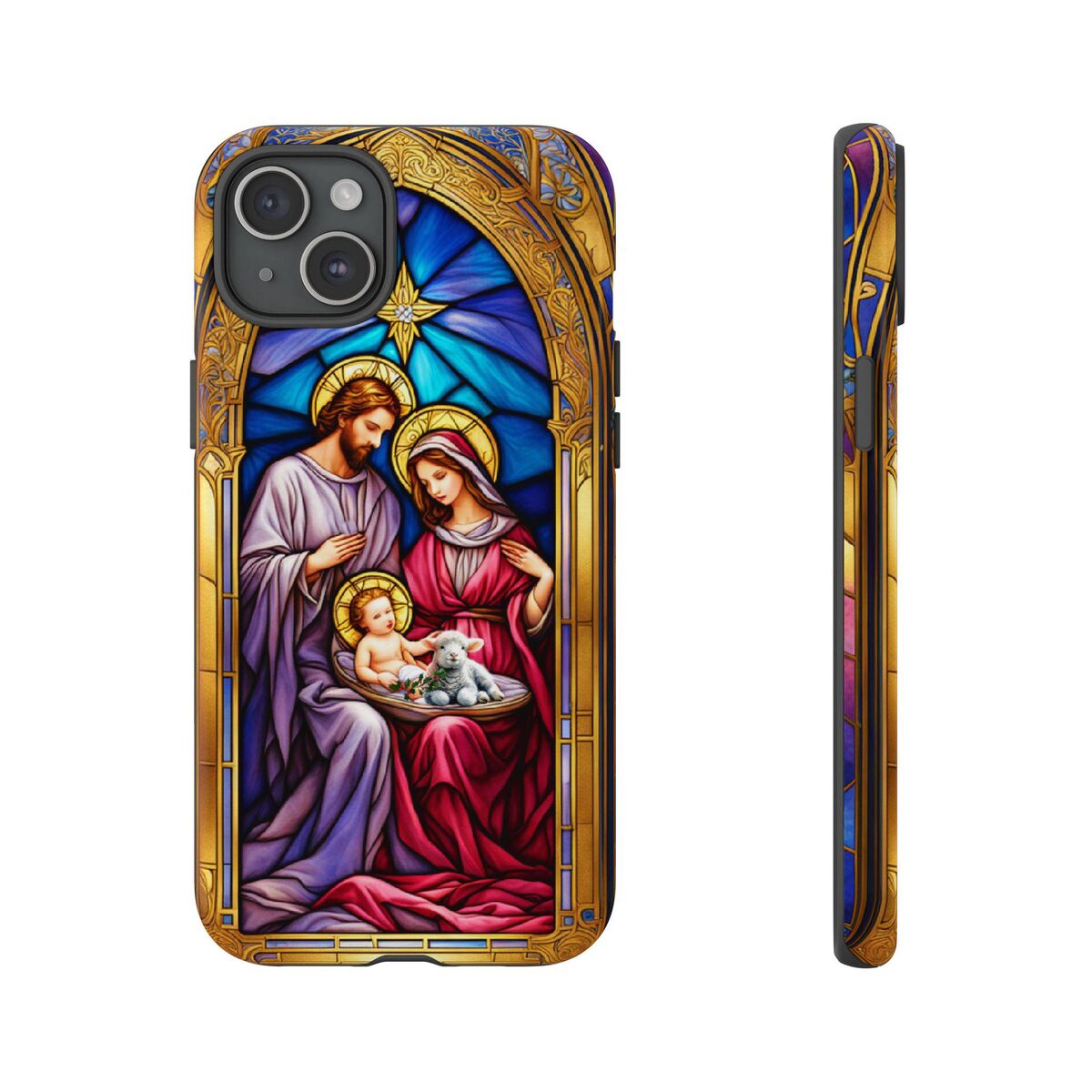 Nativity Phone Tough Case Faux Stained Glass Christmas Christian Fits iphone 16 15 14 13 Pixel 8 Galaxy S24 S23 S 22 And More