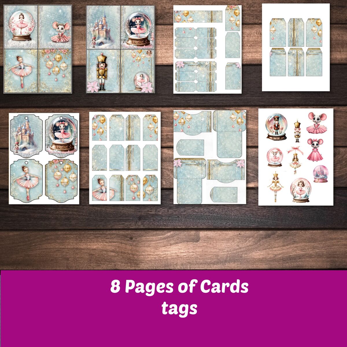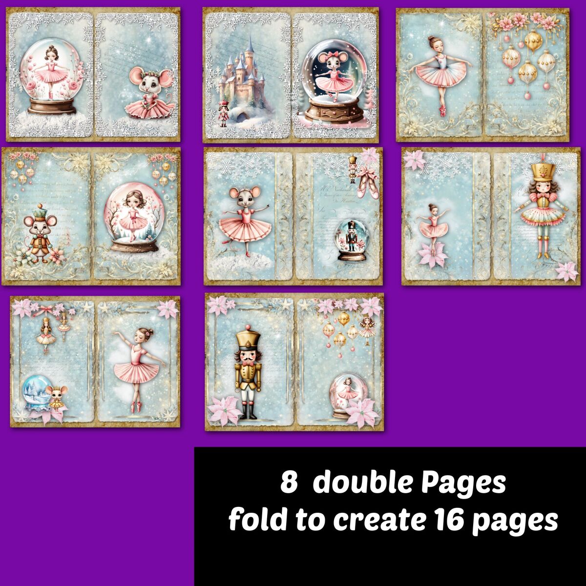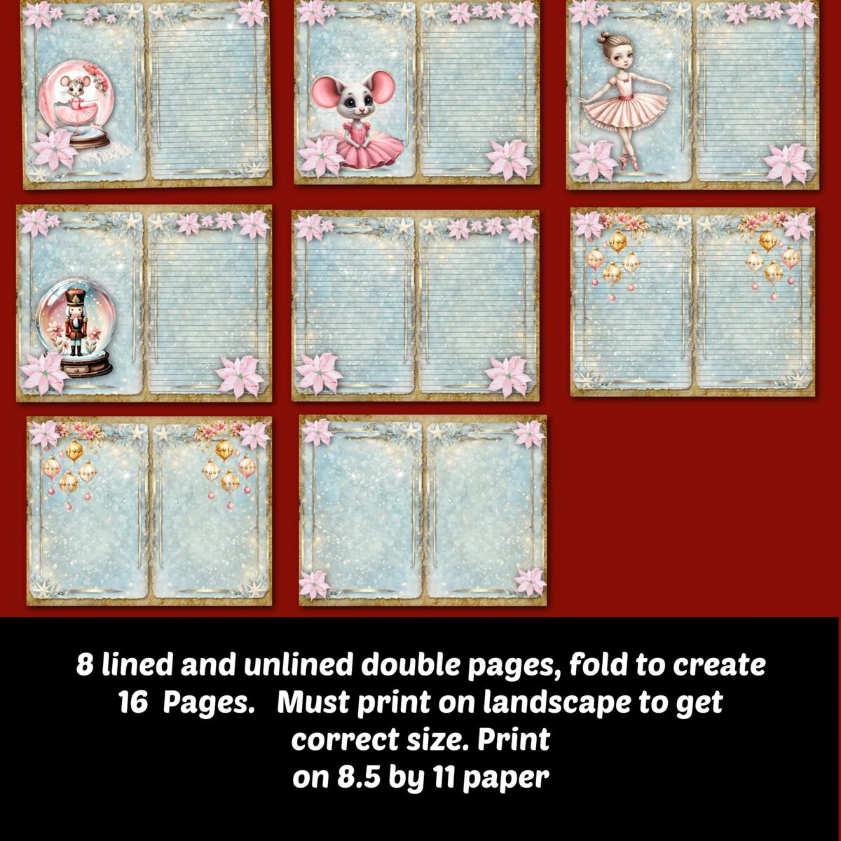 Nutcracker Mouse In Snow Globe Christmas Junk Journal Kit Printable Blank Lined Paper Supplies Ephemera Collage Download