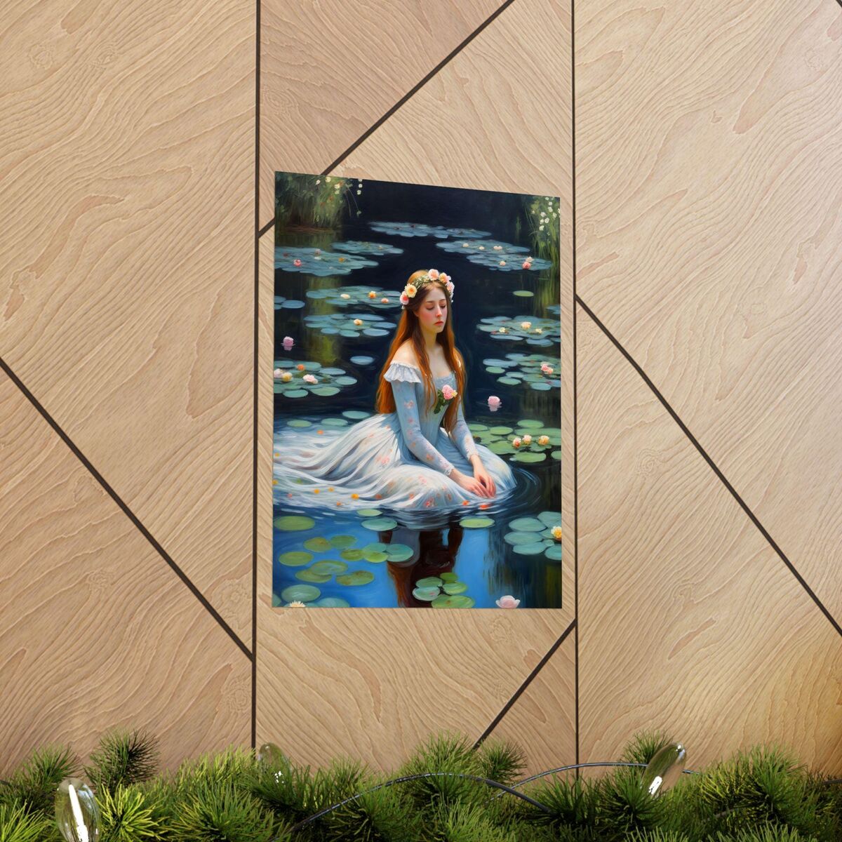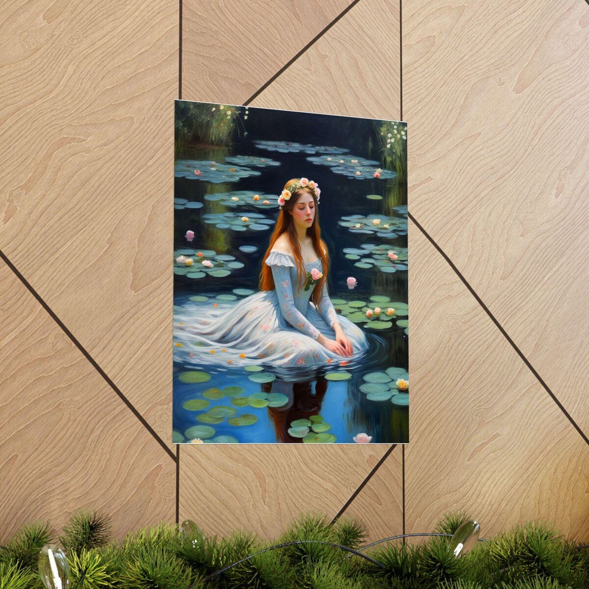 Ophelia Dark Academia Print Victorian Dark Moody Oil Painting Print Wall Art Decor Gothic Lady In Lake Large Size Framed Canvas Print