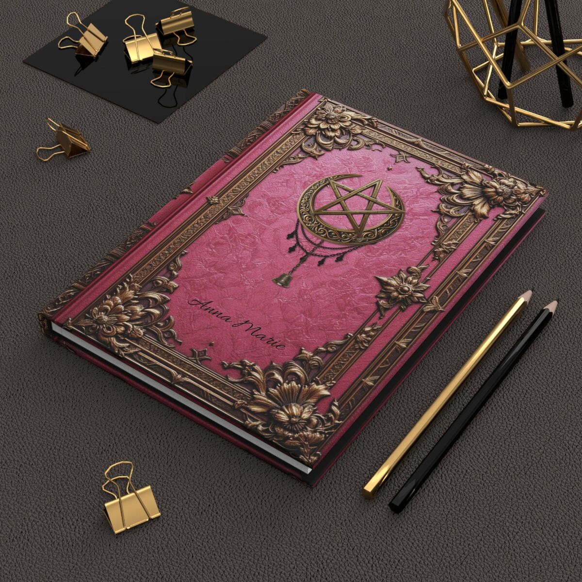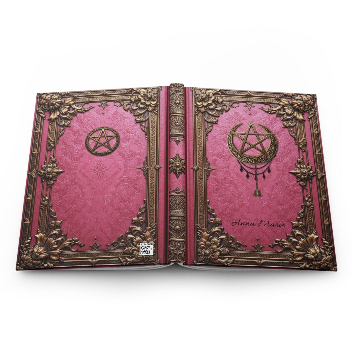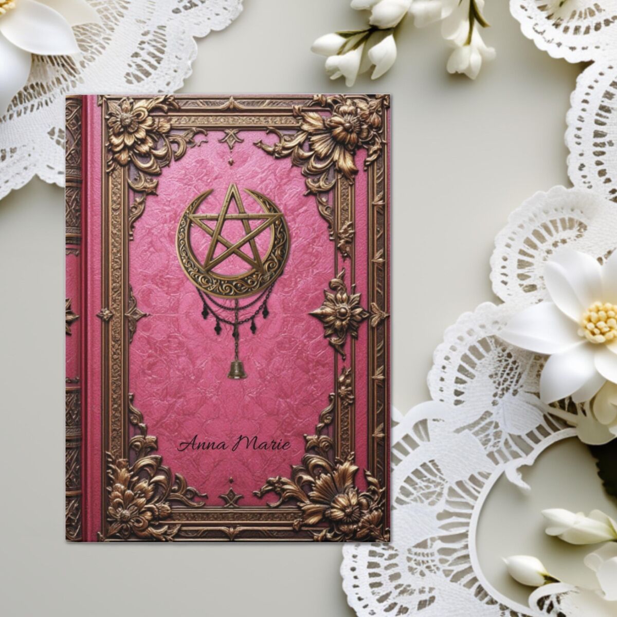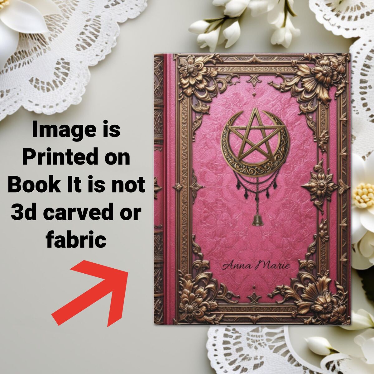Pentagram Journal Pink Witchy Personalized Moon Phase Hardcover Notebook Book Of Shadows Manifestation Spell Book Tarot