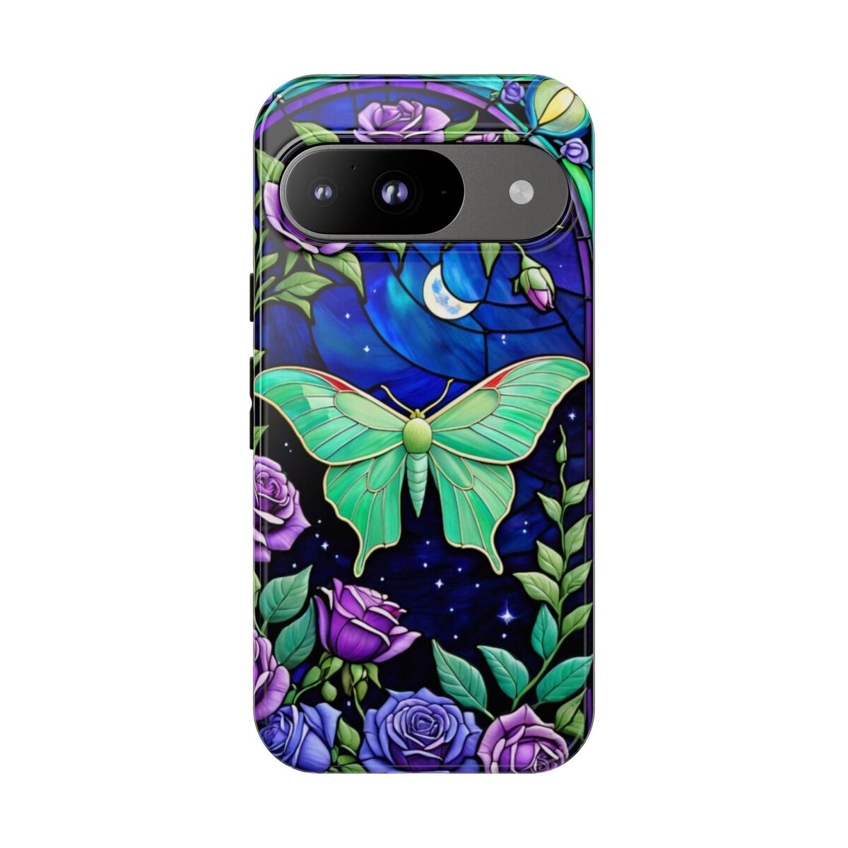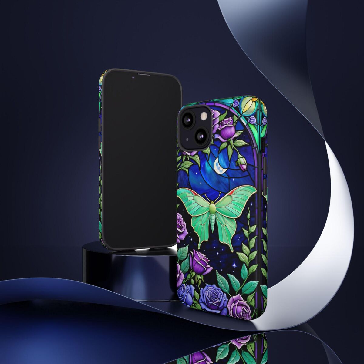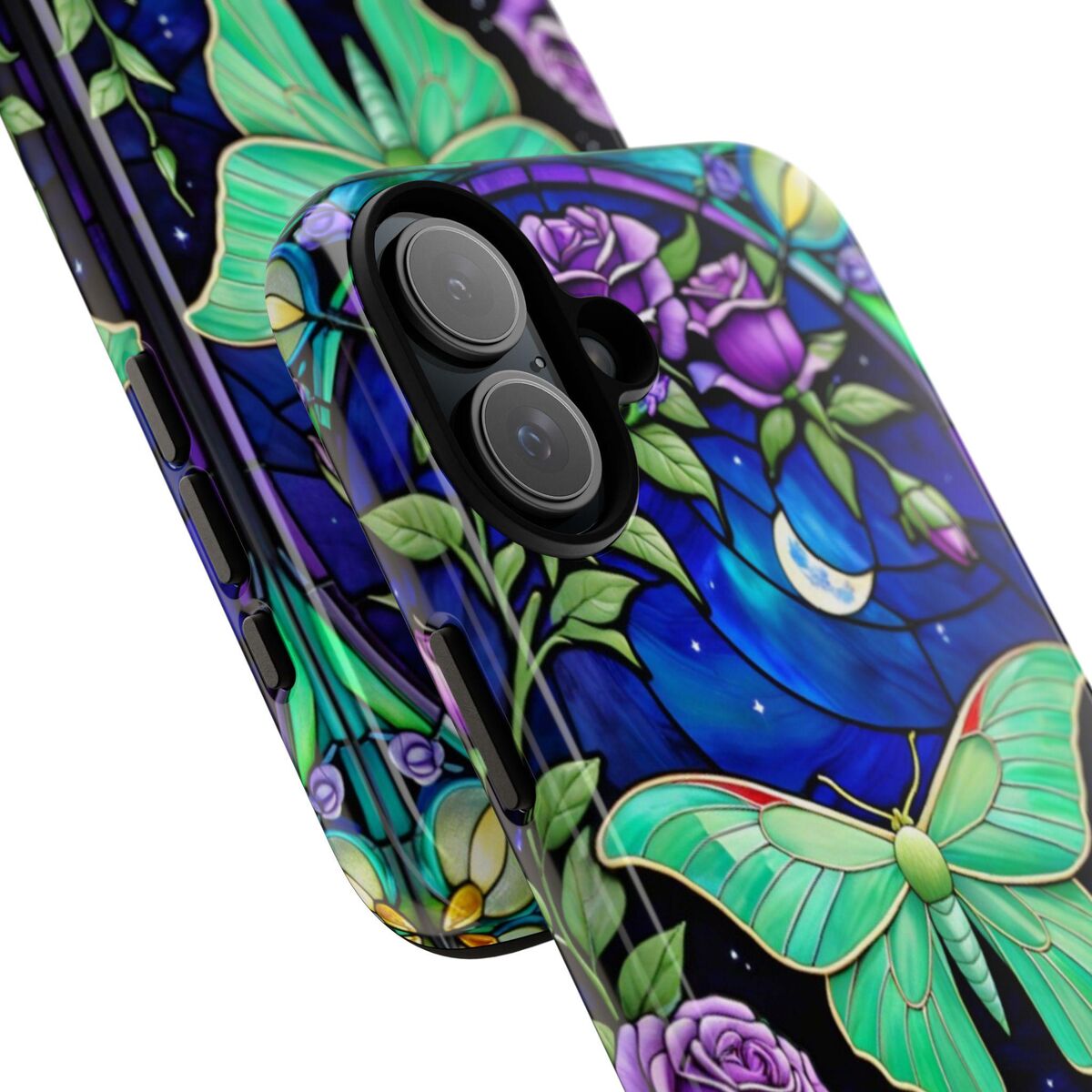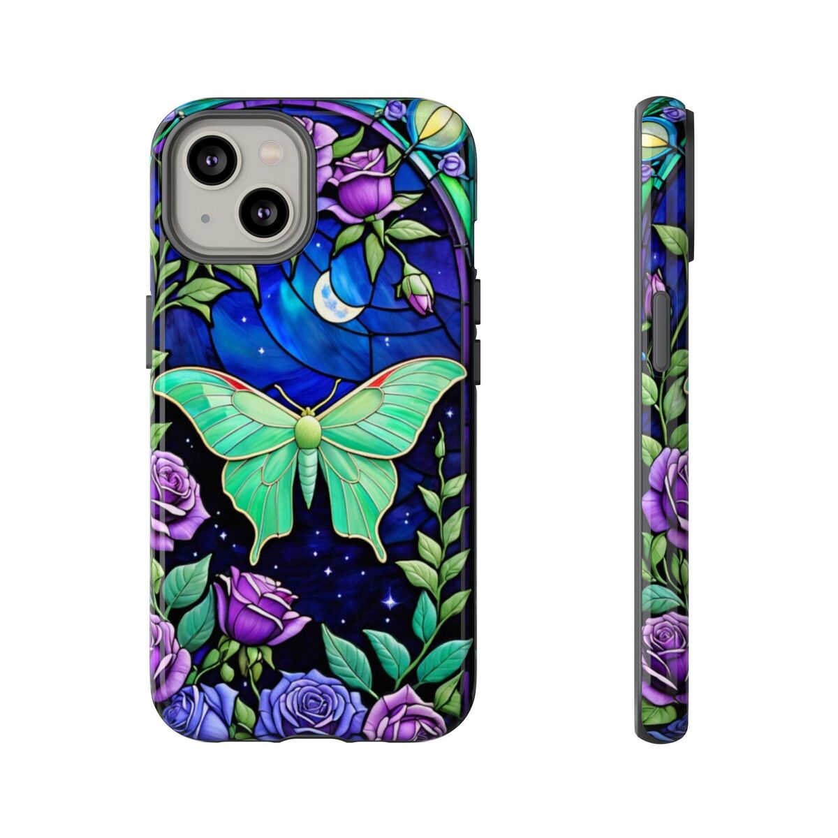 Phone Case Luna Moth Moon Phase Witchy Purple Blue Roses Unique Faux Stained Glass Fits iphone 16 15 14 13 Galaxy S25 S24 S23 Pixel And More