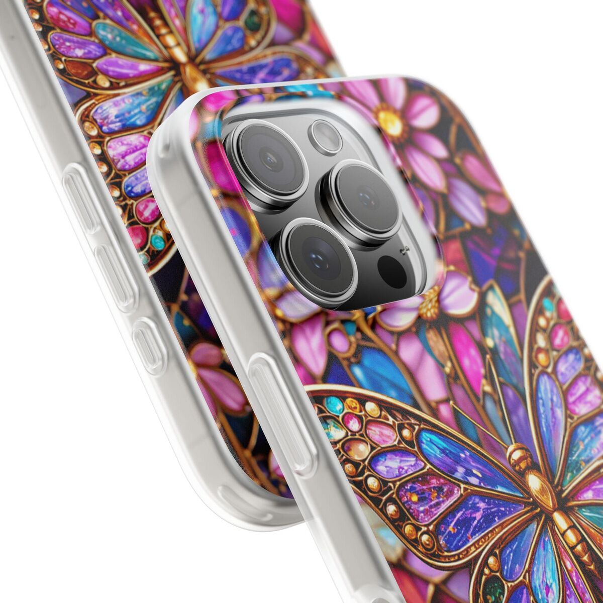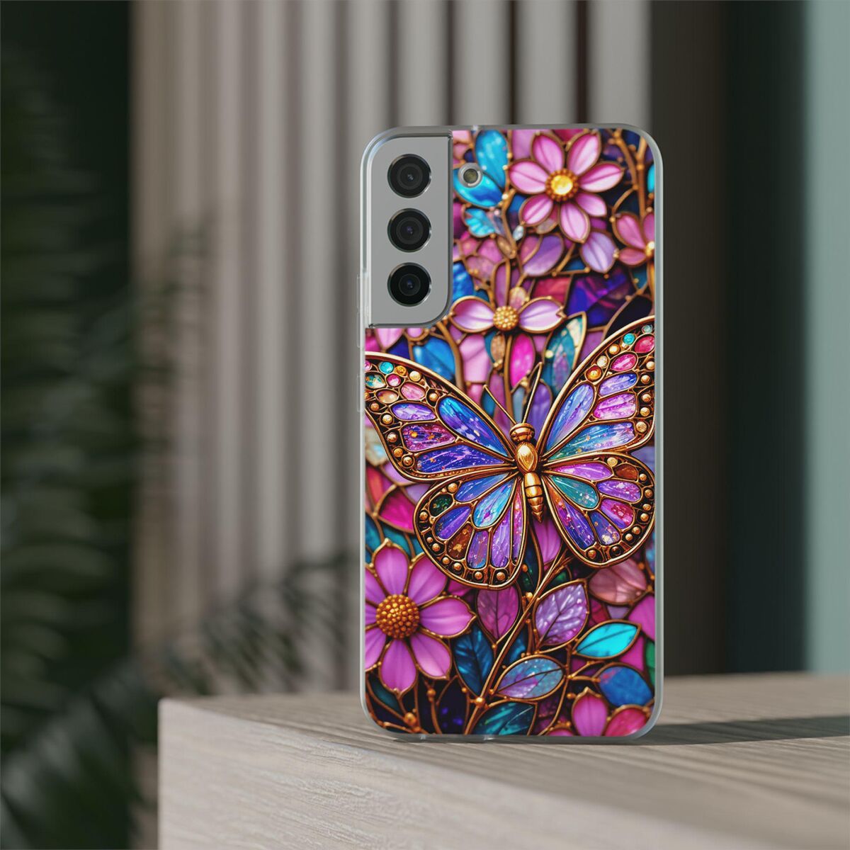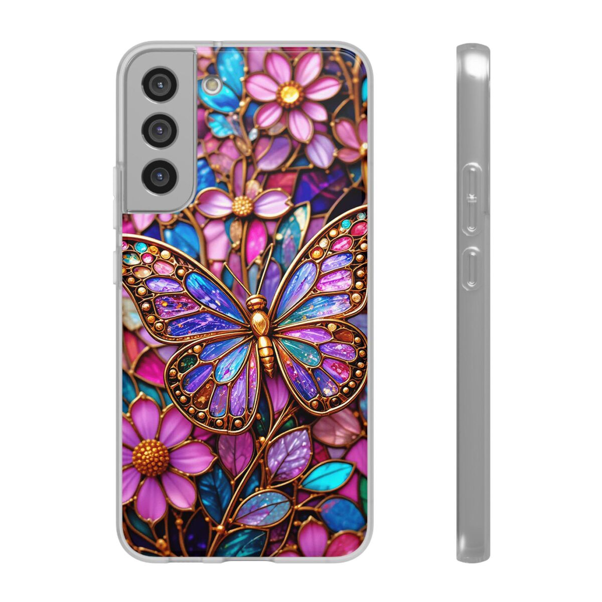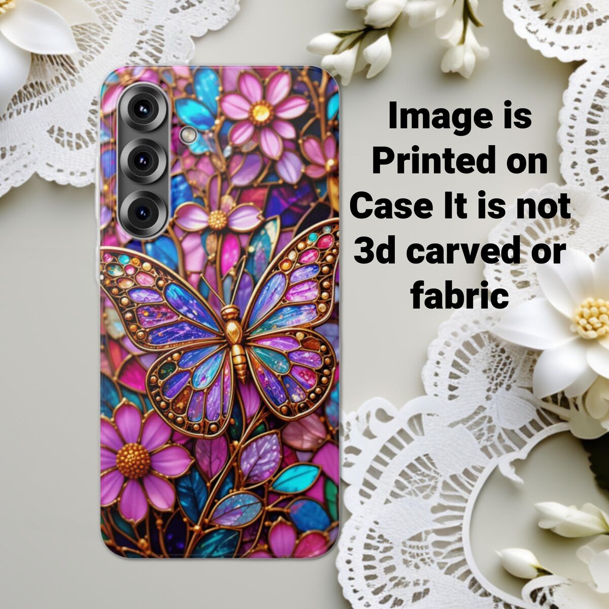 Blue MosaicTough Case Butterfly Faux Stained Glass iphone 16 15 14 13 S25 S24 S23 S22