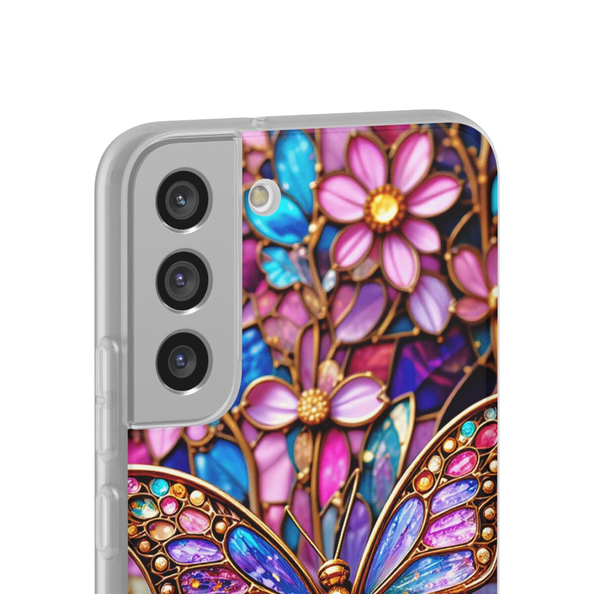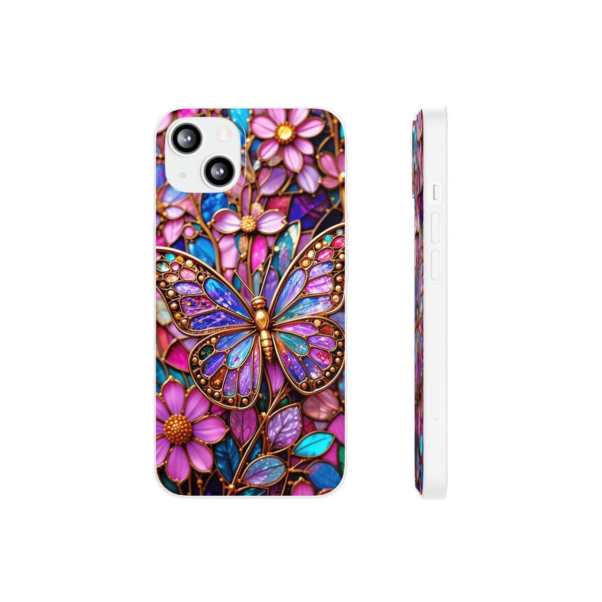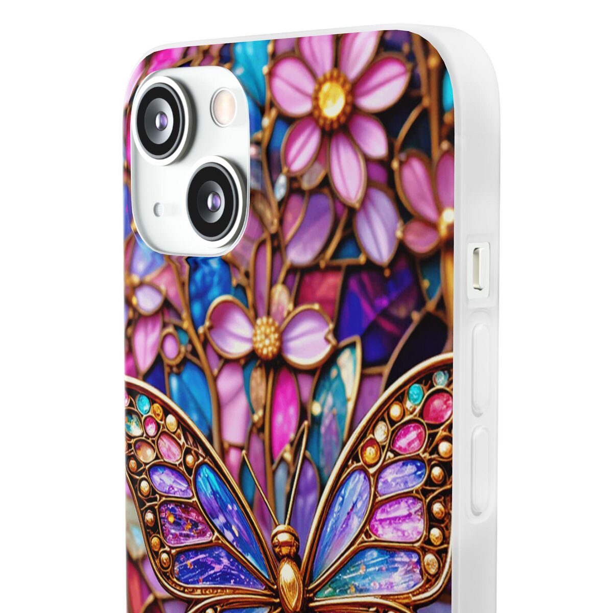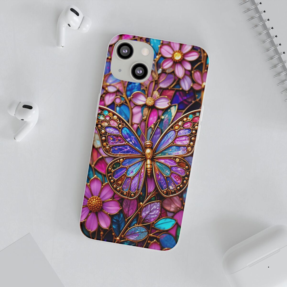 Blue MosaicTough Case Butterfly Faux Stained Glass iphone 16 15 14 13 S25 S24 S23 S22