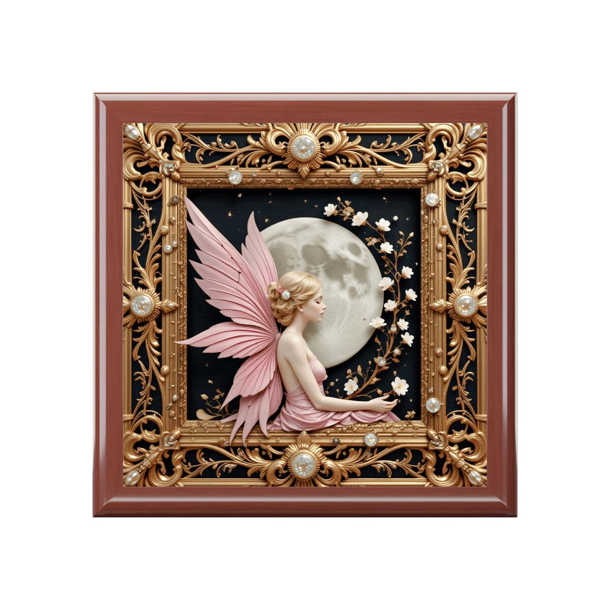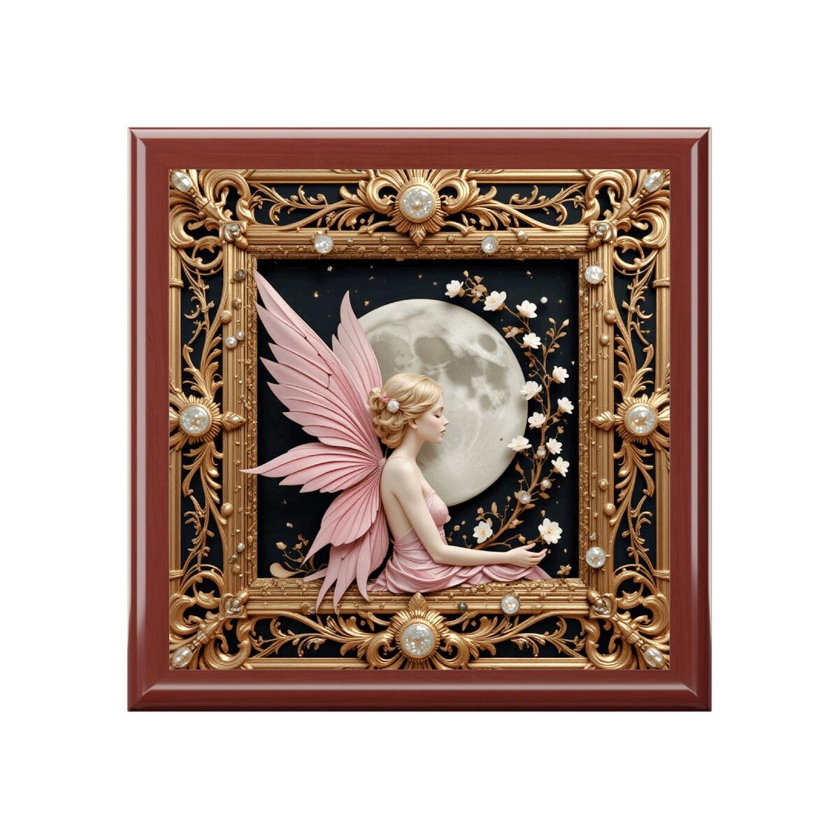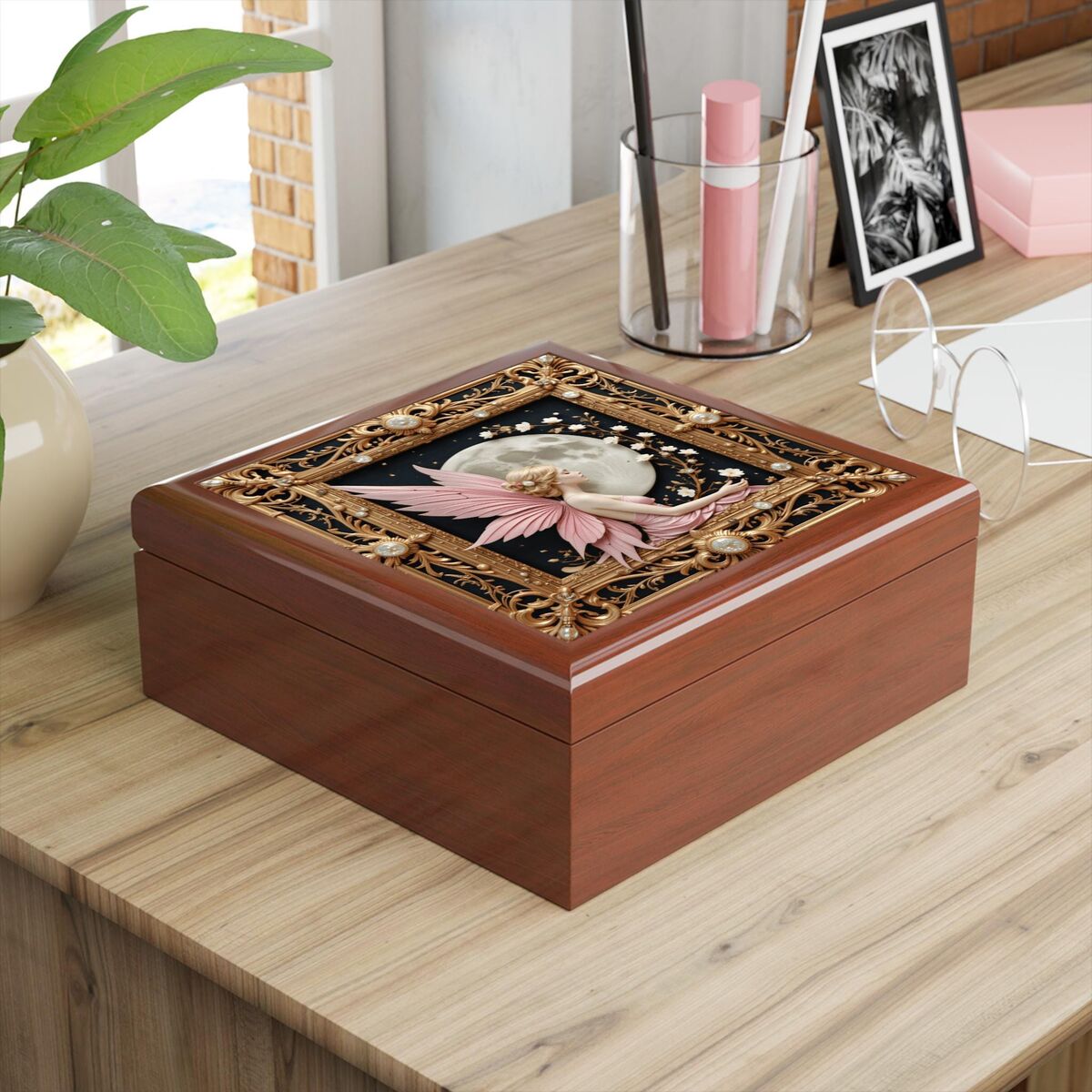 Pink Fairy Moon Art Nouveau Wood Jewelry Box Magical Moon Printed Style Keepsake Witchy Gift Memory Box
