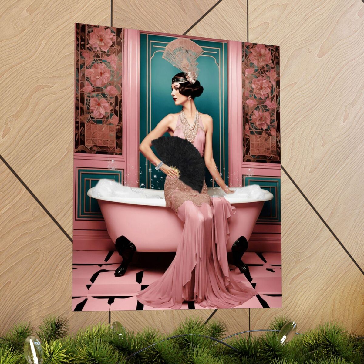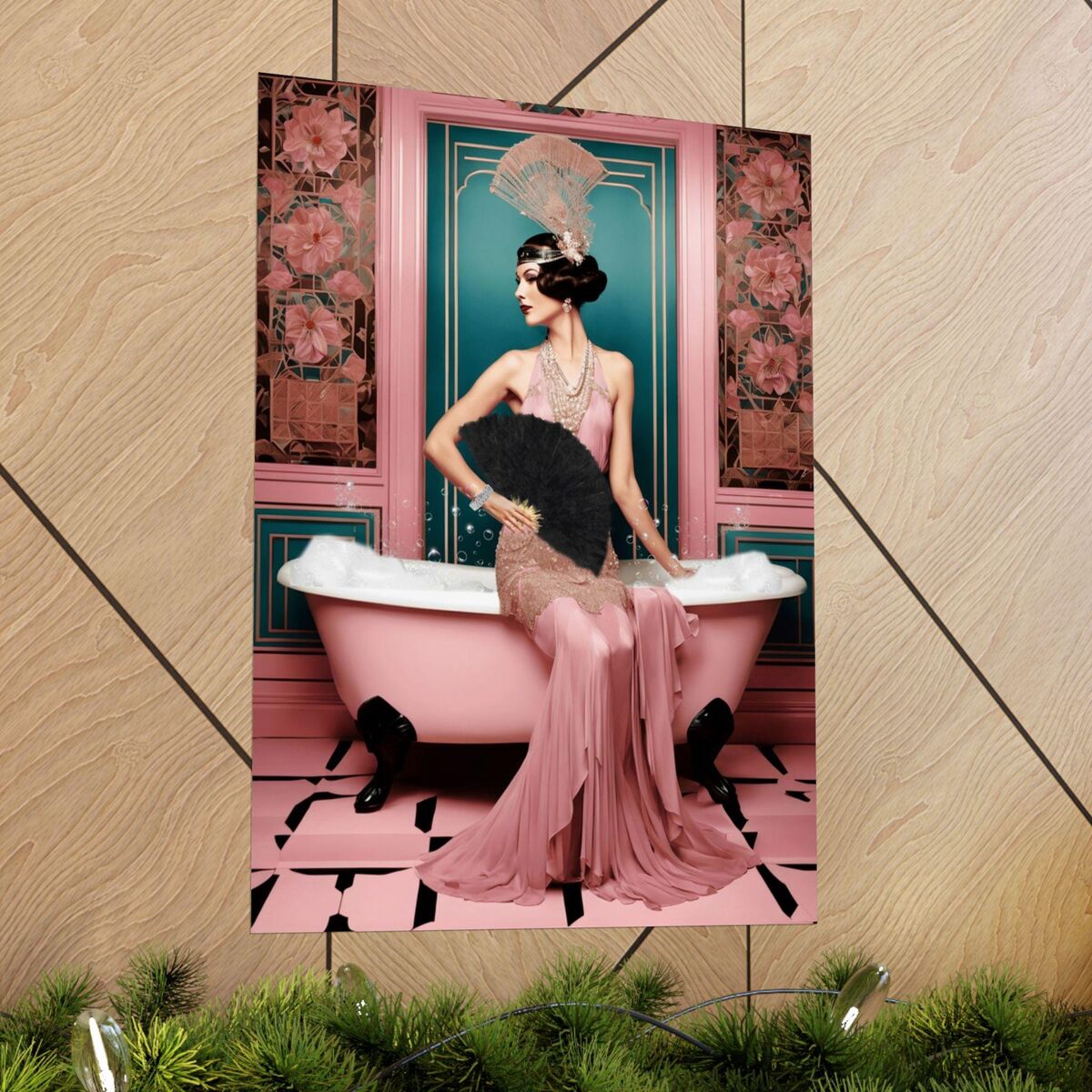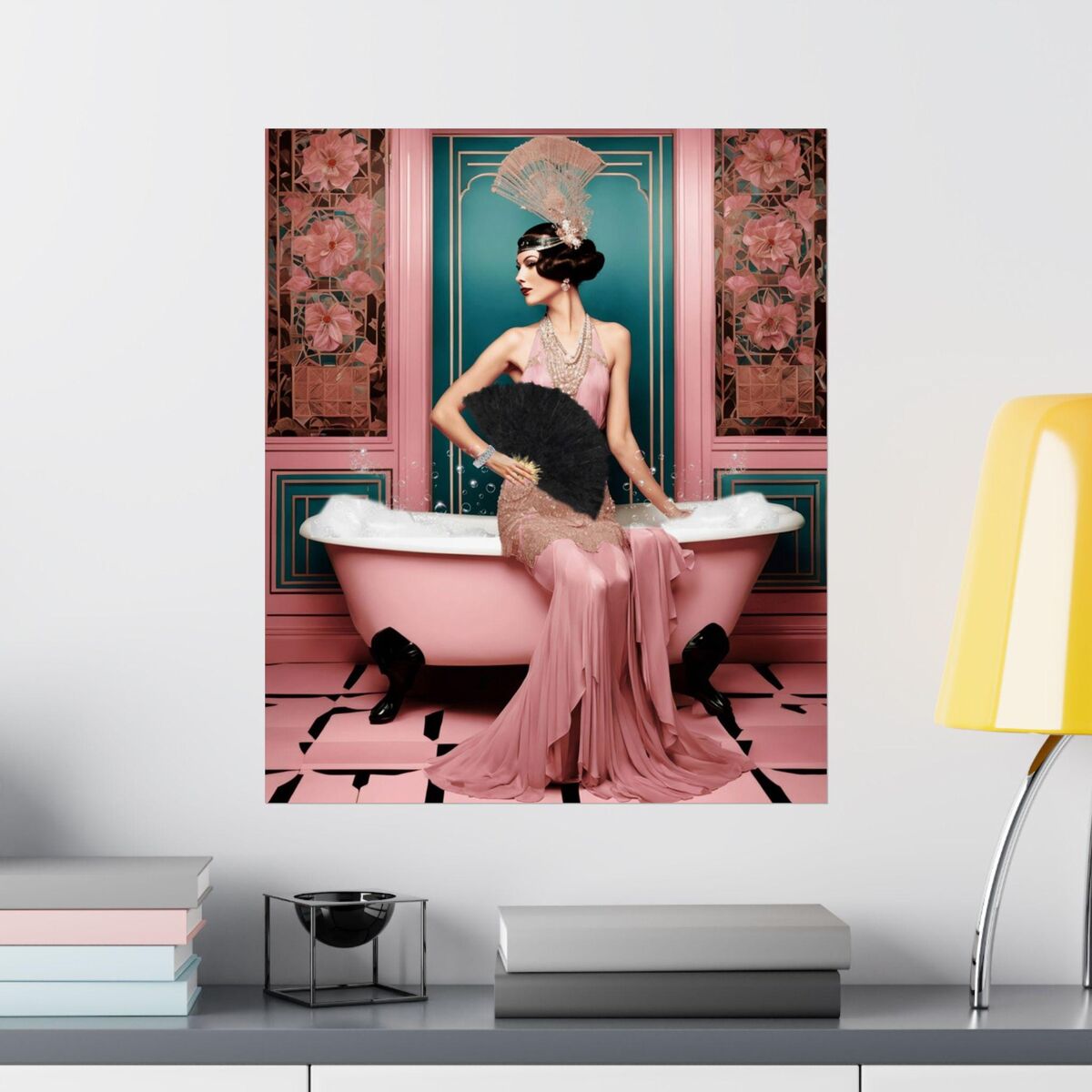Pink Flapper Art Deco Bathroom Print Gatsby Girl Poster Retro Powder Room Wall Art 1920s Style Home Decor