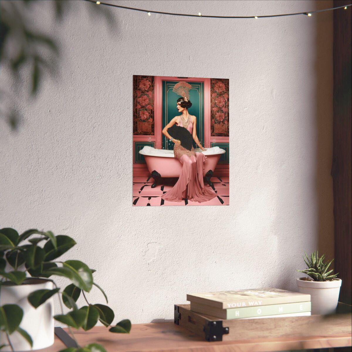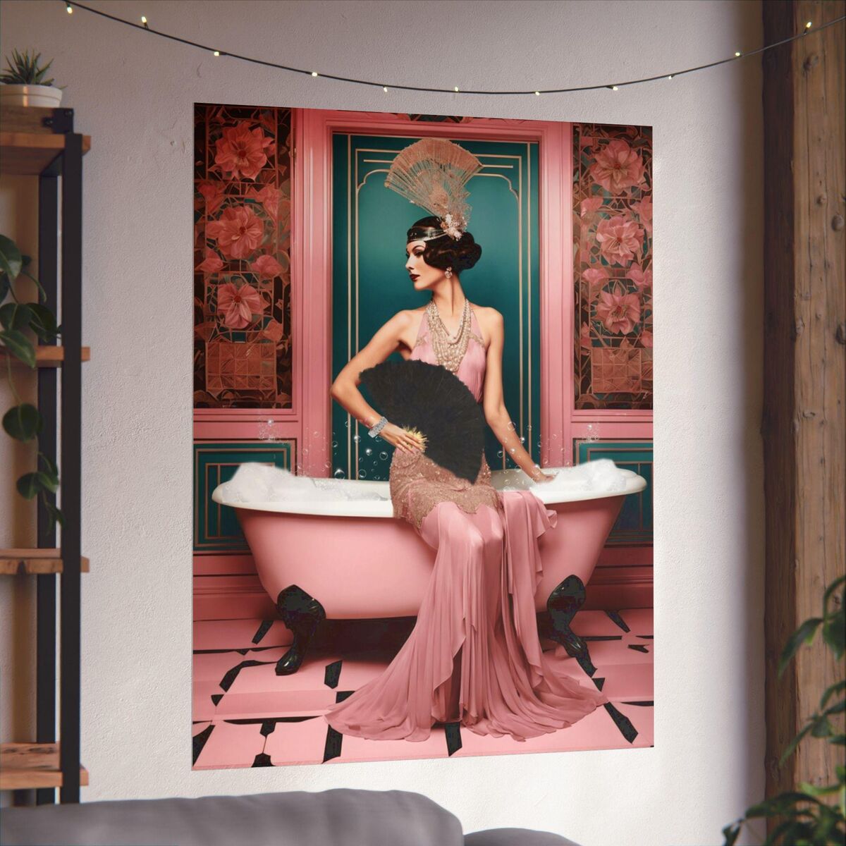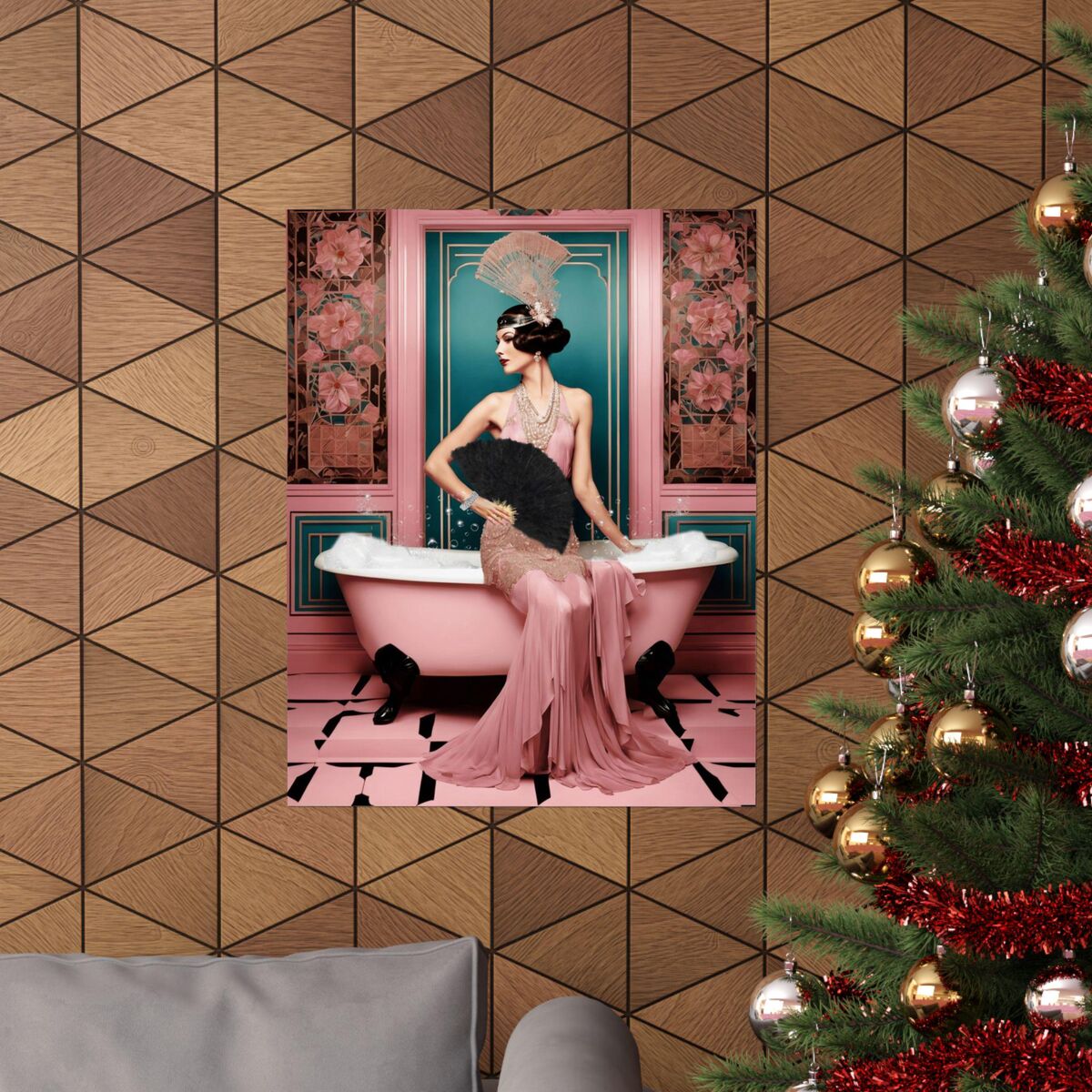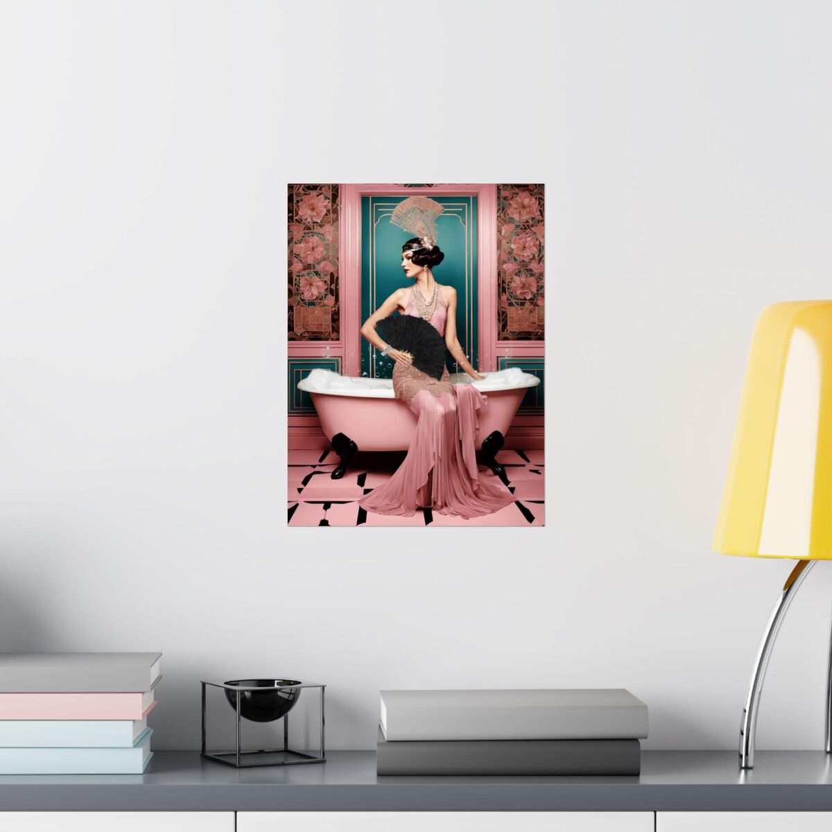 Pink Flapper Art Deco Bathroom Print Gatsby Girl Poster Retro Powder Room Wall Art 1920s Style Home Decor