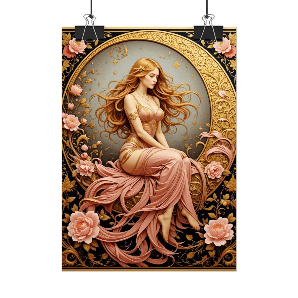 Pink Moon Art Nouveau Poster Print Boho Lady Goddess Mucha Inspired Wall Art New Art Nouveau Bohemian Home Decor