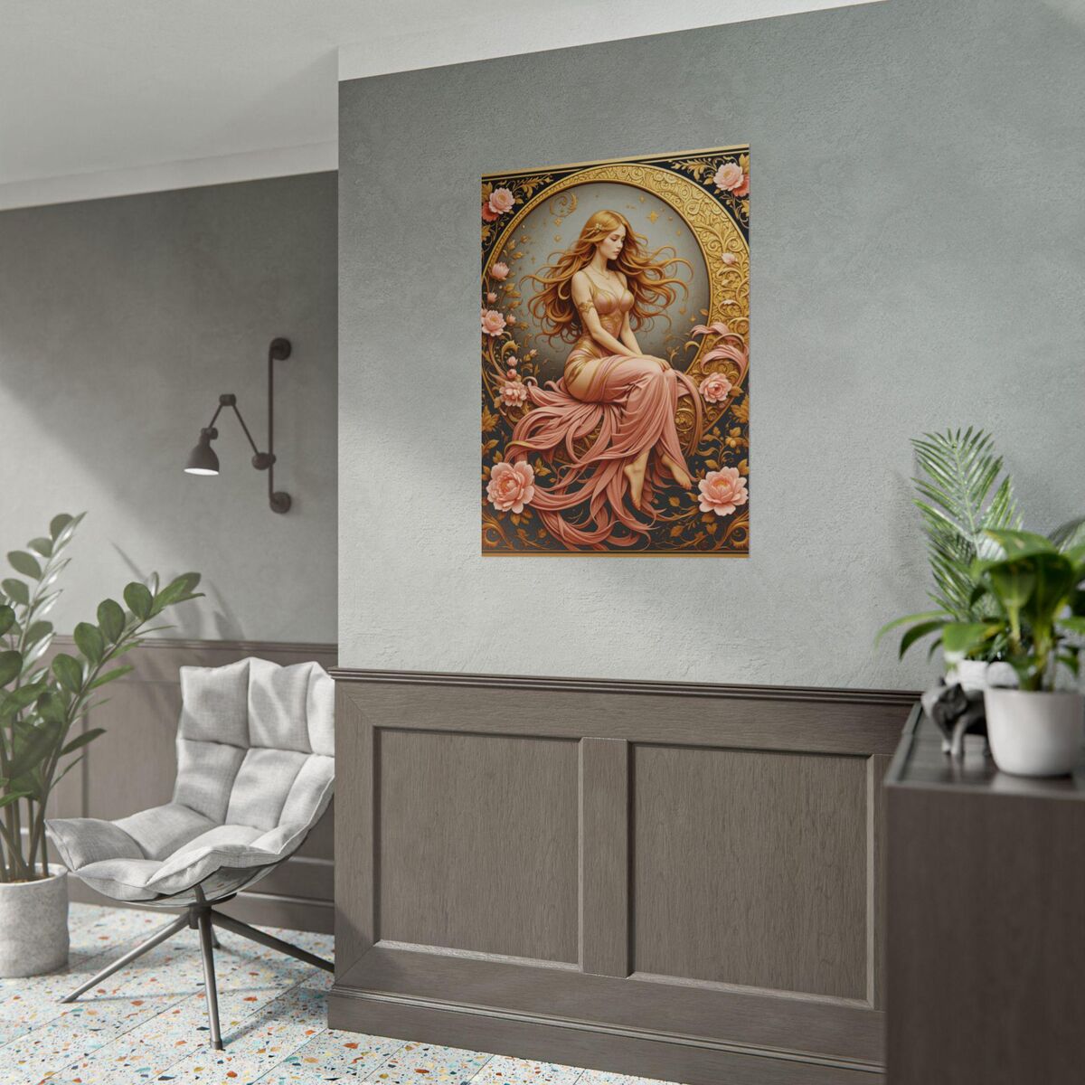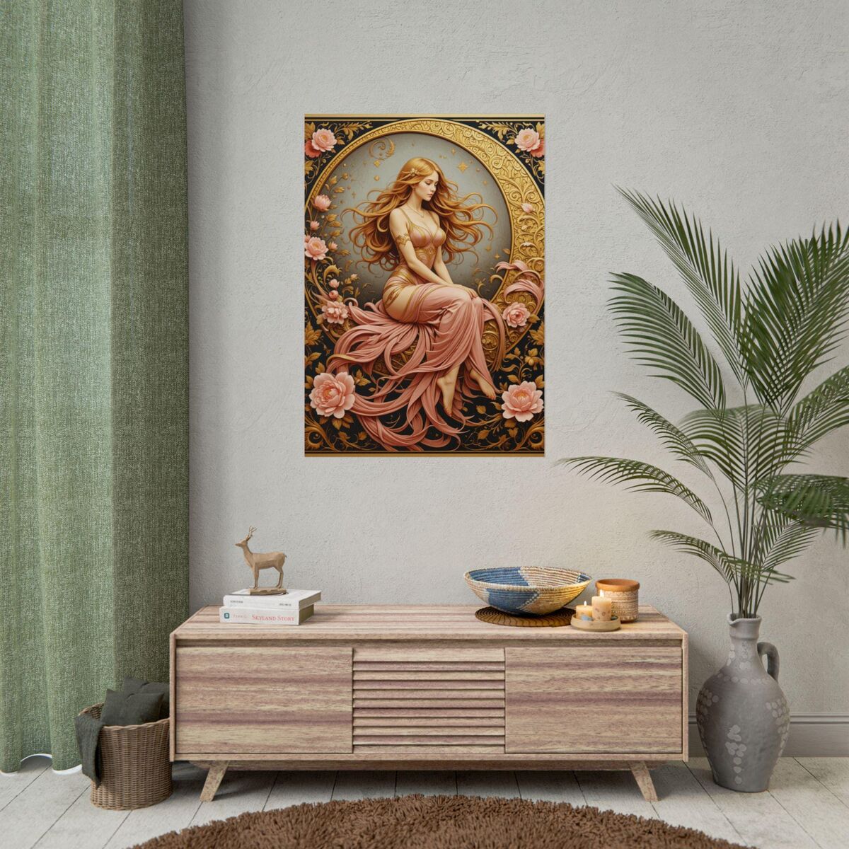 Introducing our Art Nouveau Poster Print, featuring a captivating Boho Lady. Inspired by the renowned artist Mucha, this wall art piece beautifully captures the essence of the Art Nouveau movement.