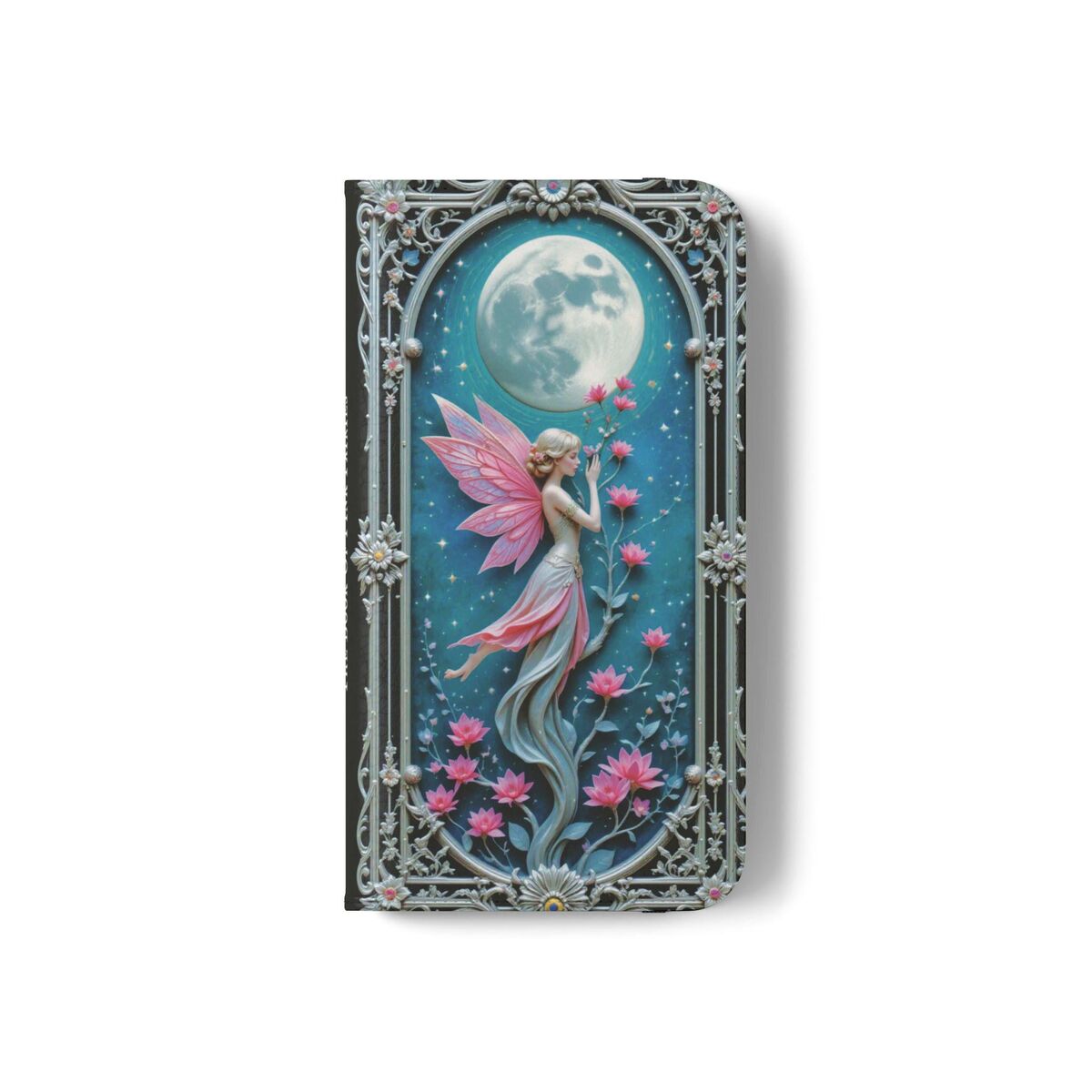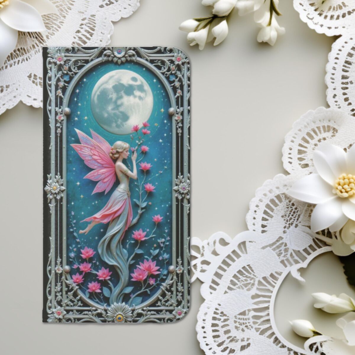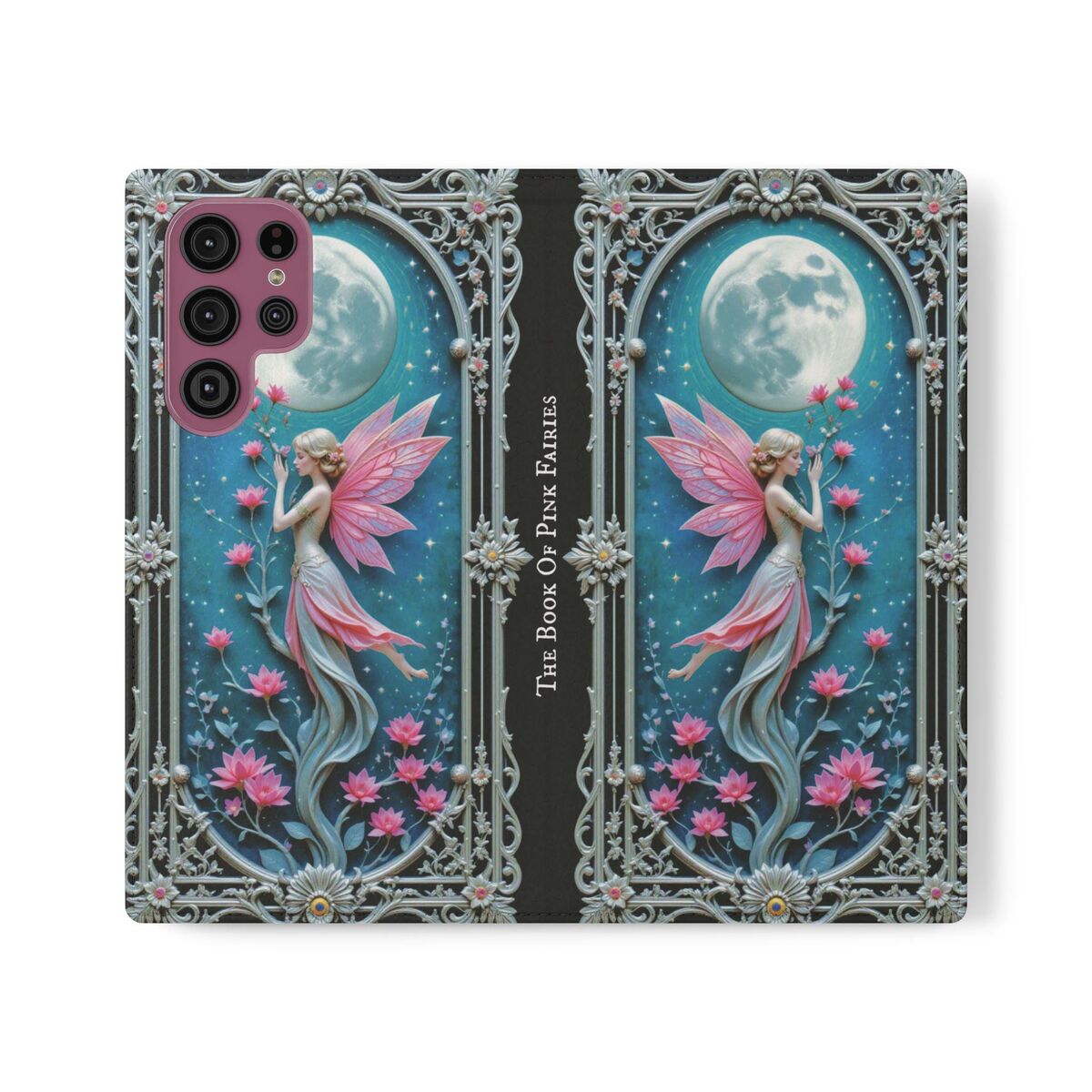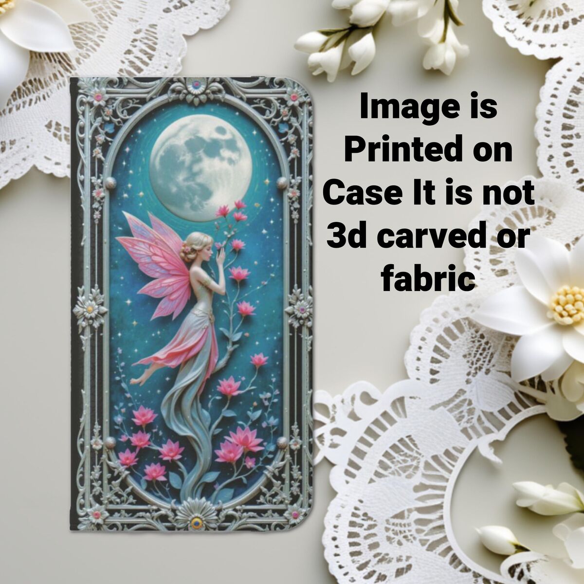 Pink Moon Fairy Book Phone Case Wallet Witchy Dark Academia Flip Case Card Case Fits iphone 16 15 14 Galaxy S25 And More