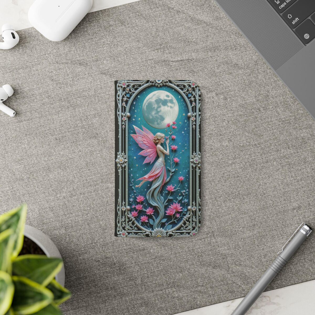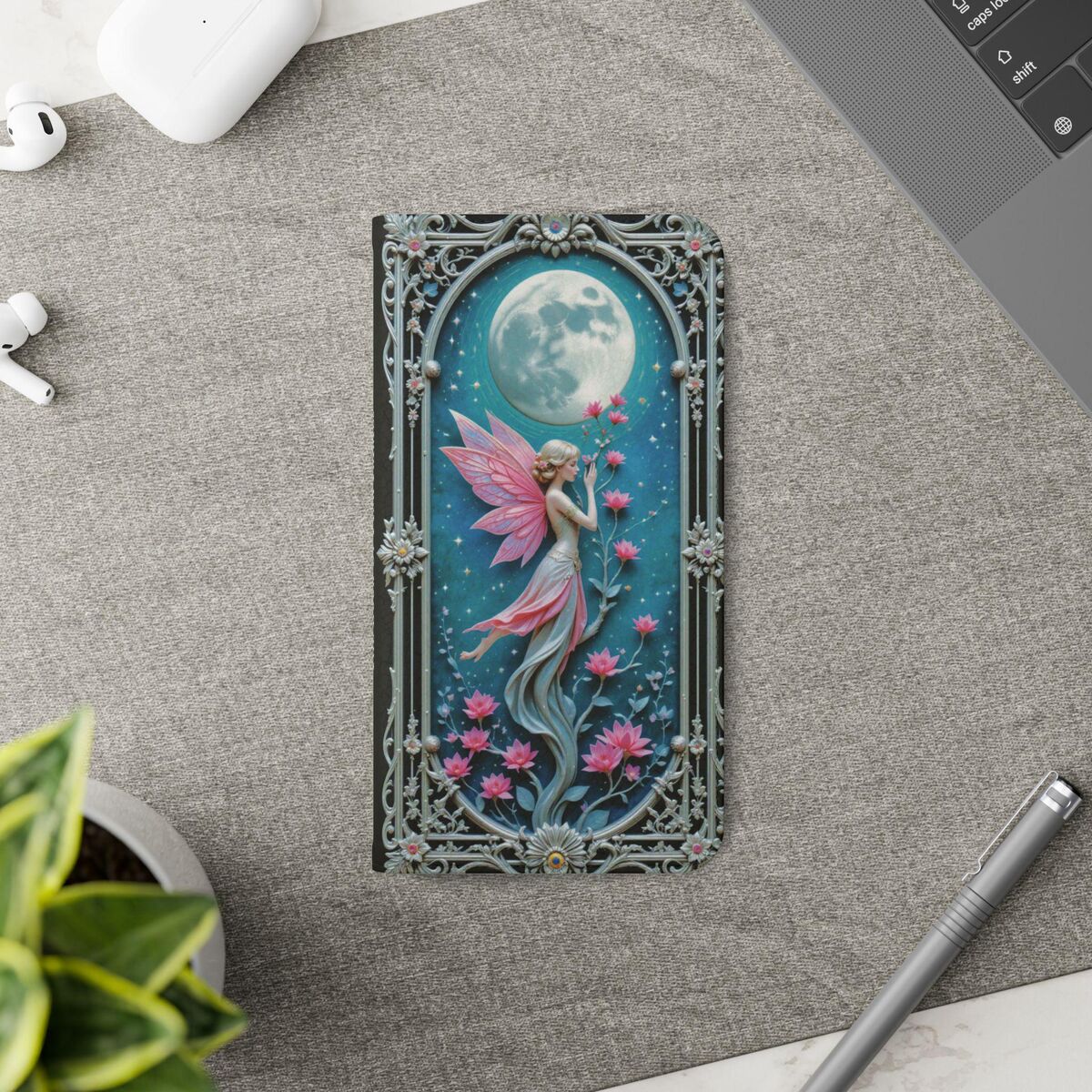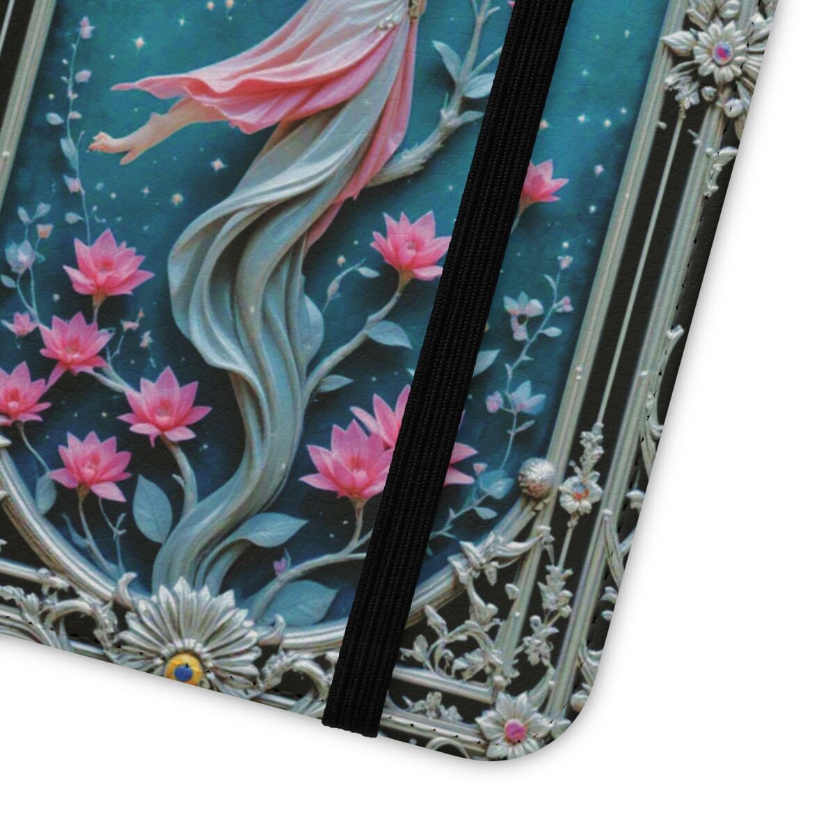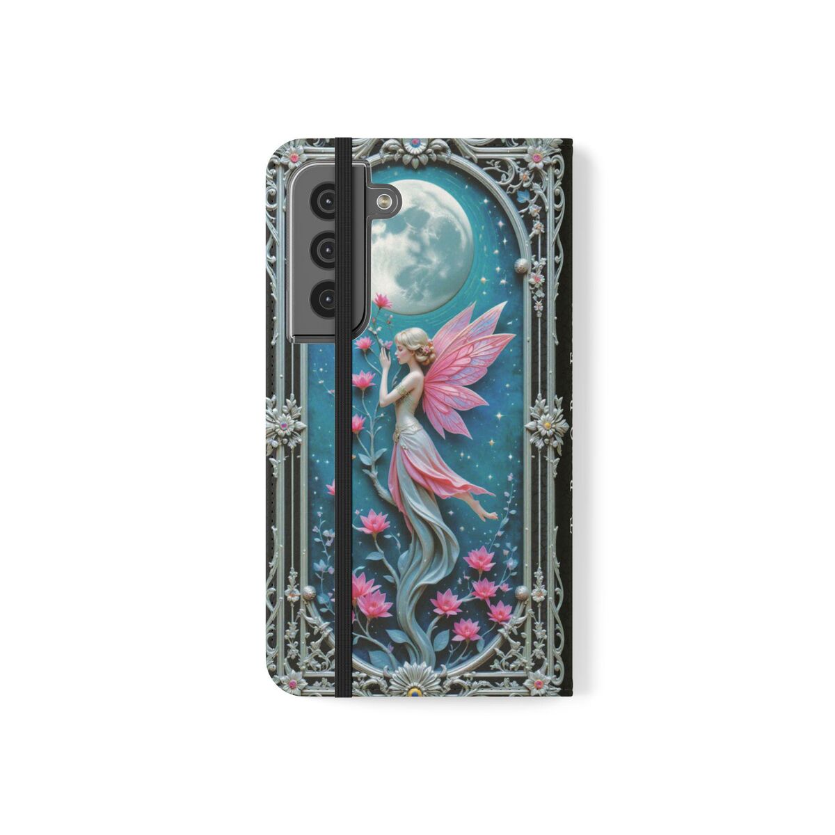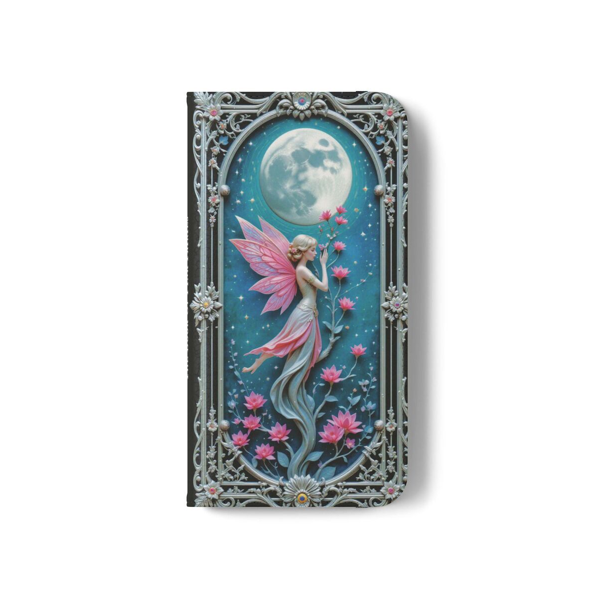 Pink Moon Fairy Book Phone Case Wallet Witchy Dark Academia Flip Case Card Case Fits iphone 16 15 14 Galaxy S25 And More