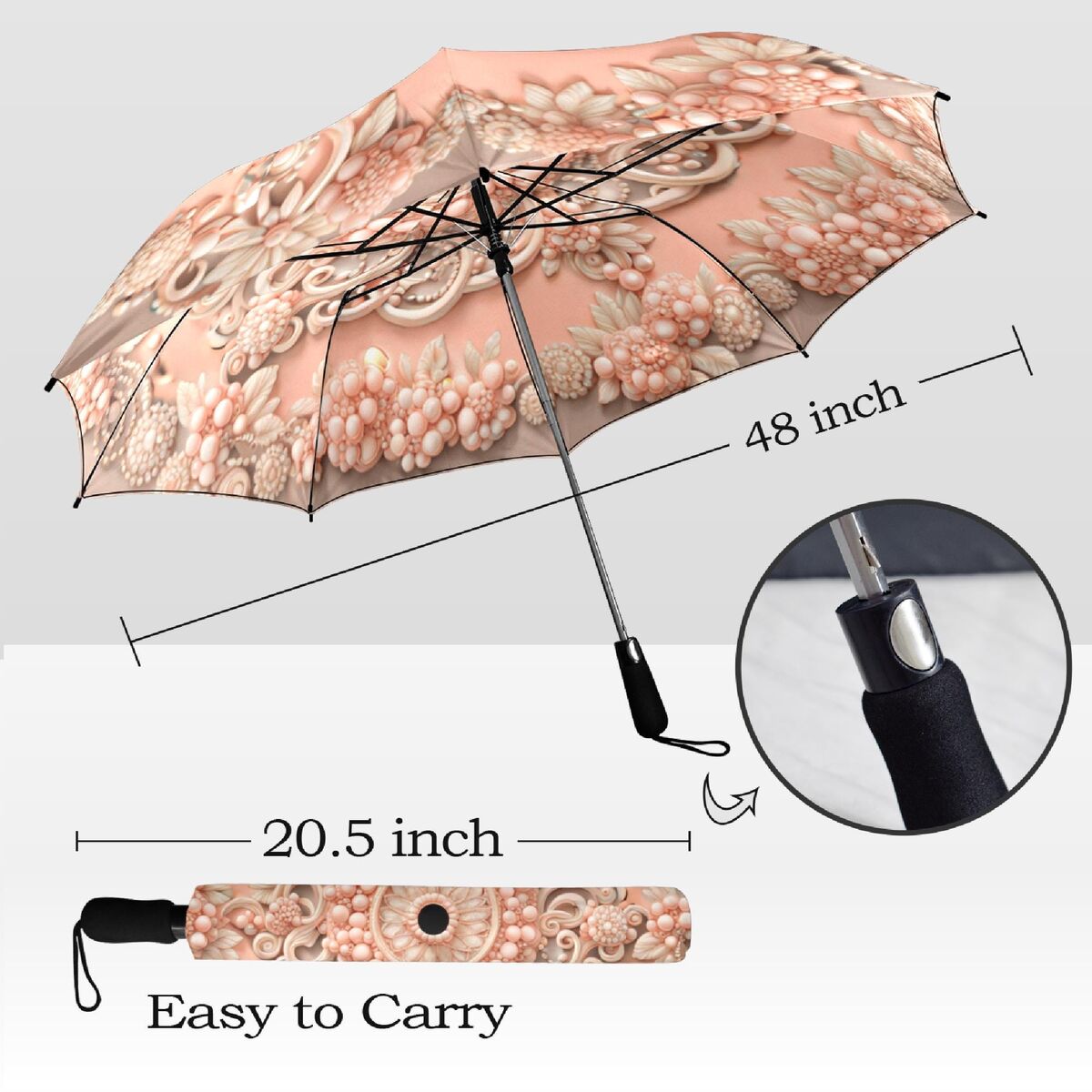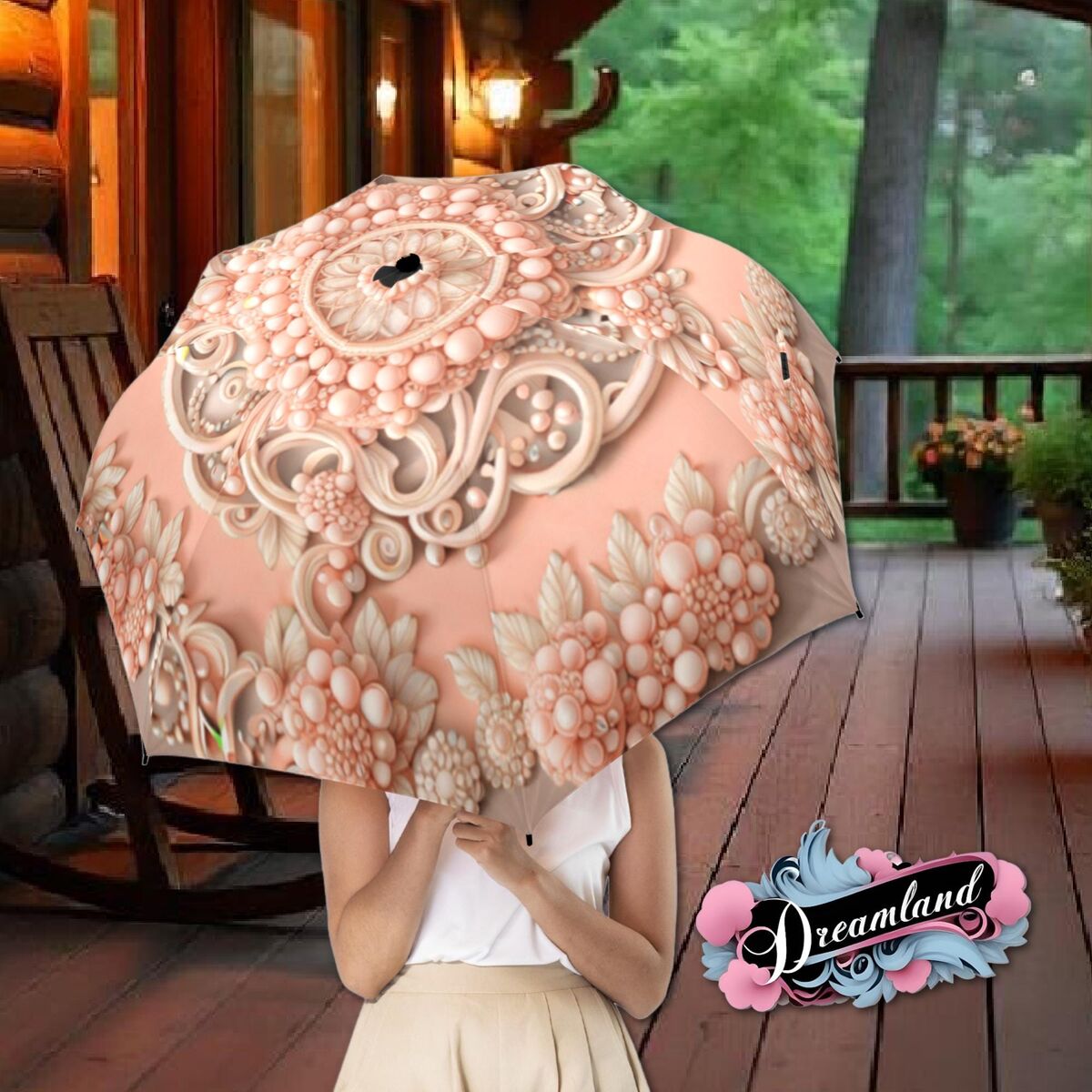 Peach Salmon Umbrella Victorian Inspired Flowers Parasol Semi-Automatic Waterproof Foldable Umbrella