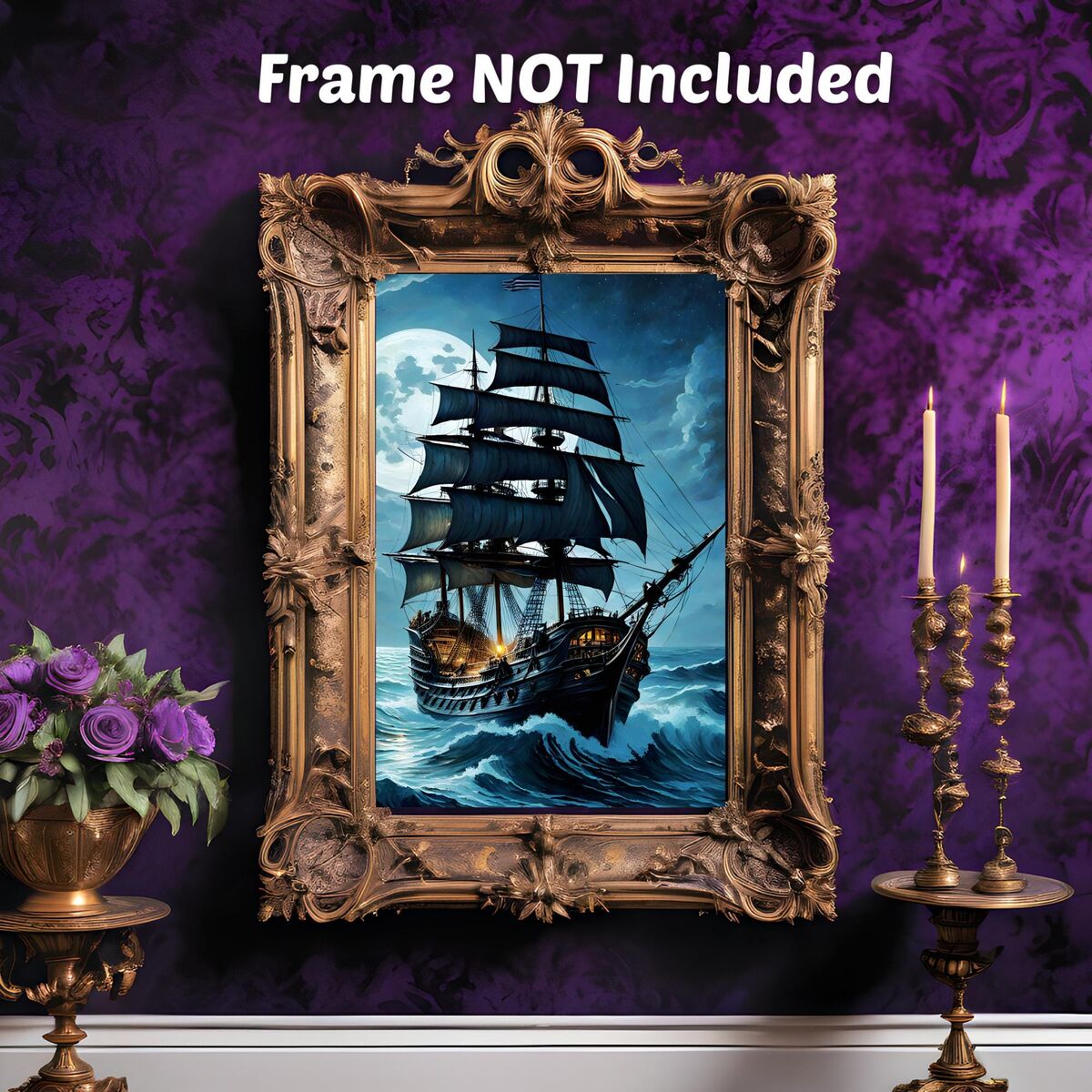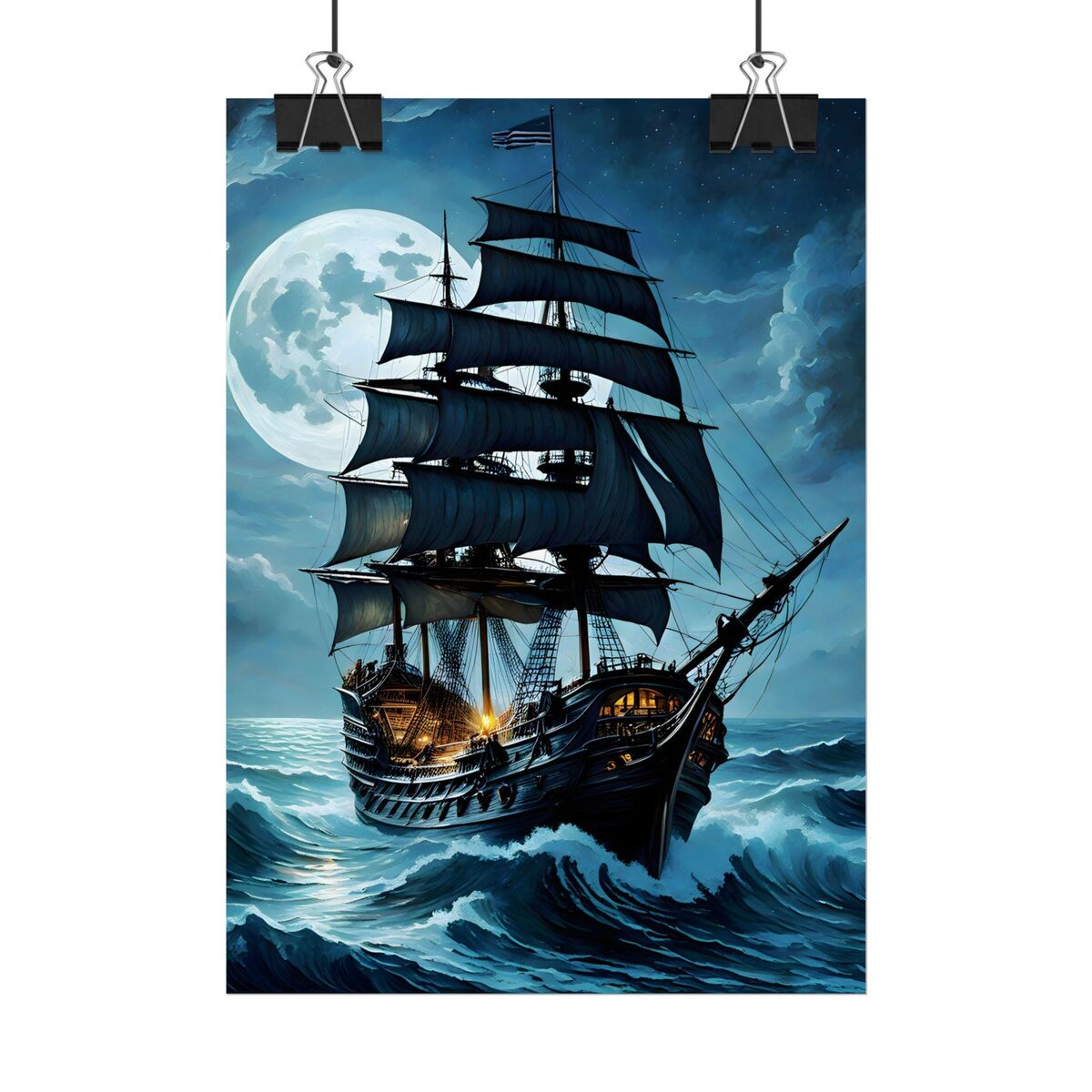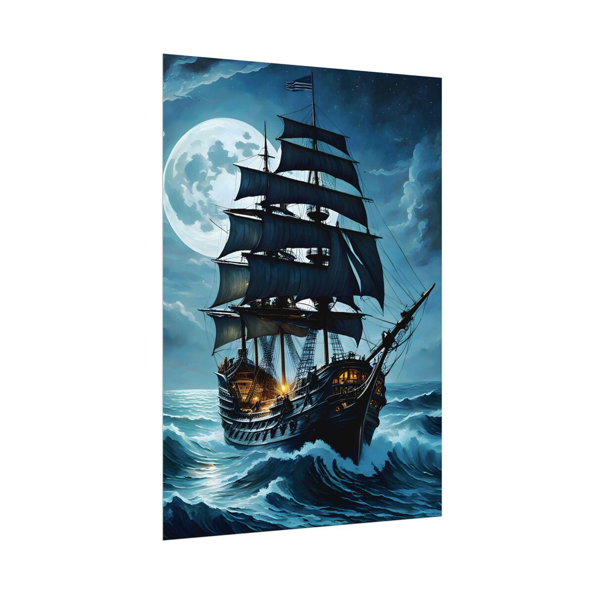 Enhance the ambiance of your living space with this captivating Pirate Ship at Sea in a storm Print. This exquisite dark academia print features a mesmerizing ship outside print, exuding an enchanting aura that will add a touch of mystique to any room. This is a print of the original painting, and is exclusive to Dreamland