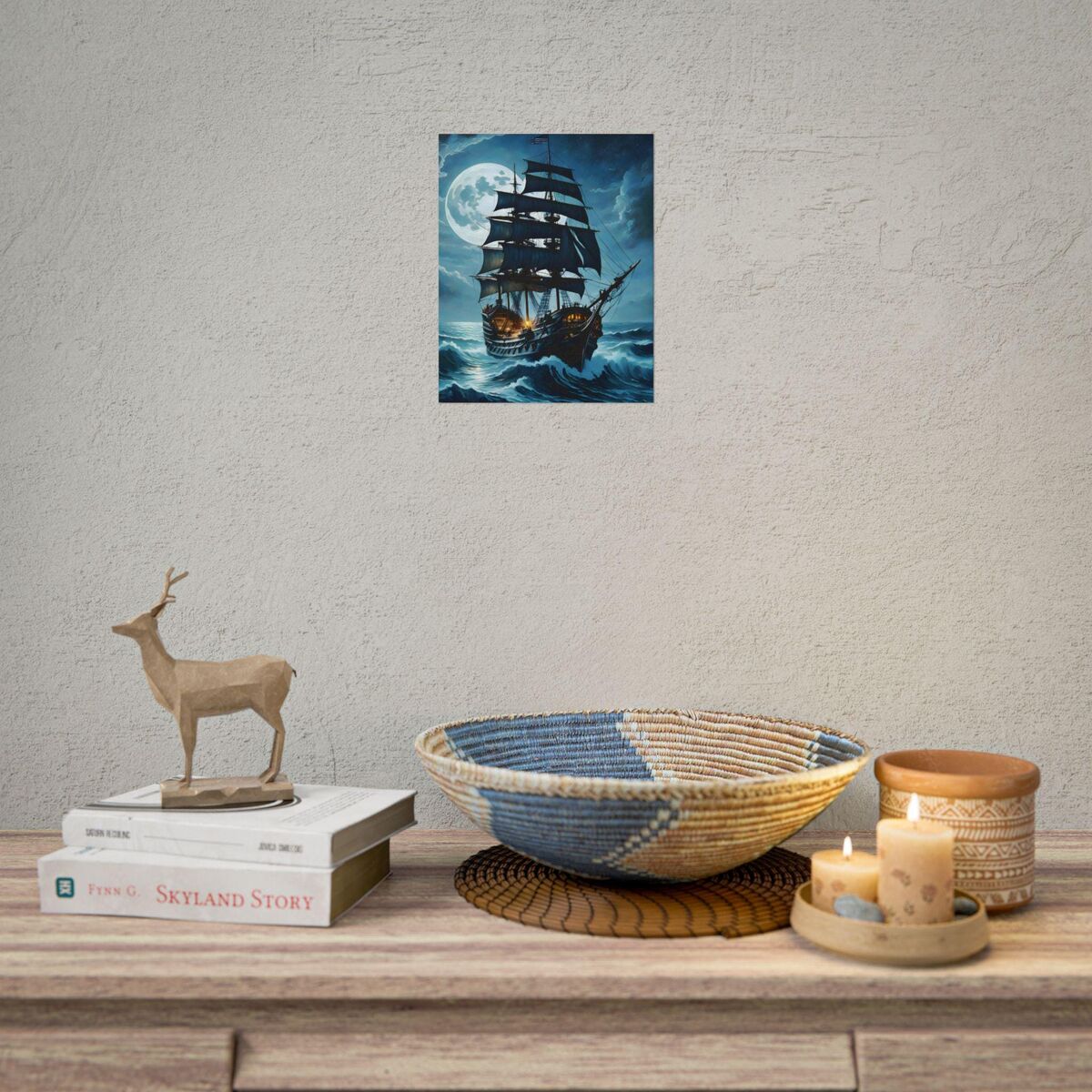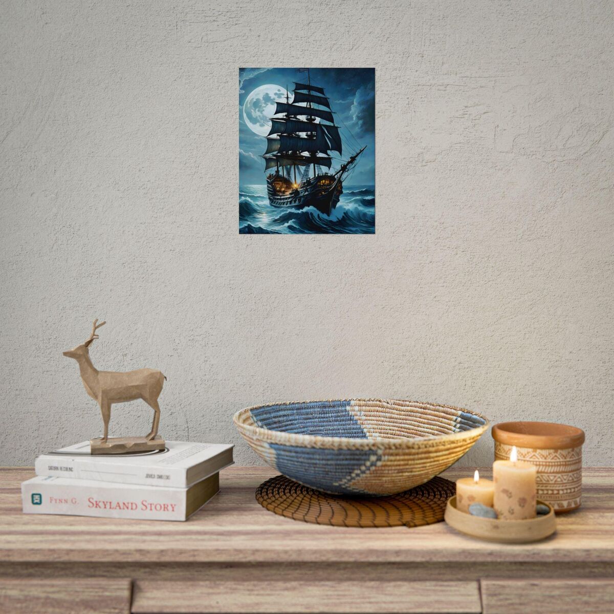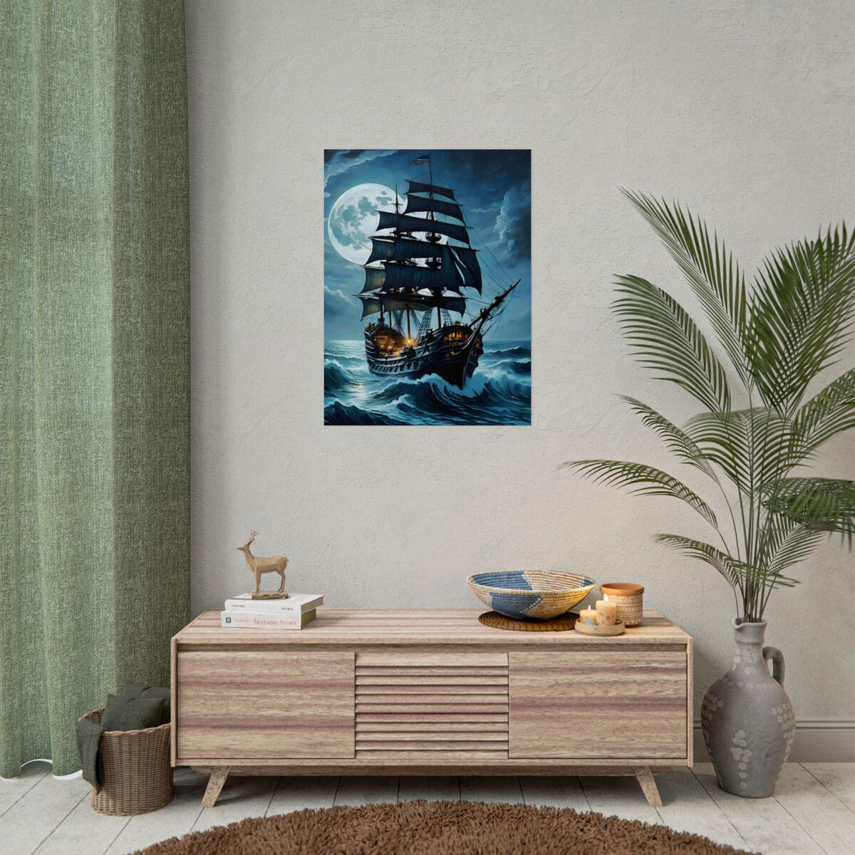 Enhance the ambiance of your living space with this captivating Pirate Ship at Sea in a storm Print. This exquisite dark academia print features a mesmerizing ship outside print, exuding an enchanting aura that will add a touch of mystique to any room. This is a print of the original painting, and is exclusive to Dreamland
