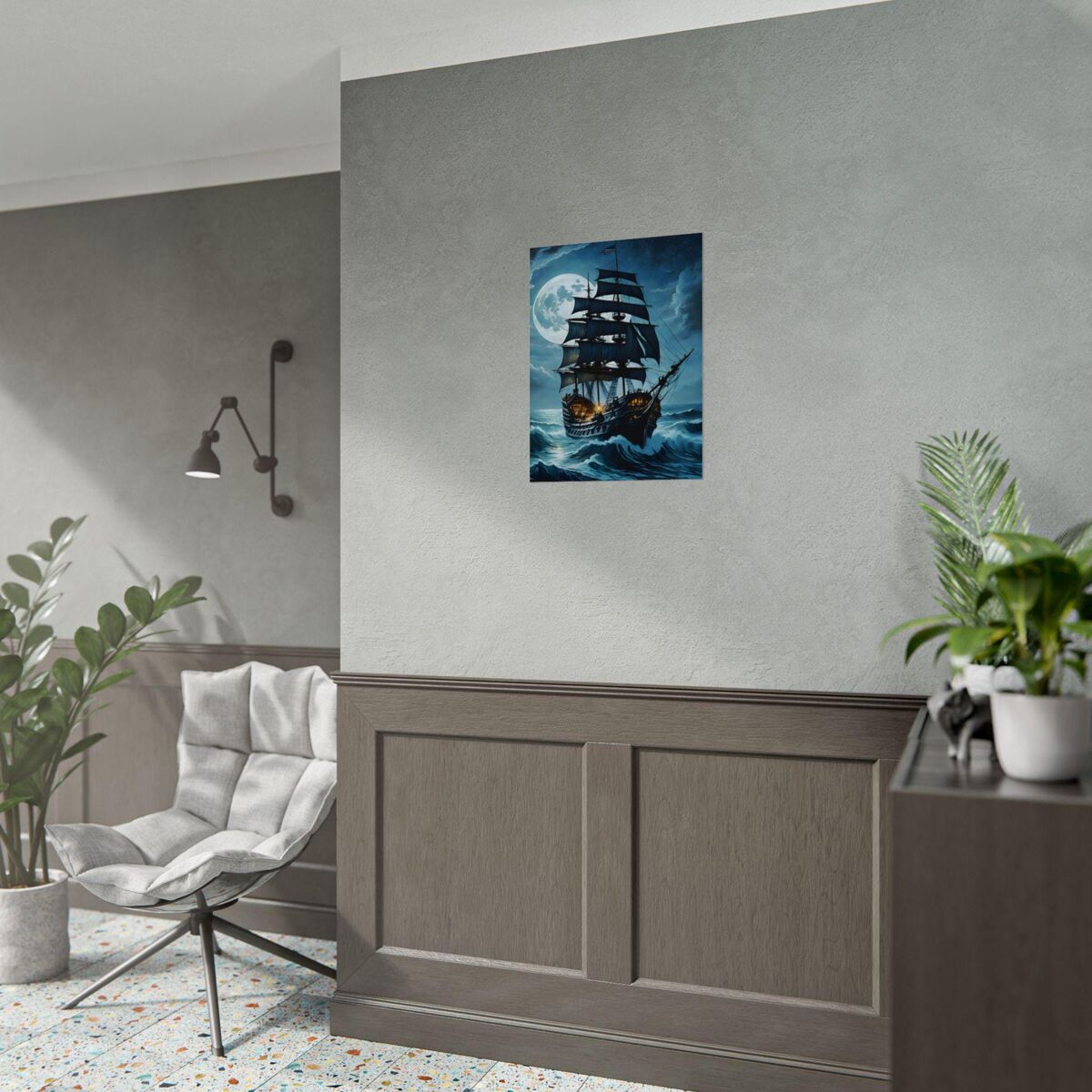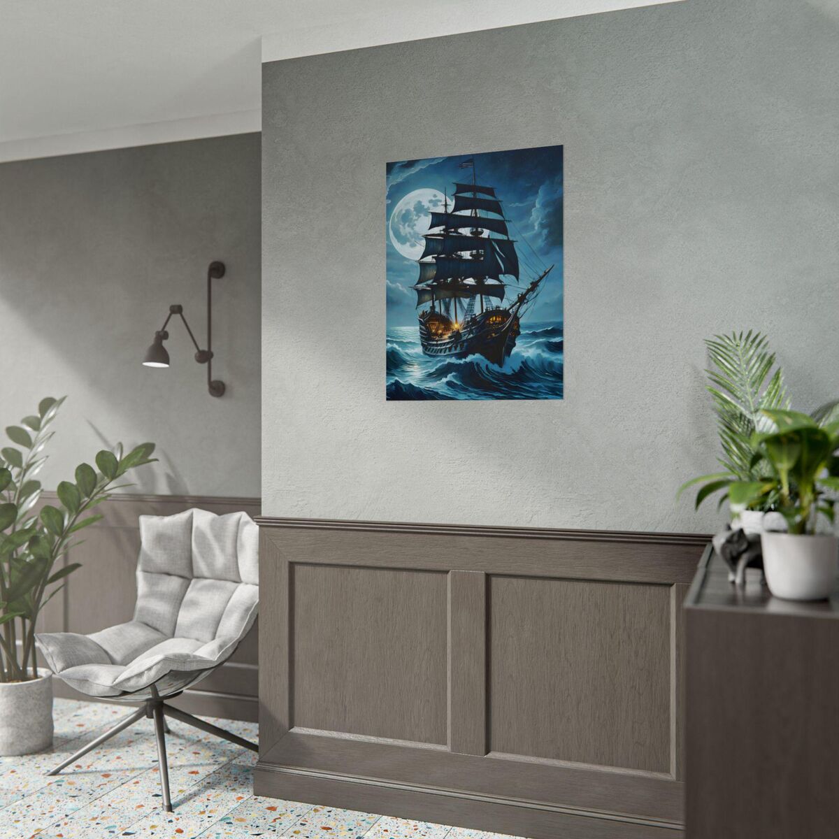 Crafted with meticulous attention to detail, this home decor piece showcases a dark and moody aesthetic, perfect for those who appreciate the allure of the sea. Elevate your interior design with this dark academia wall art and immerse yourself in the ethereal beauty the rainy night