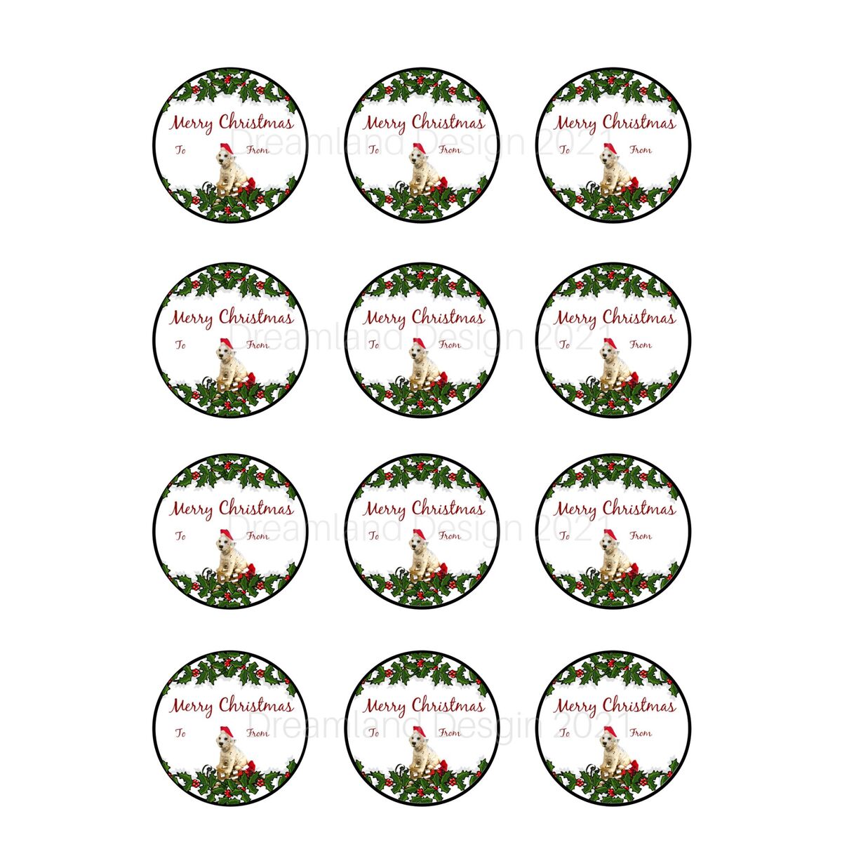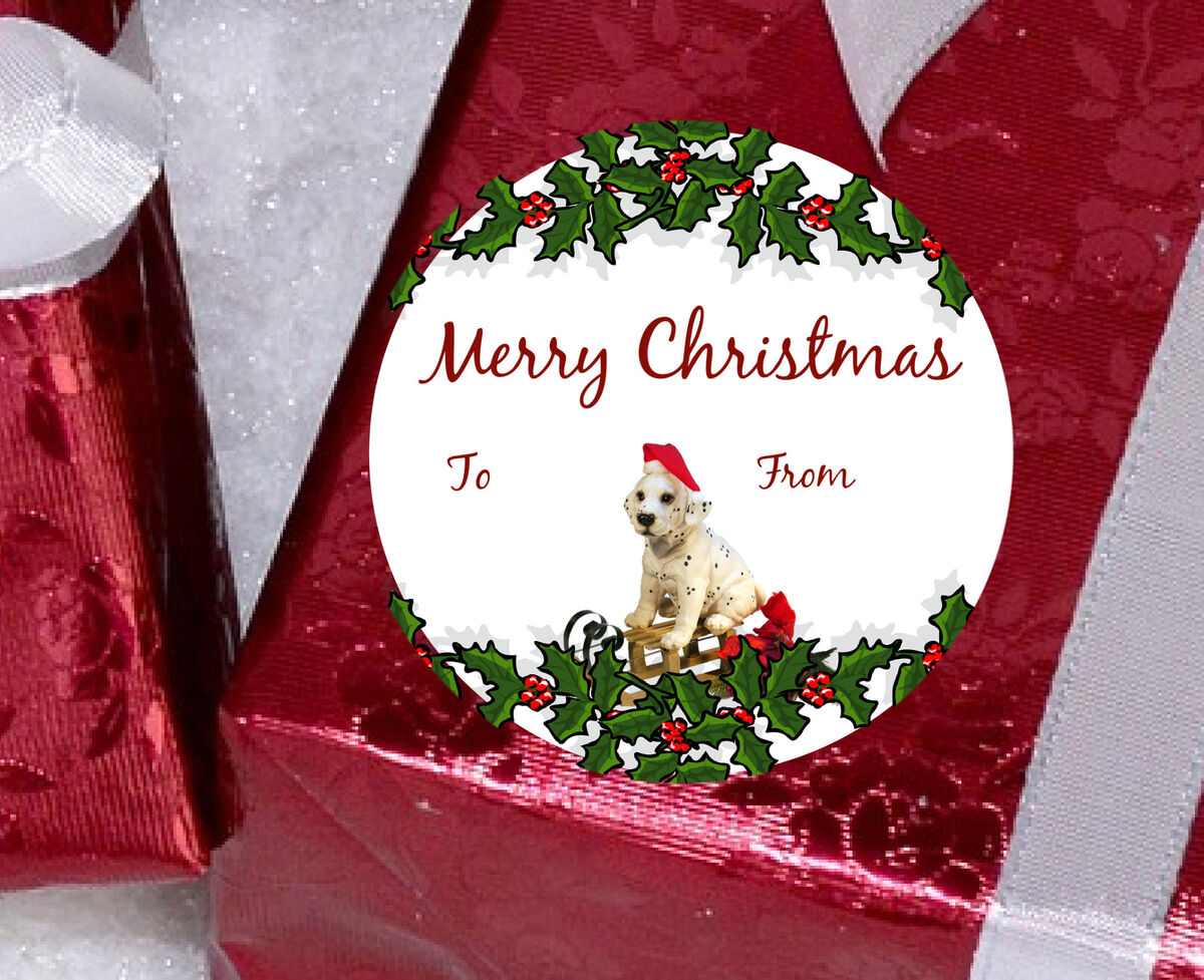 Printable Christmas Dog Puppy Sticker Gift Tag Image Digital Download 2 Inch Round Circle PNG Clip Art