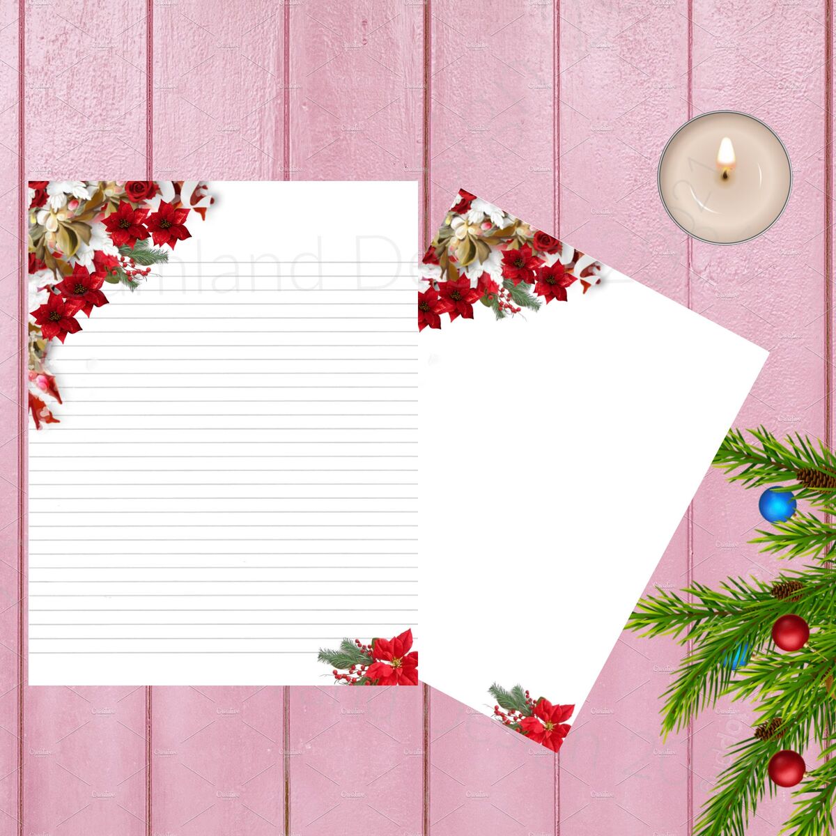 Printable Stationary Christmas Blank Digital Writing Paper Red White Holiday Floral Lined Note Book Flower Watercolor Roses Paper