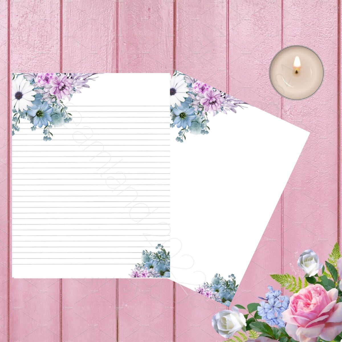 Printable floral Stationary Blank Digital Writing Paper Lined Flower Watercolor Roses Paper This is a perfect stationary for journals notebooks and crafting, the download includes two sheet one with lines and one without. Print as many as you need.