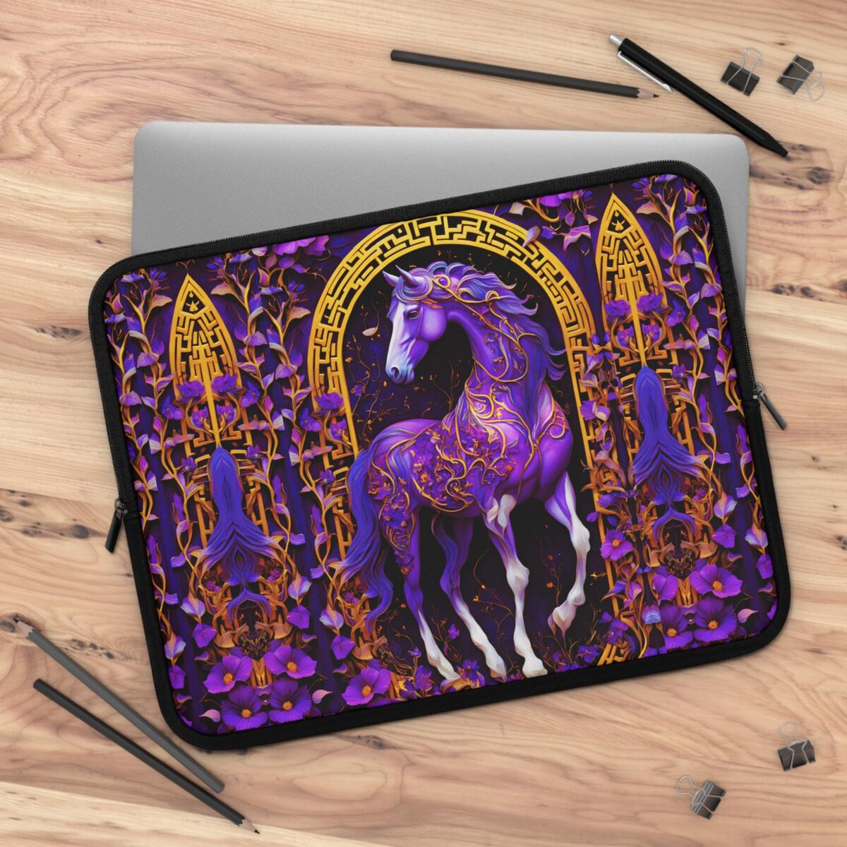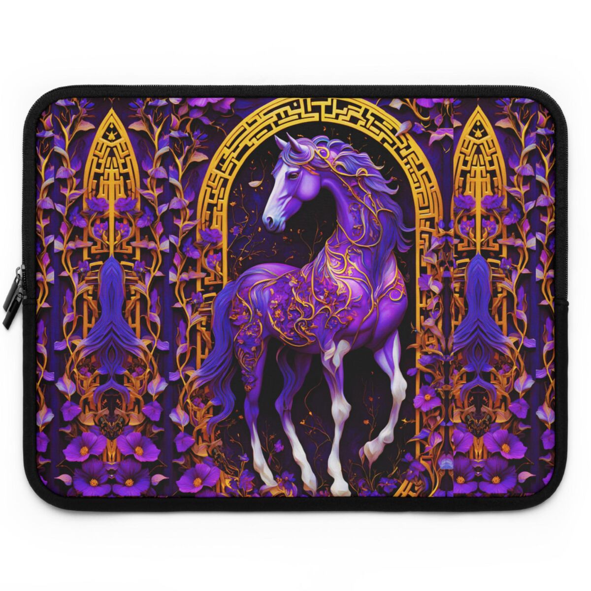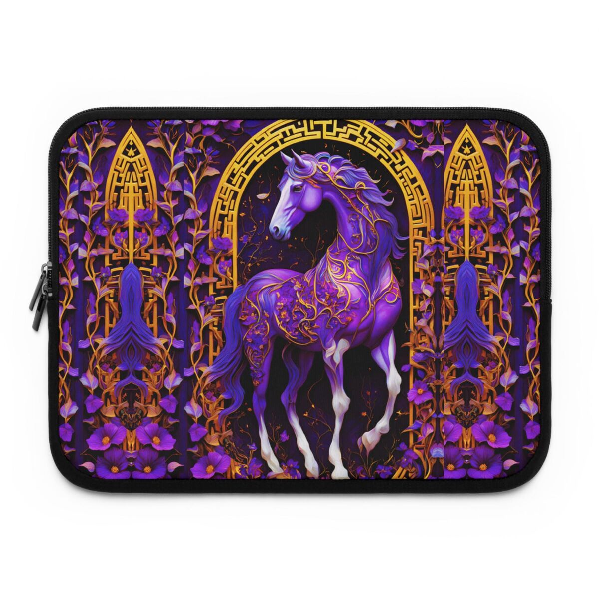 Purple Horse Blue Retro Flowers Faux Embroidered Forestcore Sleeve 13 15 17 Inches Ipad Air Macbook