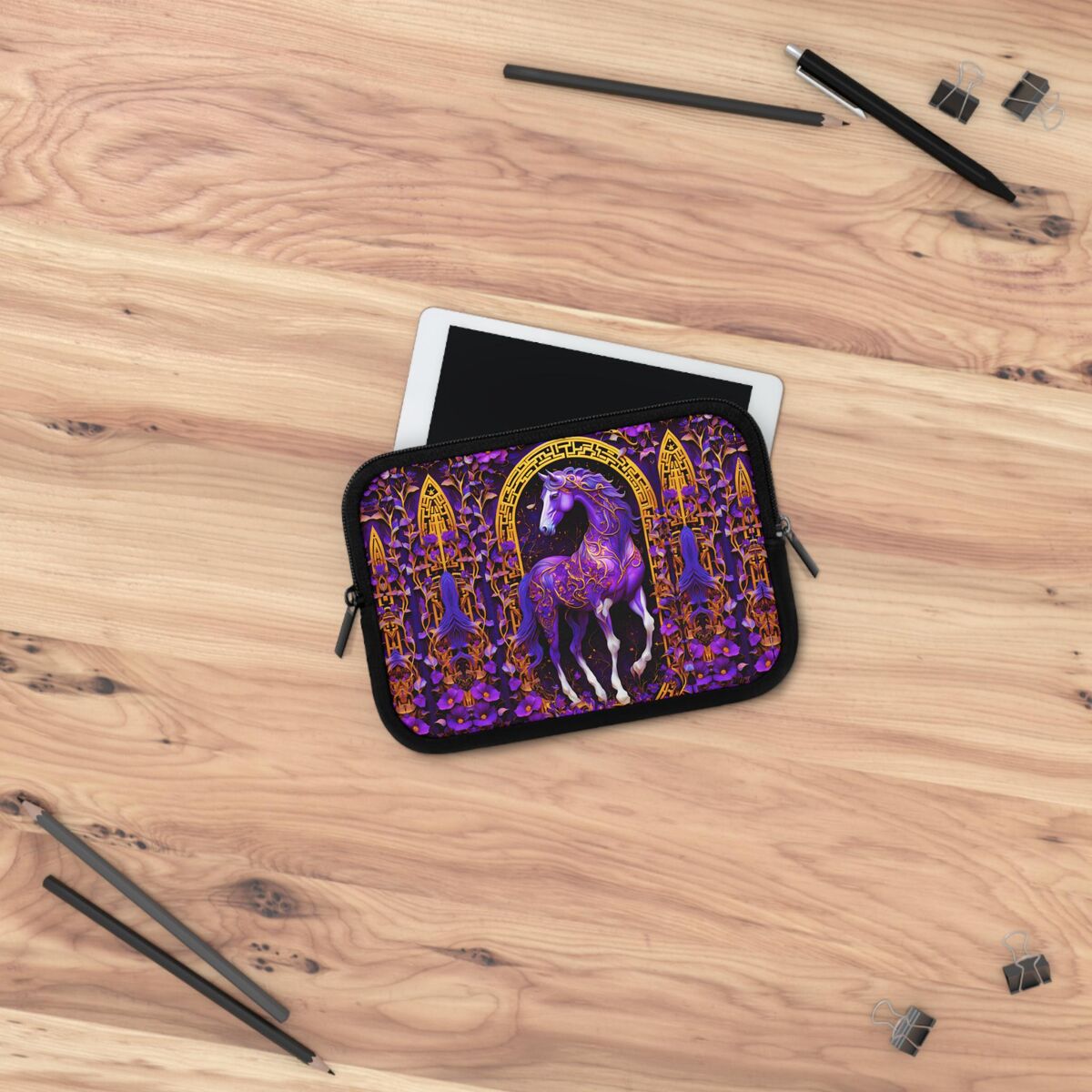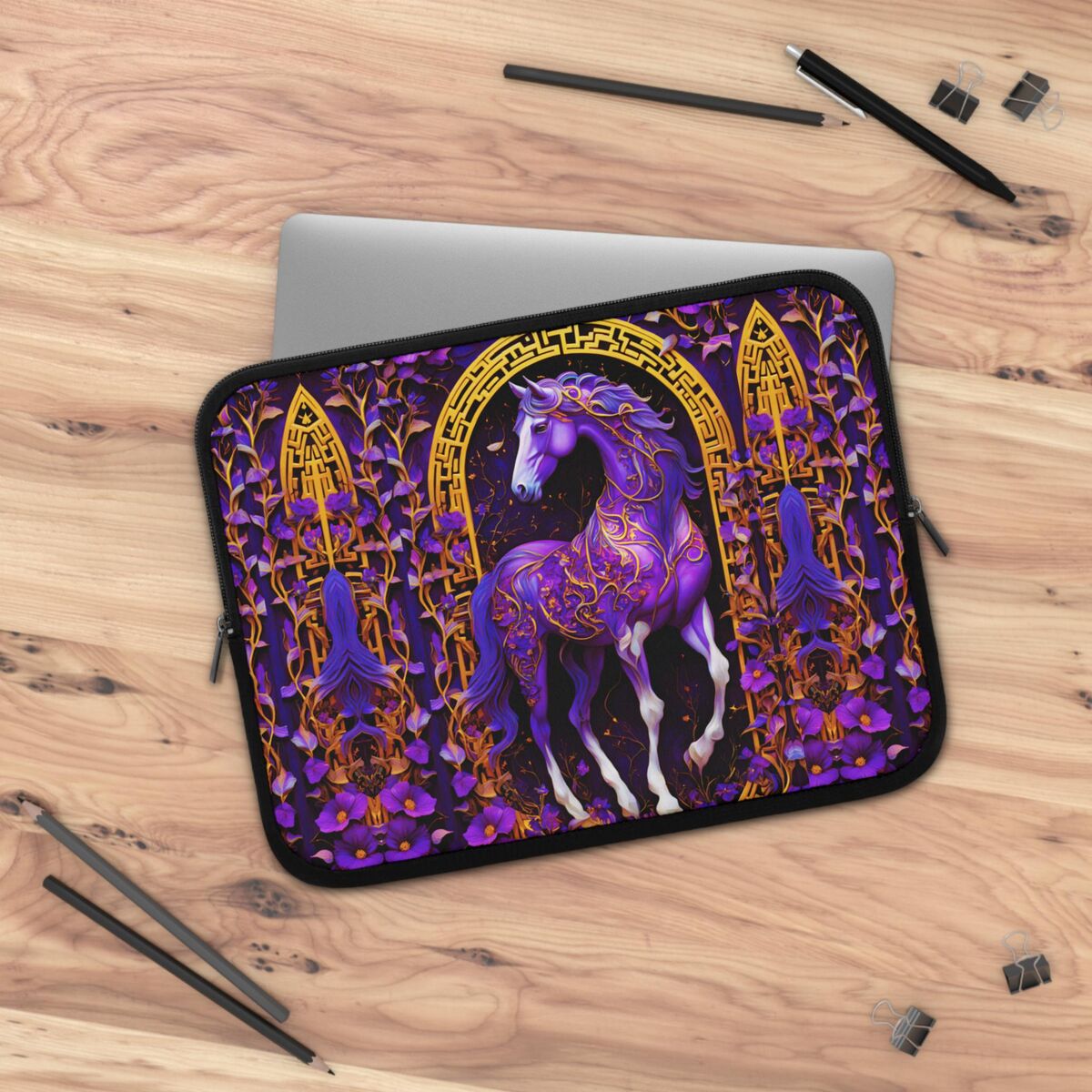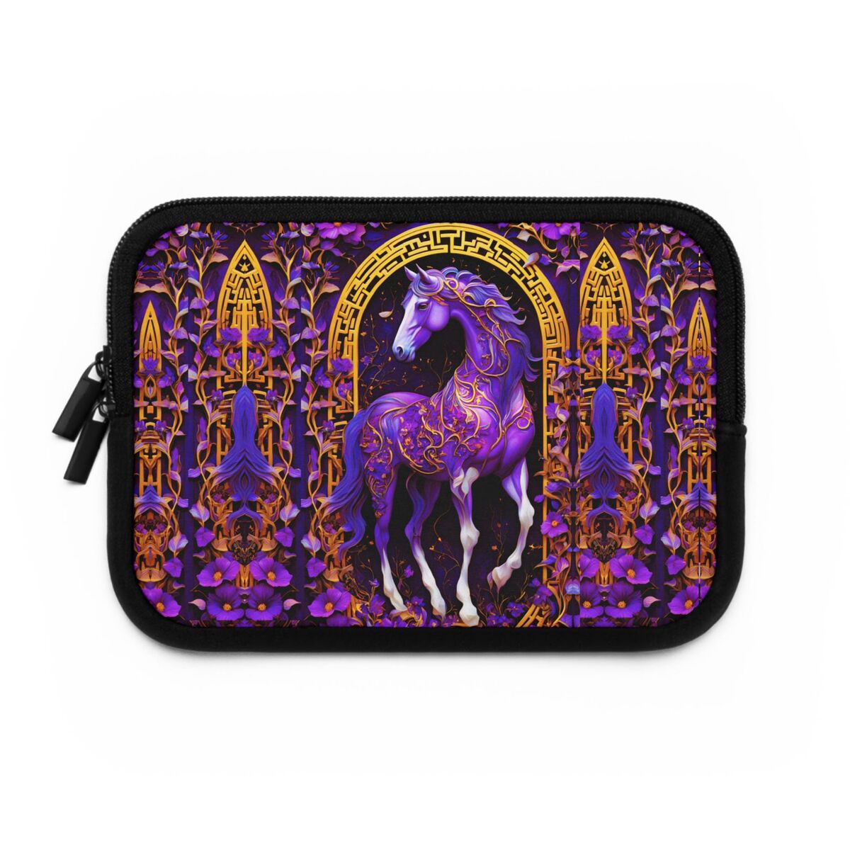 Purple Horse Blue Retro Flowers Faux Embroidered Forestcore Sleeve 13 15 17 Inches Ipad Air Macbook