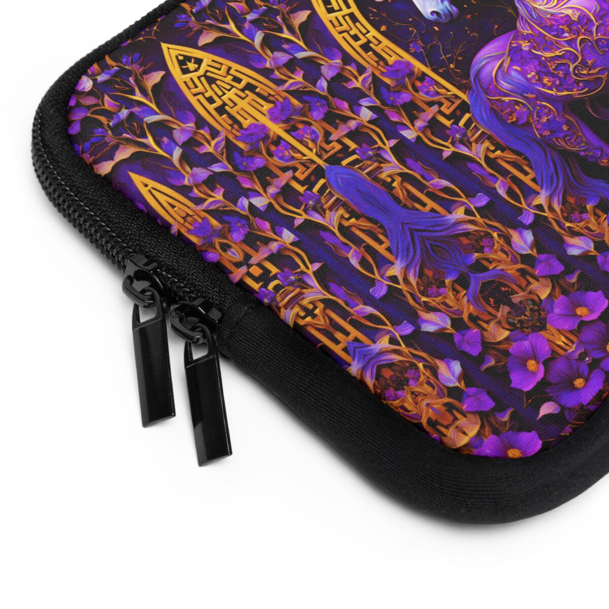 Purple Peacock Laptop Case Sleeve Art Nouveau Moon Retro Flowers Faux Embroidered Forestcore 13 15 17 Inches Ipad Air Macbook