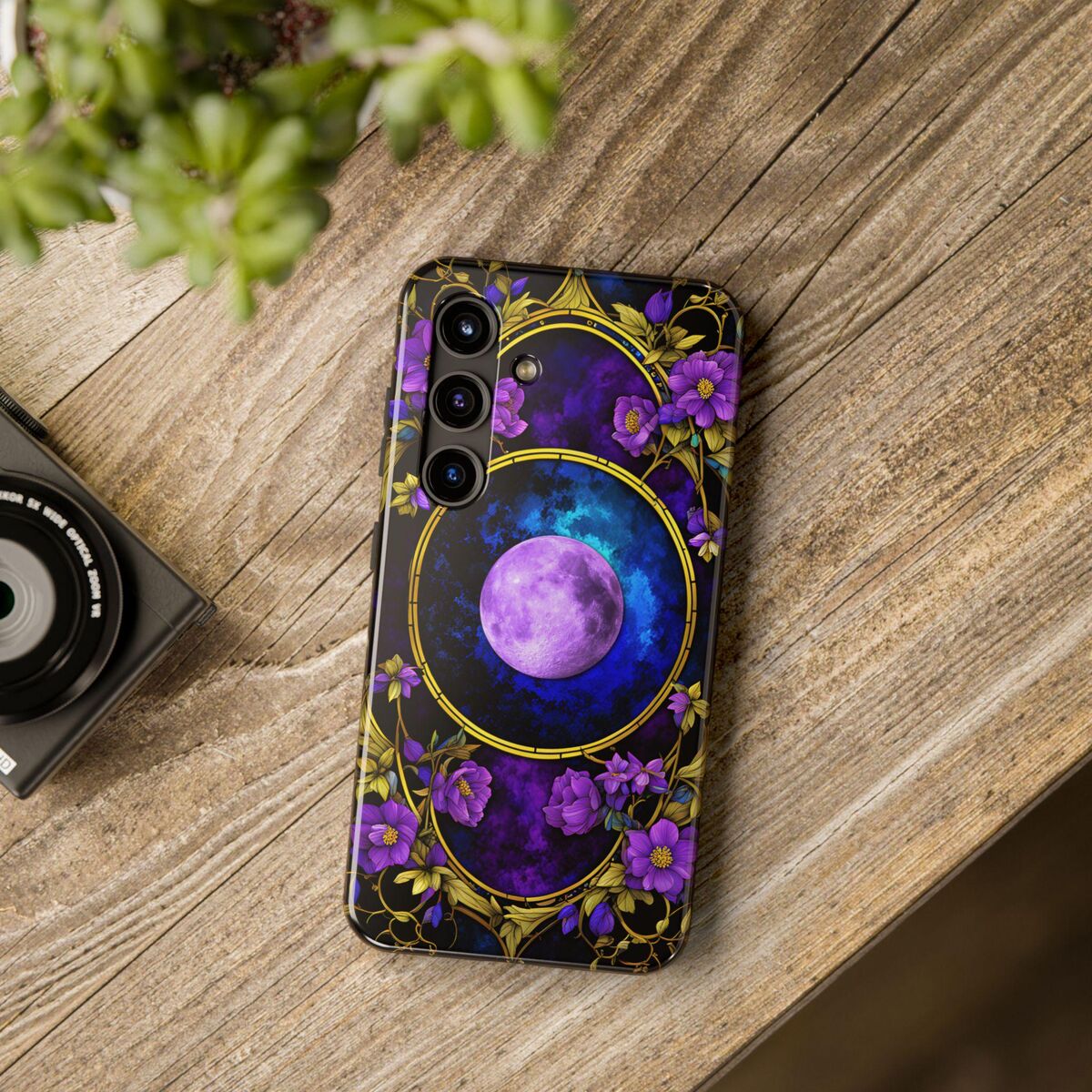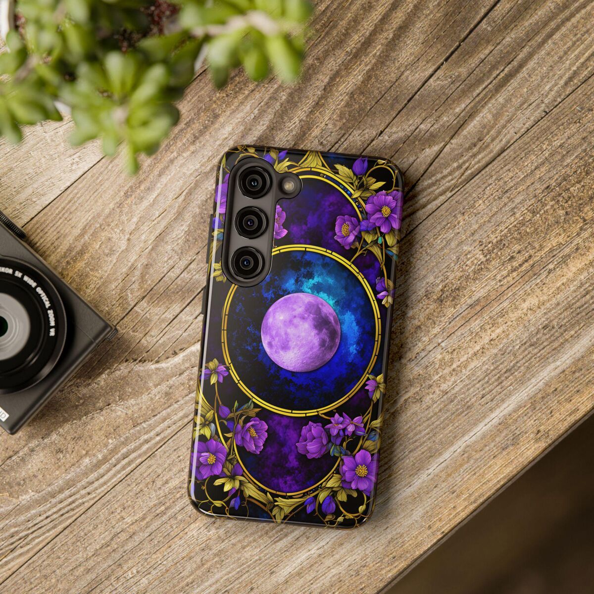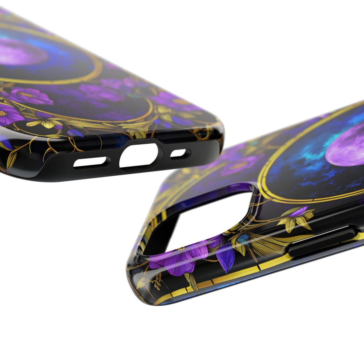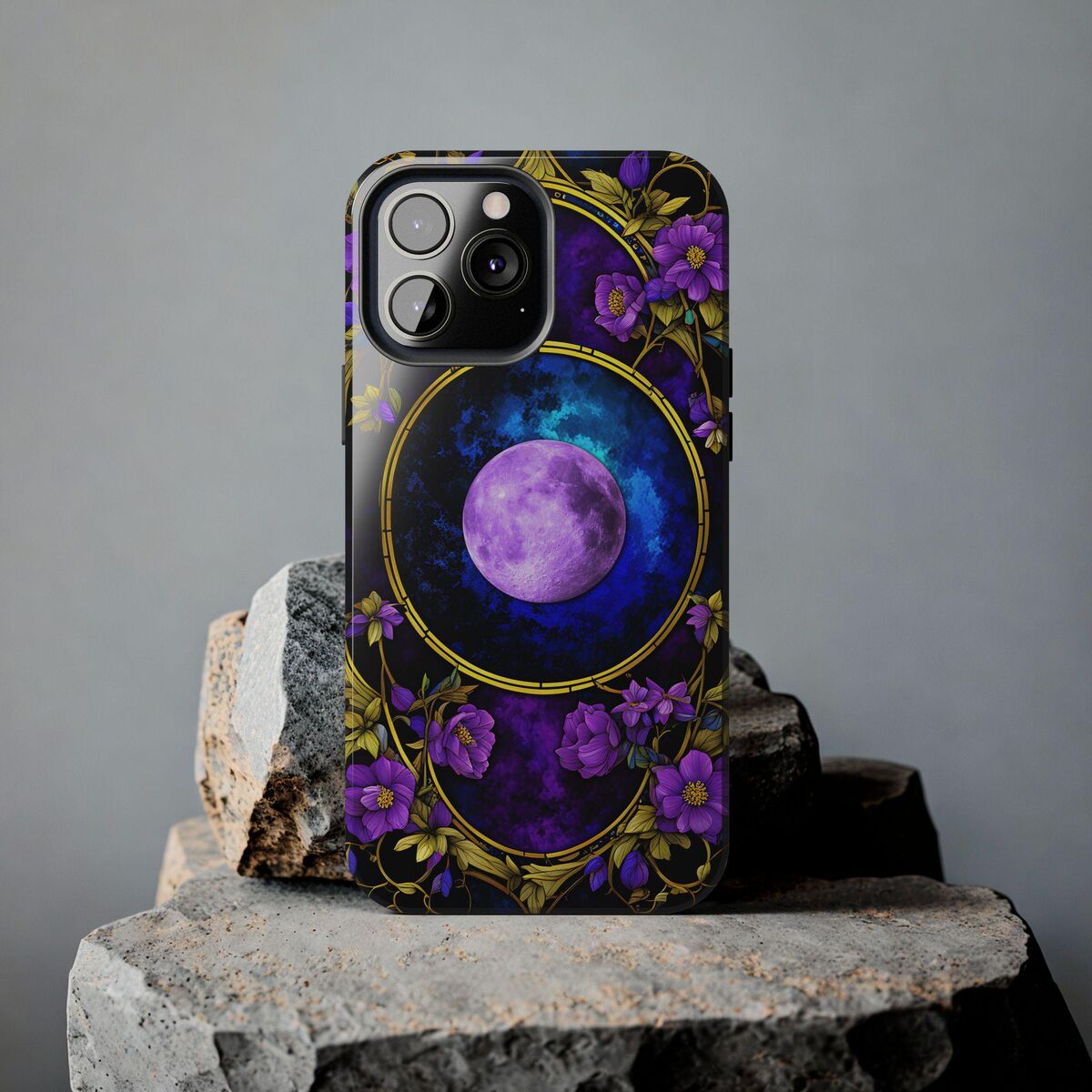 Purple Moon Celestial Stained Glass Tough Phone Case iPhone iPhone 13 14 15 Samsung Cases Faux Velvet Witchy Design