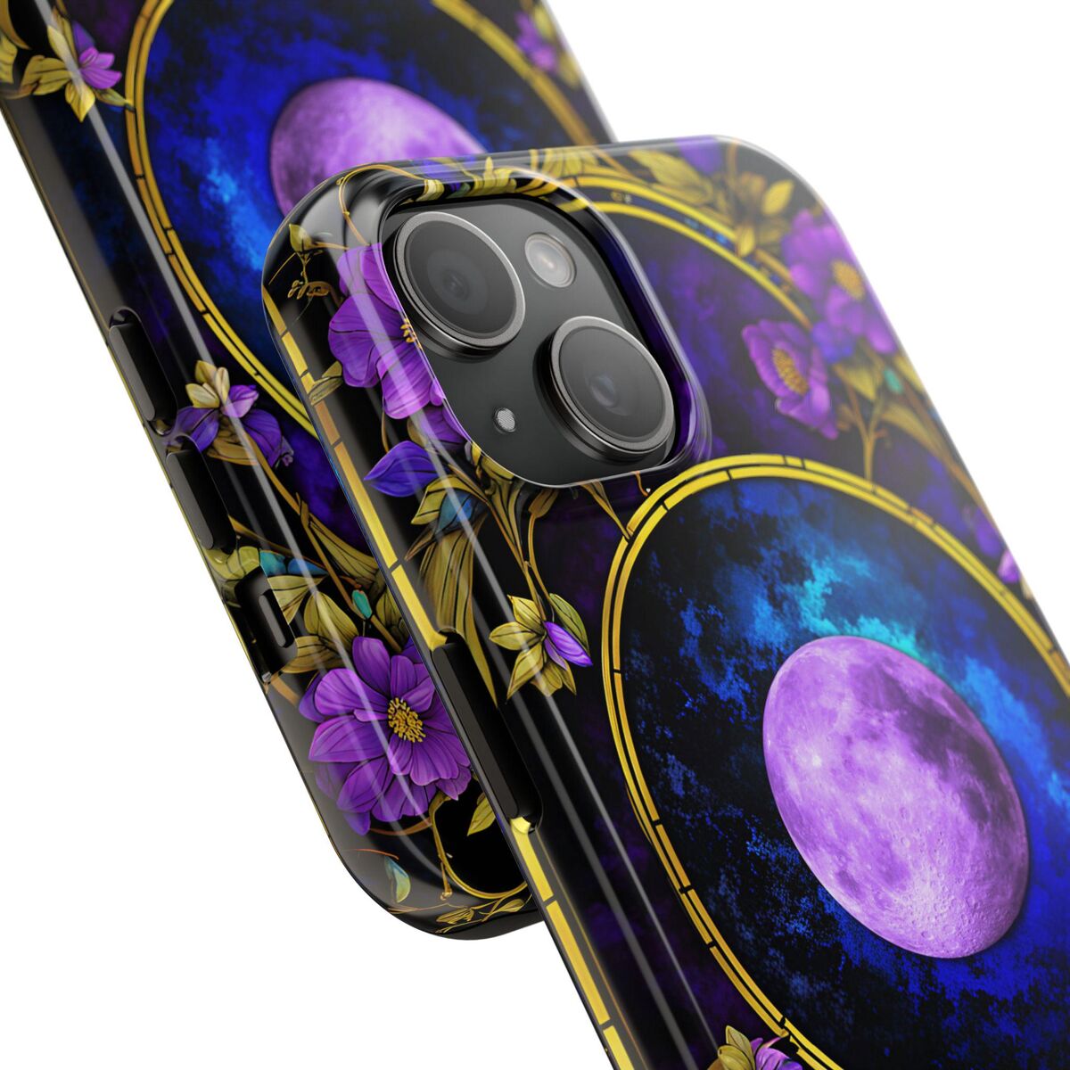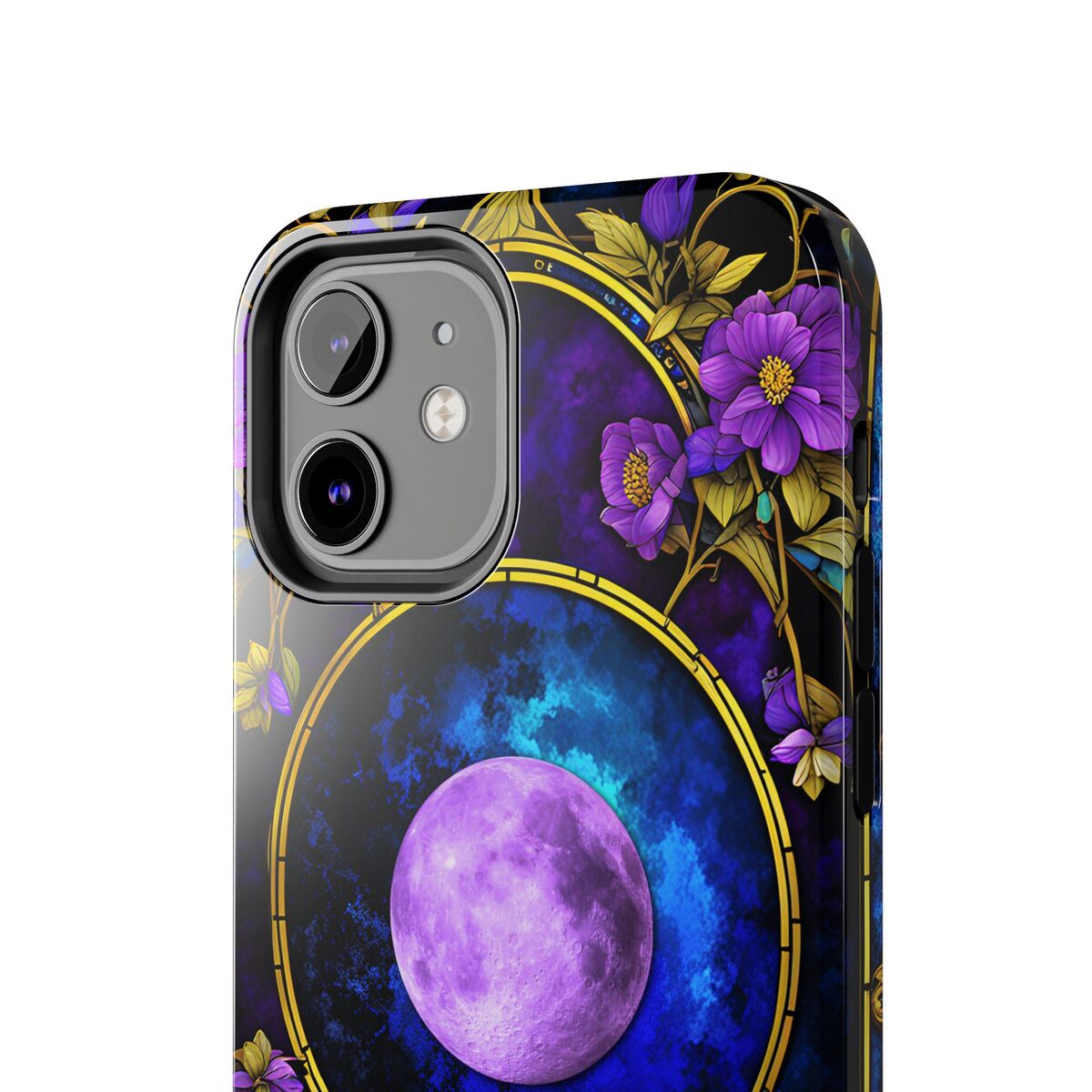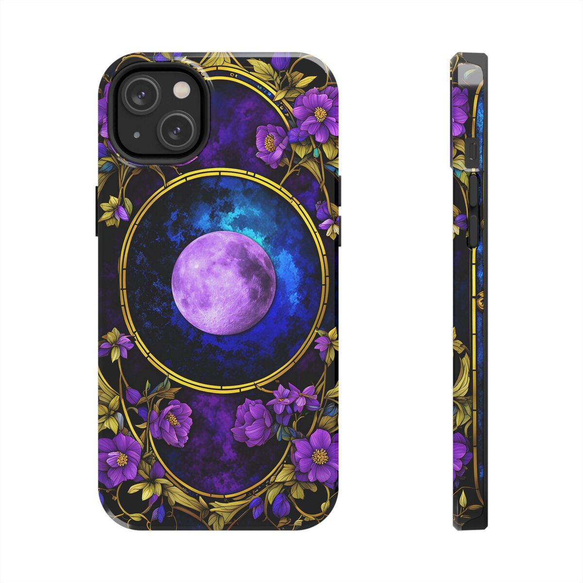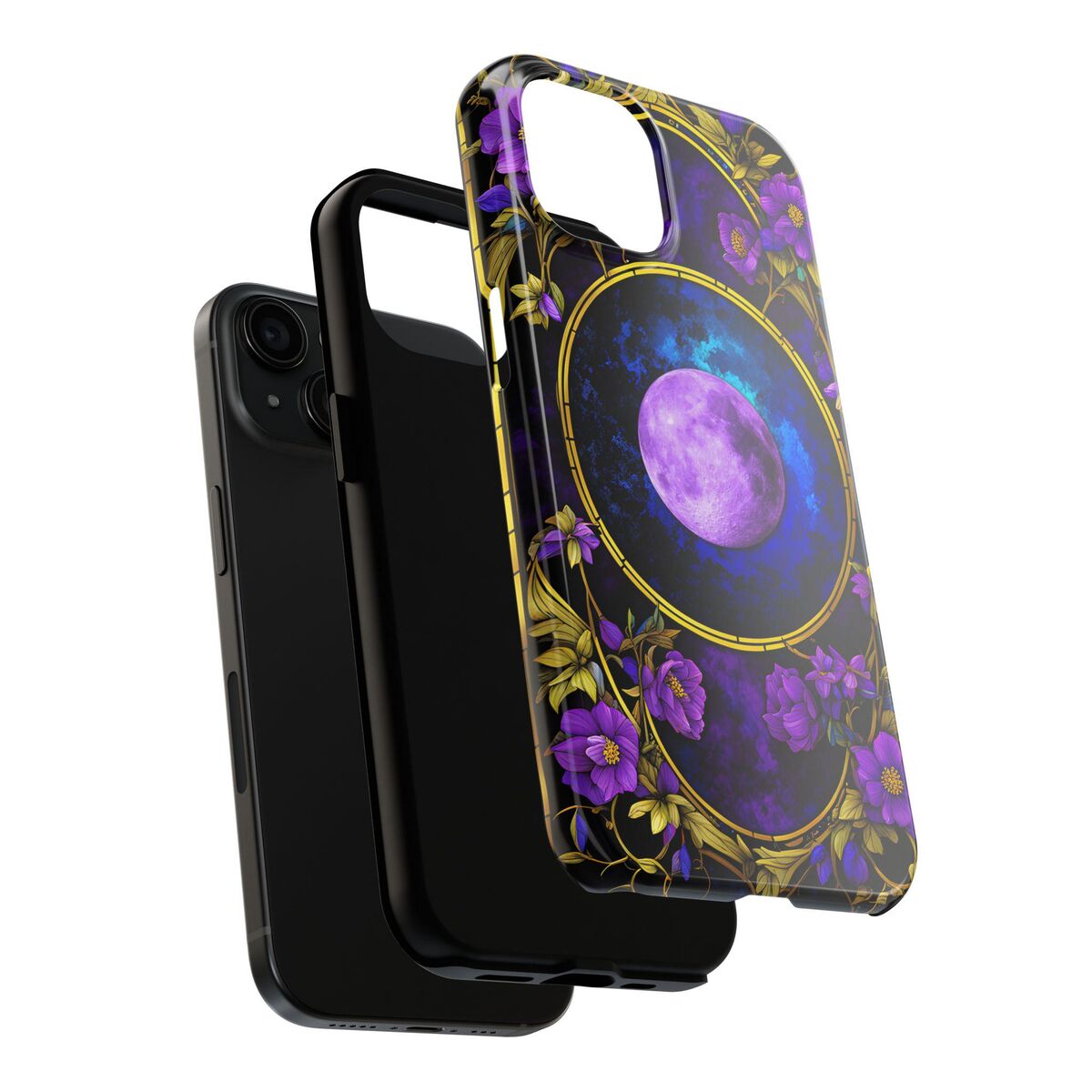 Purple Moon Celestial Stained Glass Tough Phone Case iPhone iPhone 13 14 15 Samsung Cases Faux Velvet Witchy Design