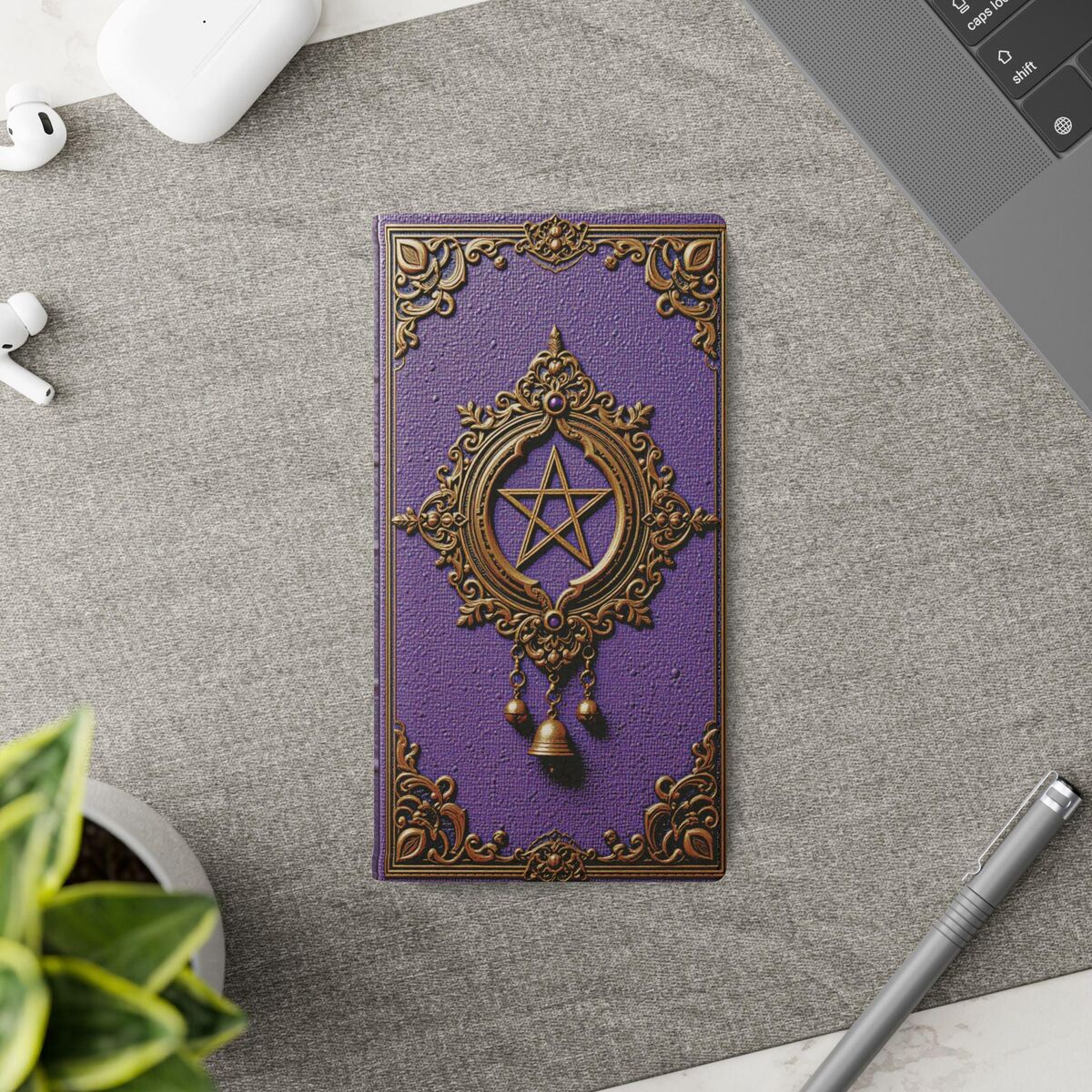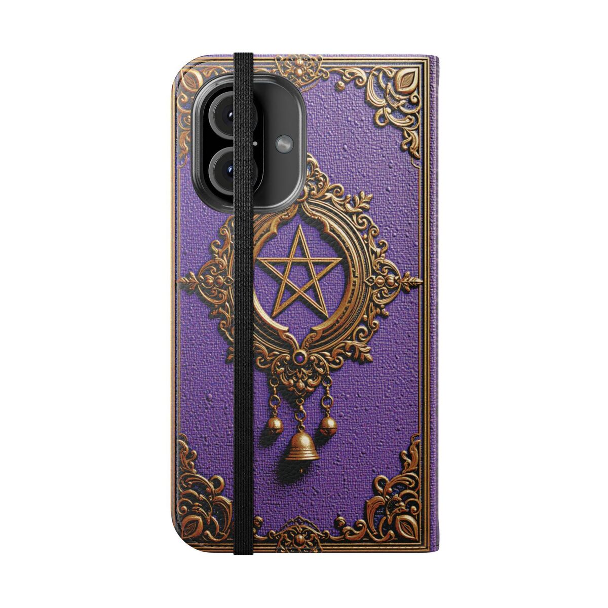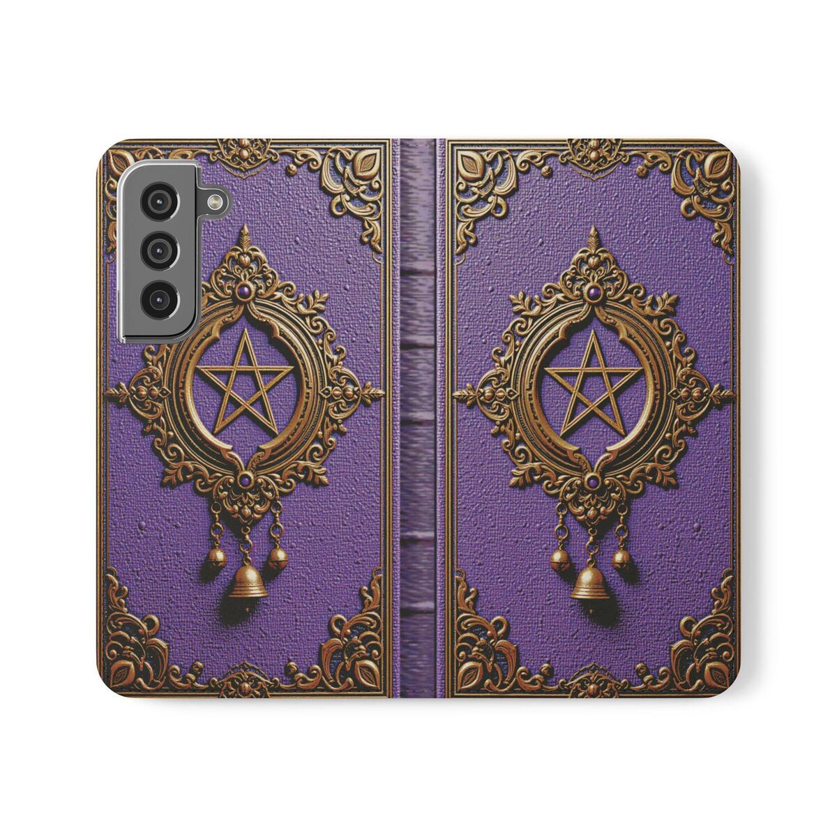 Purple Wicca Book Phone Case Wallet Witchy Moon Pegan Dark Academia Flip Case Card Case Fits iphone 16 15 14 Galaxy S25 And More