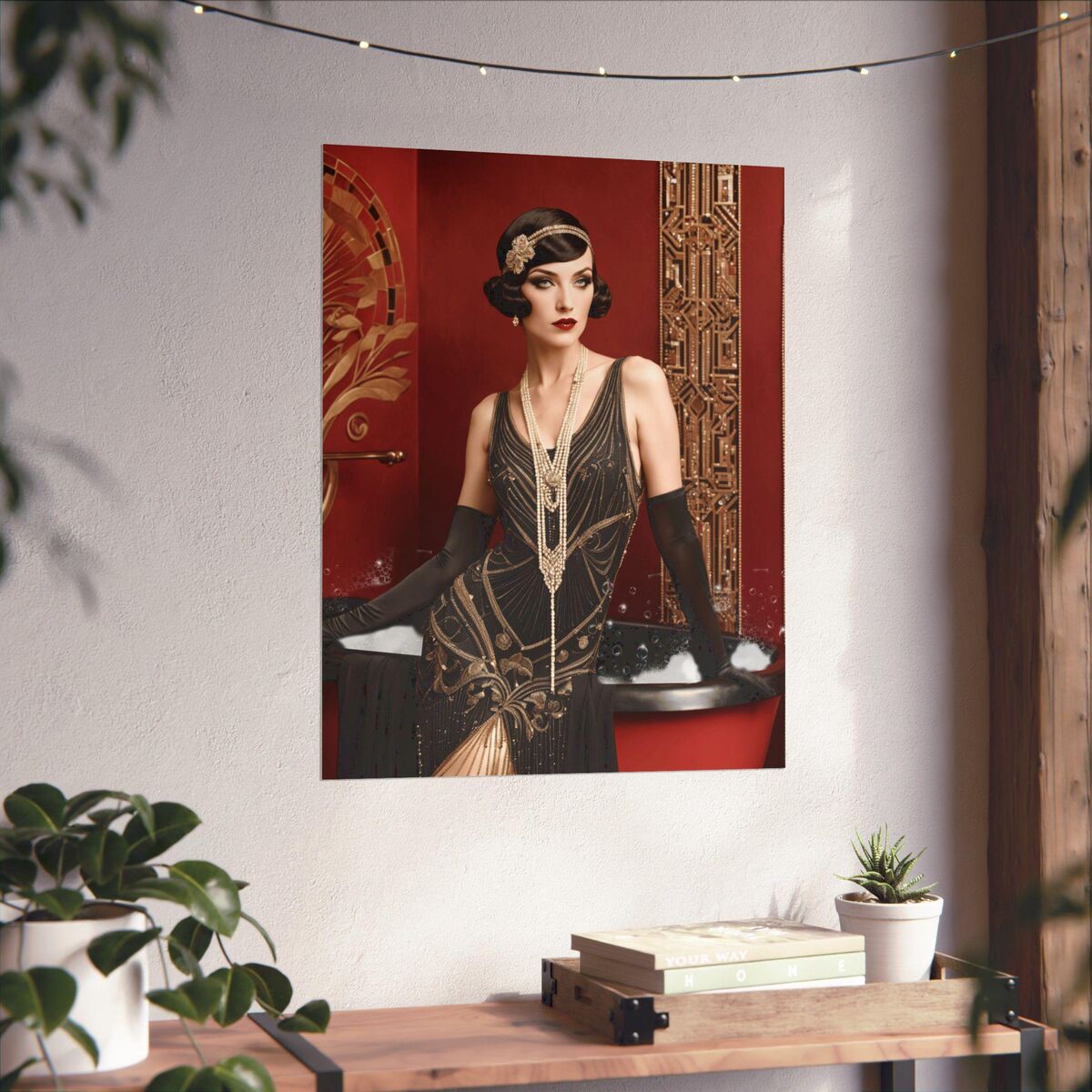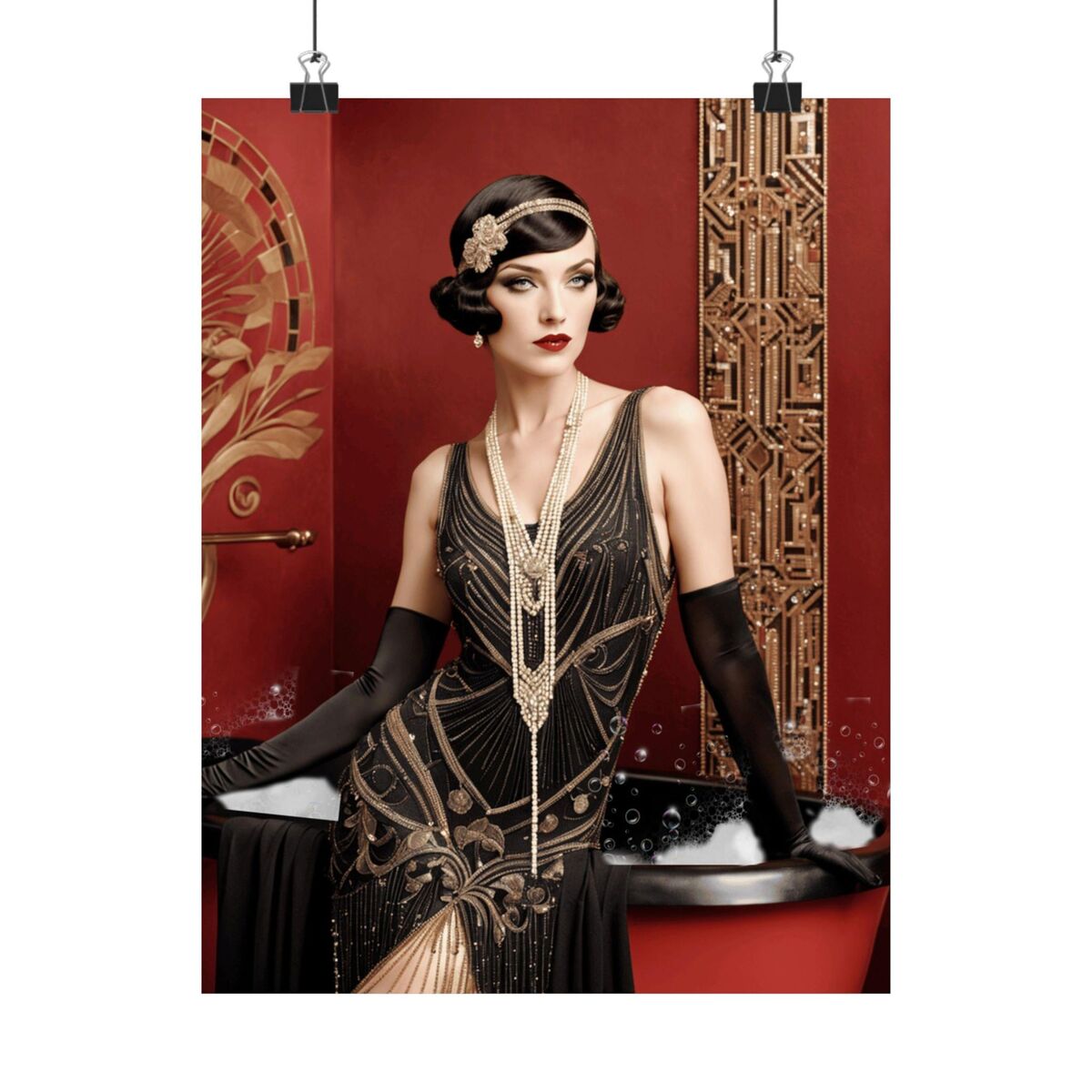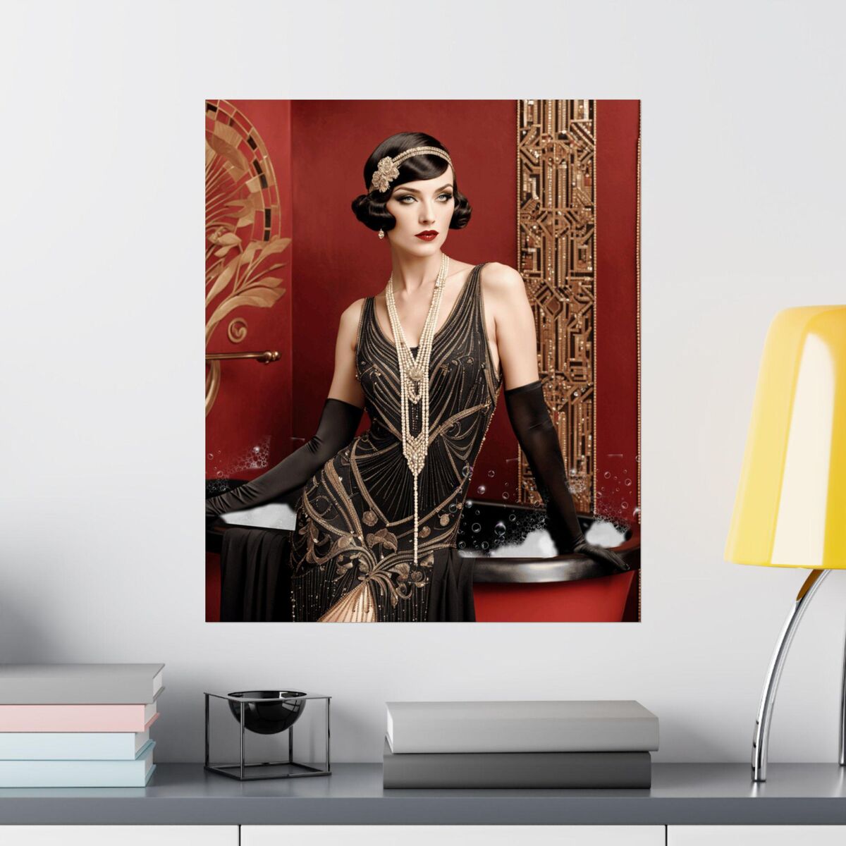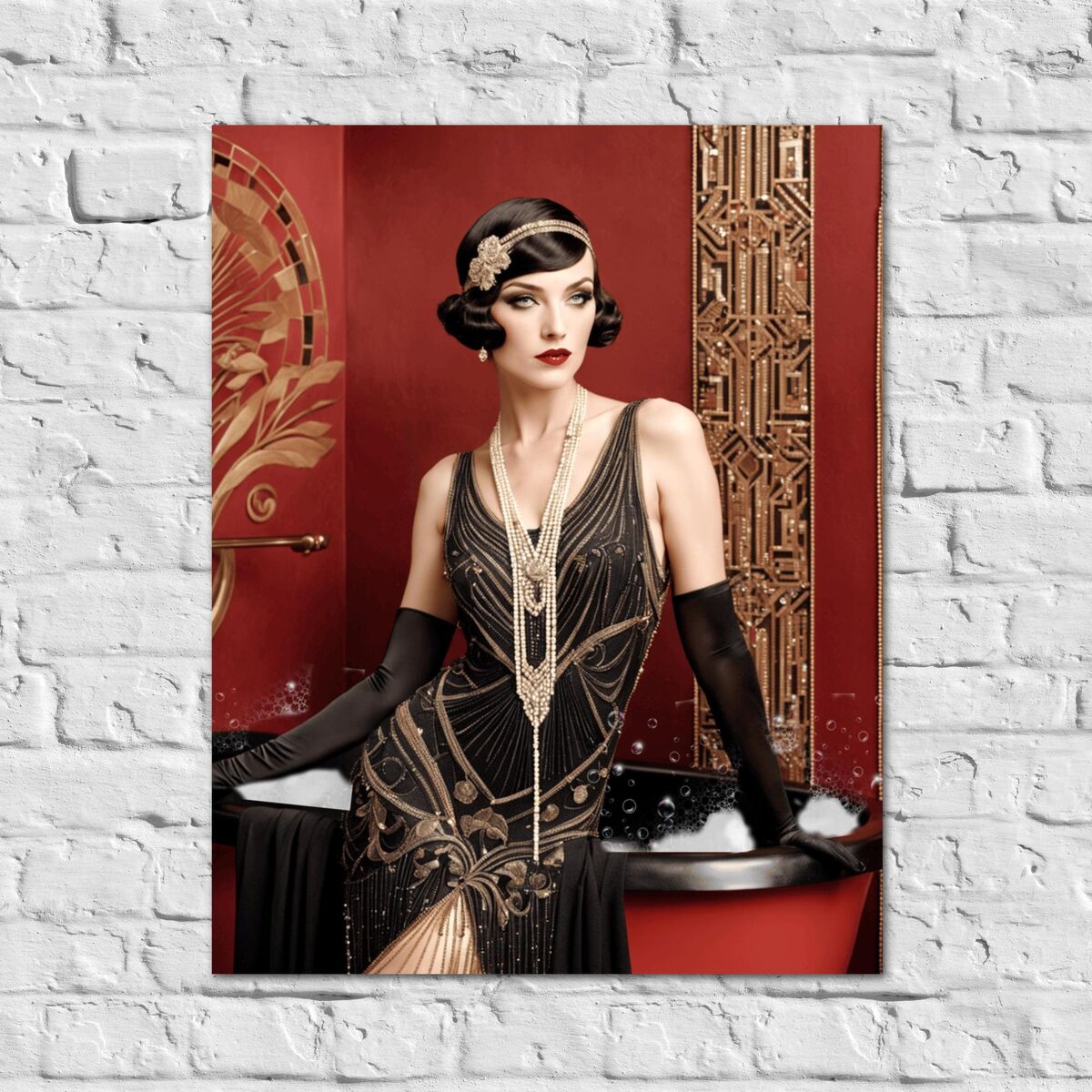 Red Gold Art Deco Gatsby Girl 1920 Style Powder Room Bathroom Poster Print Wall Art Retro Home Decor