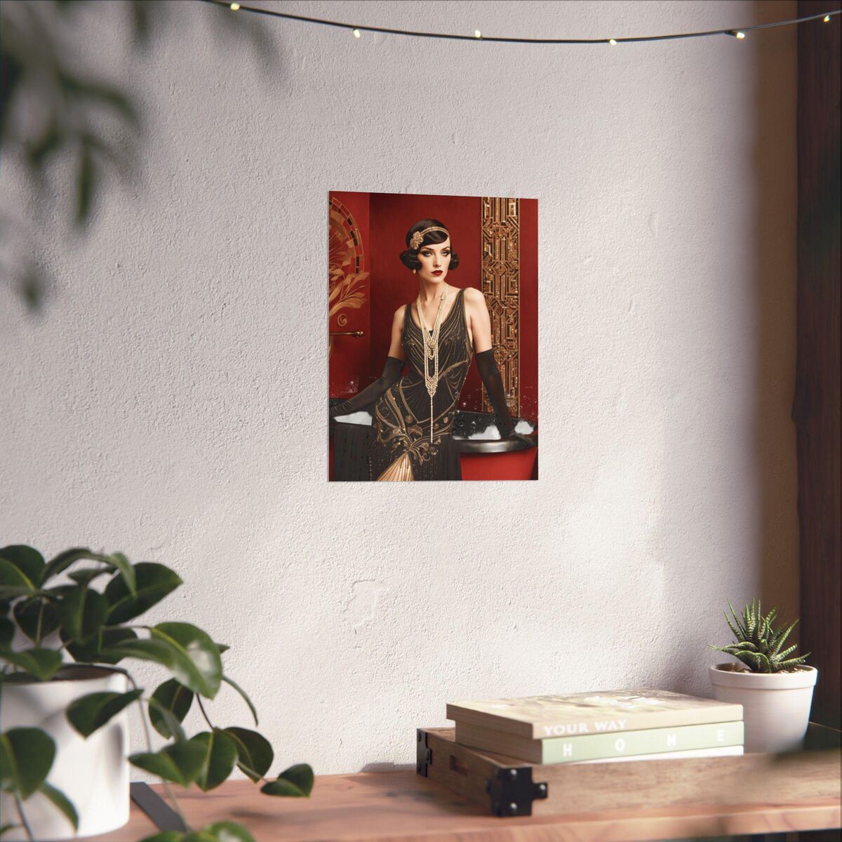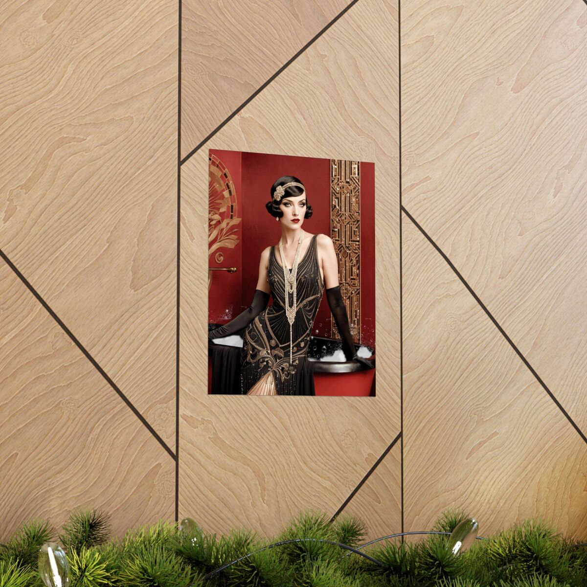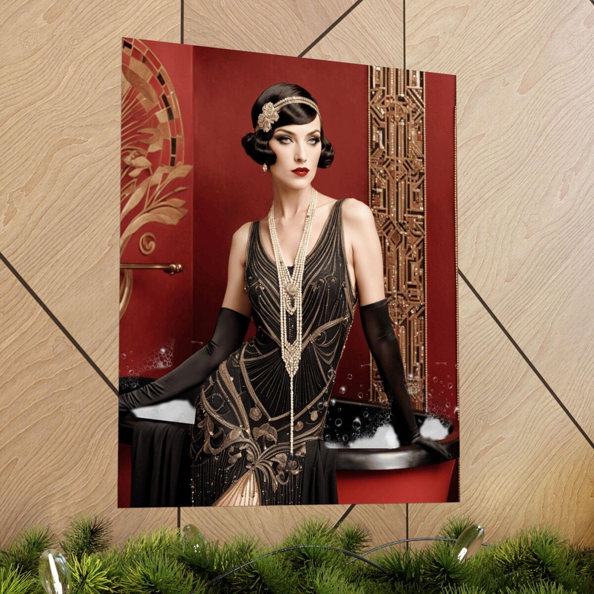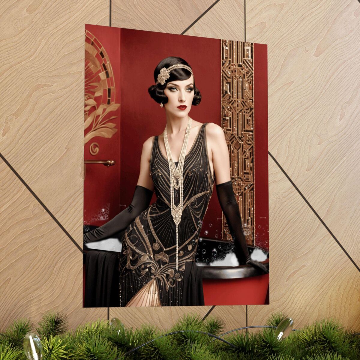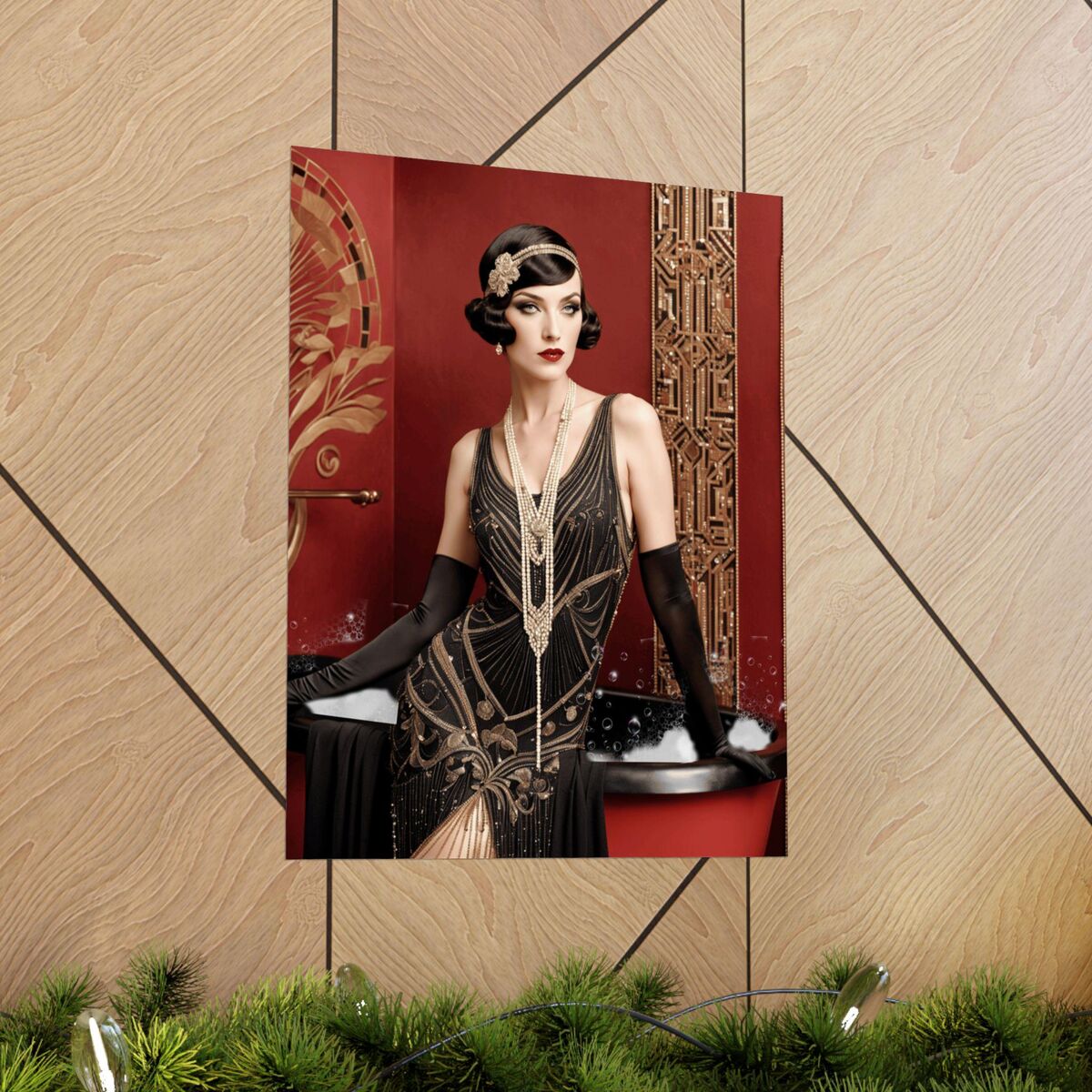 Red Gold Art Deco Gatsby Girl 1920 Style Powder Room Bathroom Poster Print Wall Art Retro Home Decor