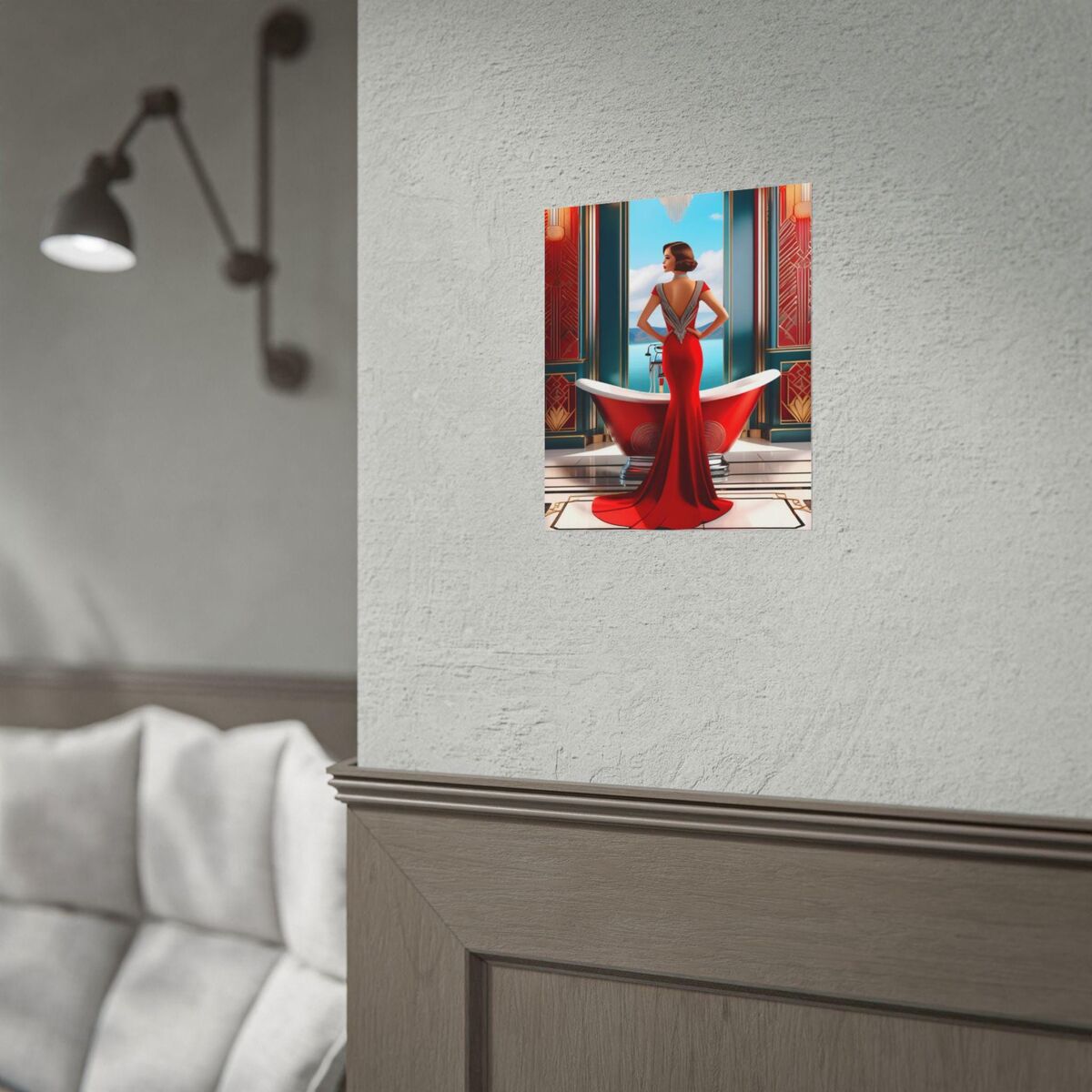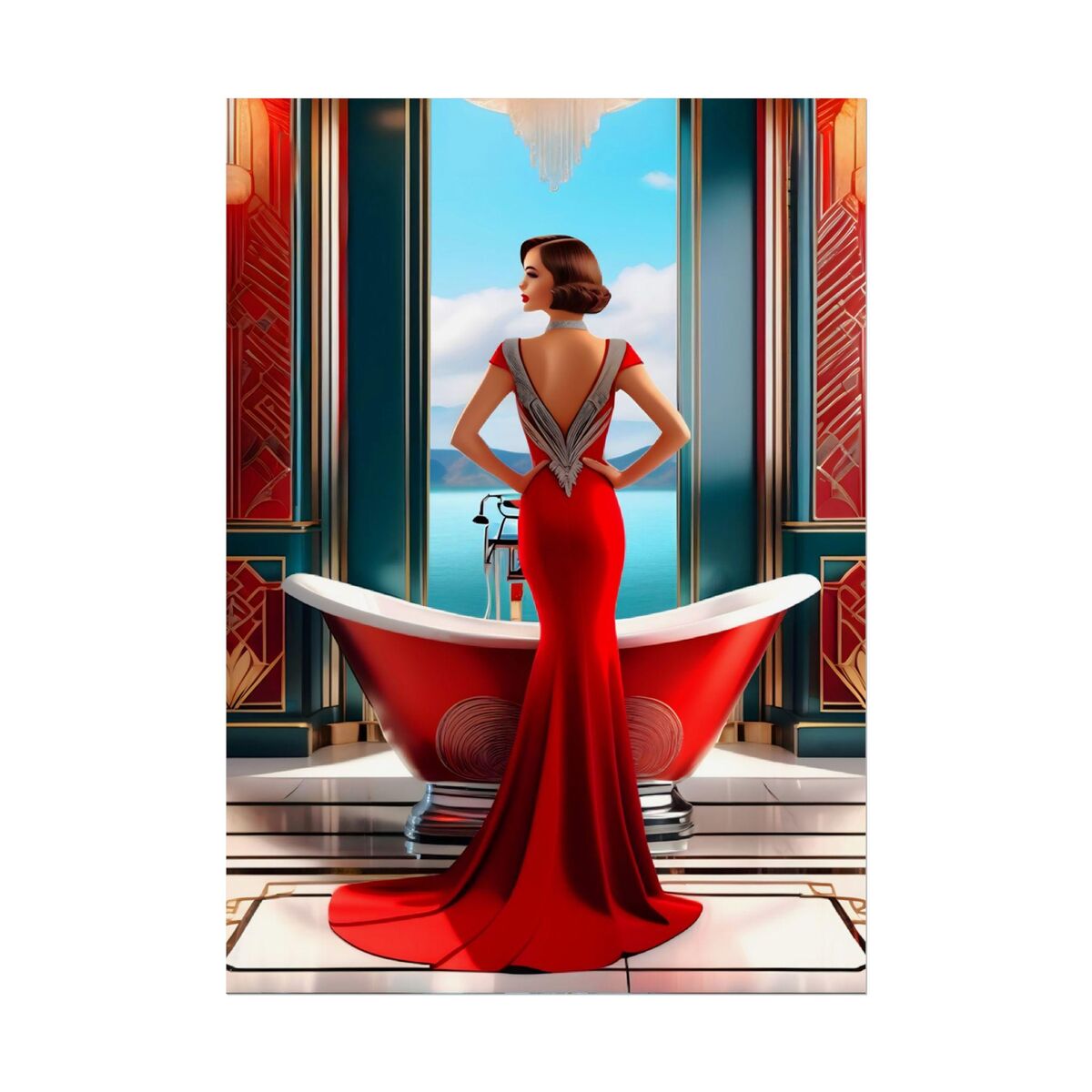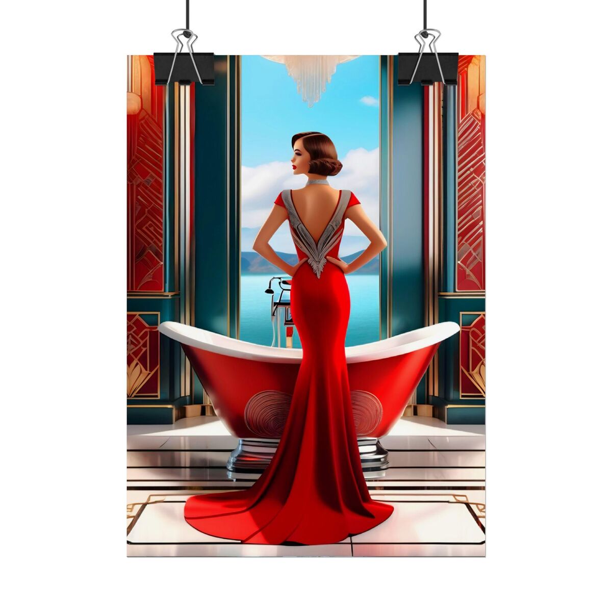 Red Art Deco Gatsby Girl 1920s Style Flapper Gatsby Girl Powder Room Bathroom Poster Print Wall Art Retro Home Decor