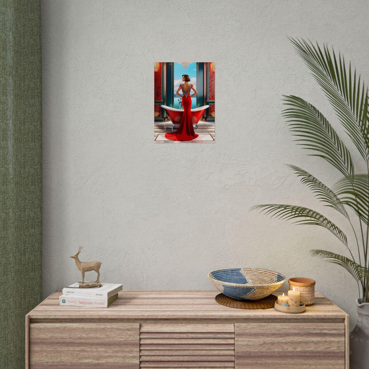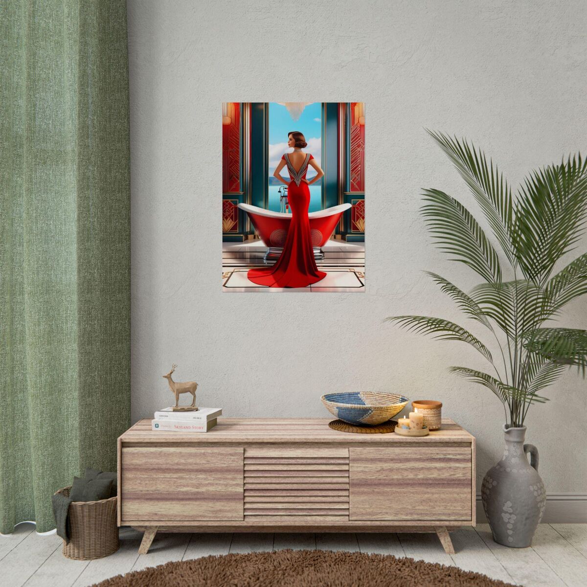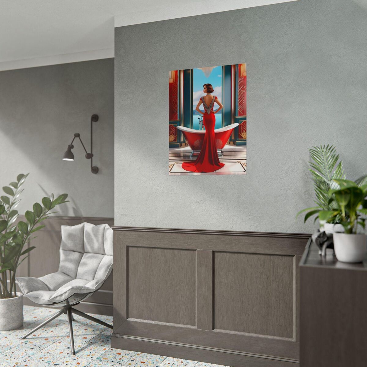 Red Art Deco Gatsby Girl 1920s Style Flapper Gatsby Girl Powder Room Bathroom Poster Print Wall Art Retro Home Decor