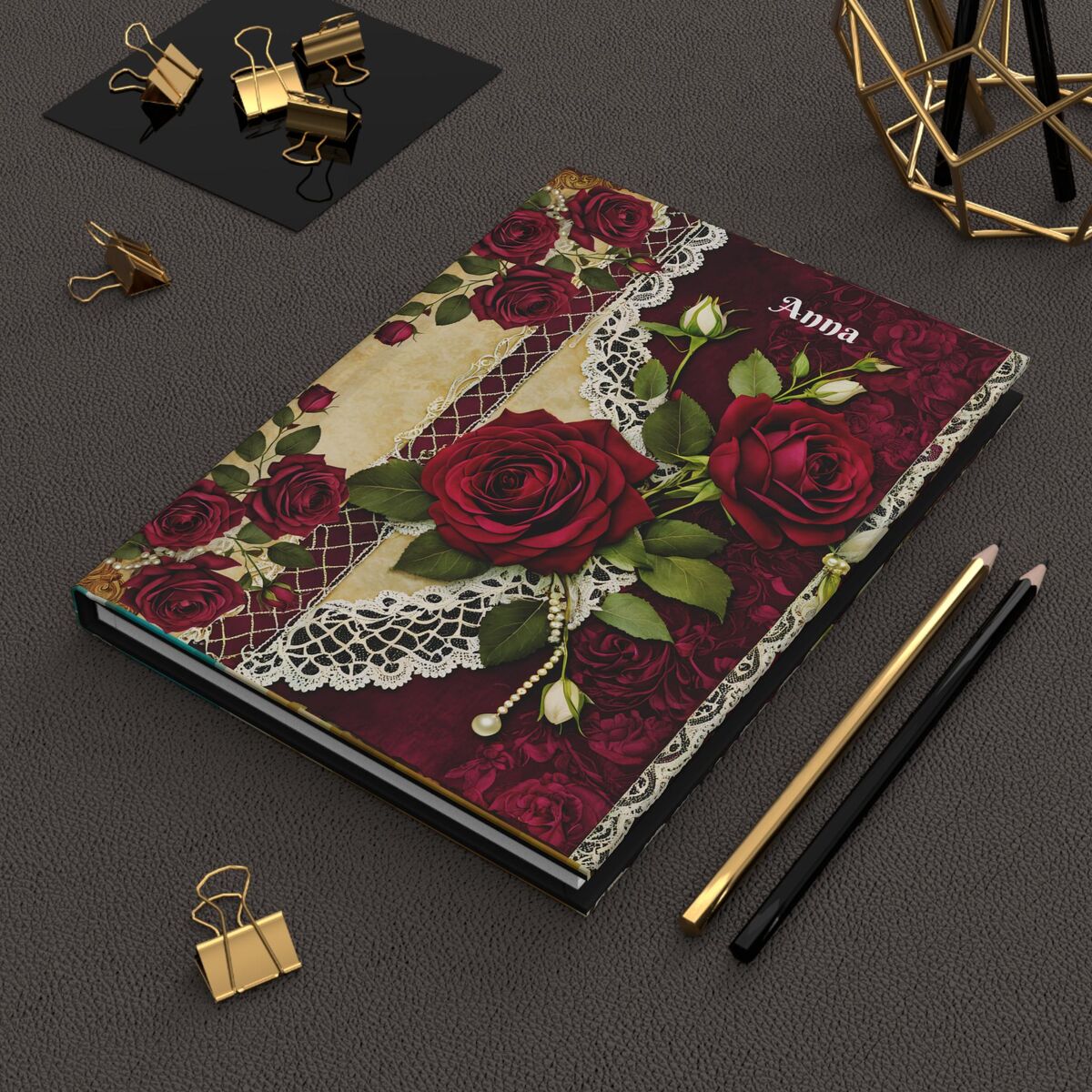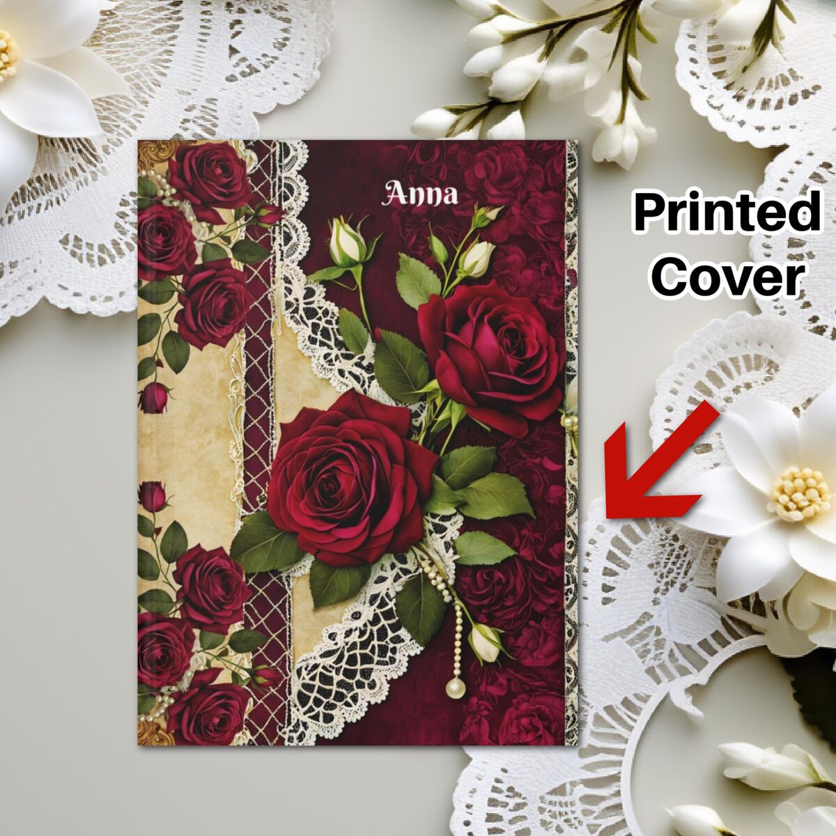 Red Rose Lace Journal Gothic Romantic Rose Hardcover Custom Witchy Personalized Notebook Dream Journal Book Manifestation Tarot